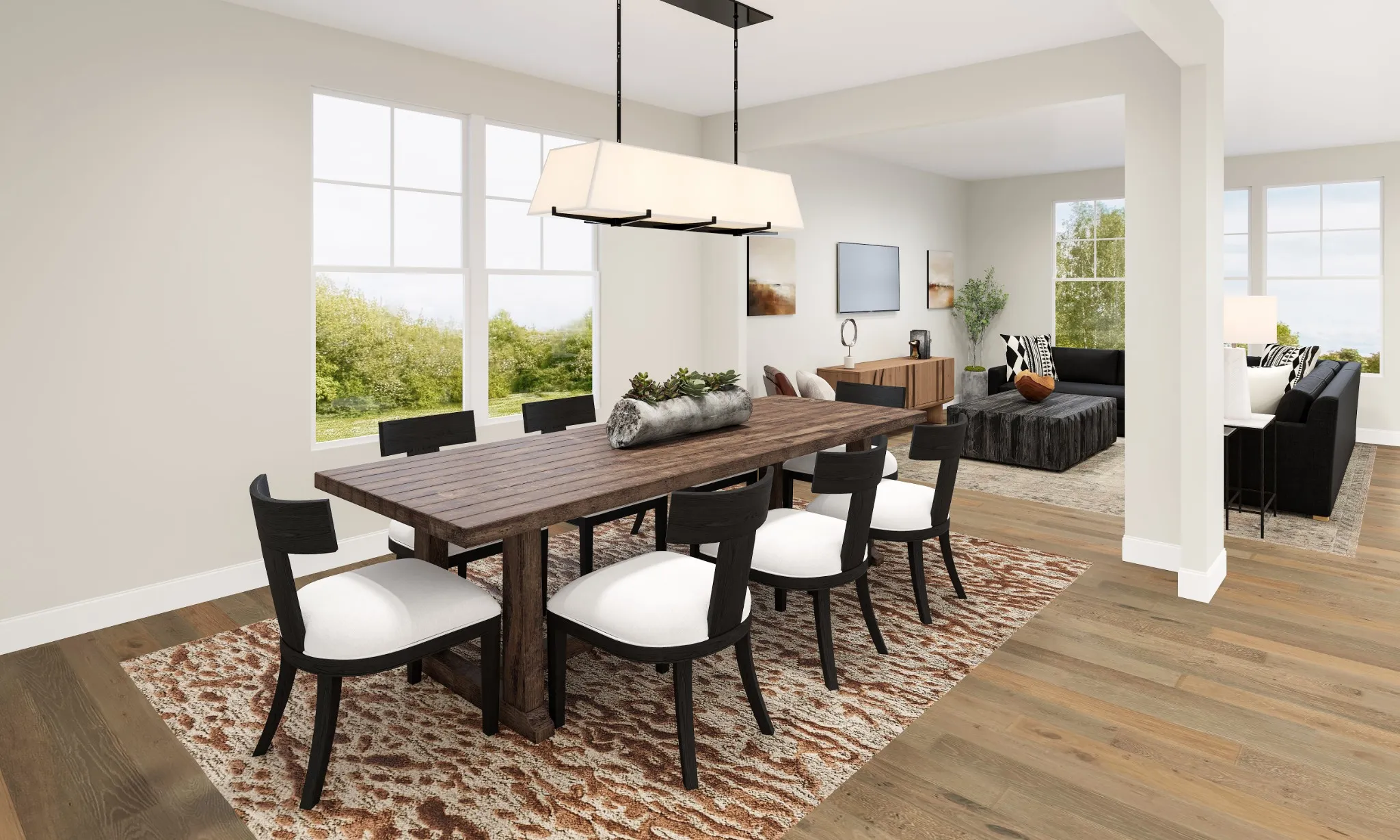 Choose your homesite. Choose your elevation. The Higgins is a stunning two-story home that greets guests with an extended foyer hallway that flows past a flex room and into the main living space. An expansive great room overlooks the formal dining room, a casual dining area, and the expertly-crafted kitchen that offers a walk-in pantry, a large center island with breakfast bar, and plenty of counter and cabinet space. The second floor is highlighted by the luxurious primary bedroom suite that boasts dual walk-in closets and a deluxe primary bath complete with dual vanities, a luxe shower, linen storage, and a private water closet. Central to a spacious loft are two secondary bedrooms that offer walk-in closets and share a hall bath with dual vanities. The community model home is open 7 days a week. Photos and/or renderings are for representational purposes and floorplans may vary in elevation and size.