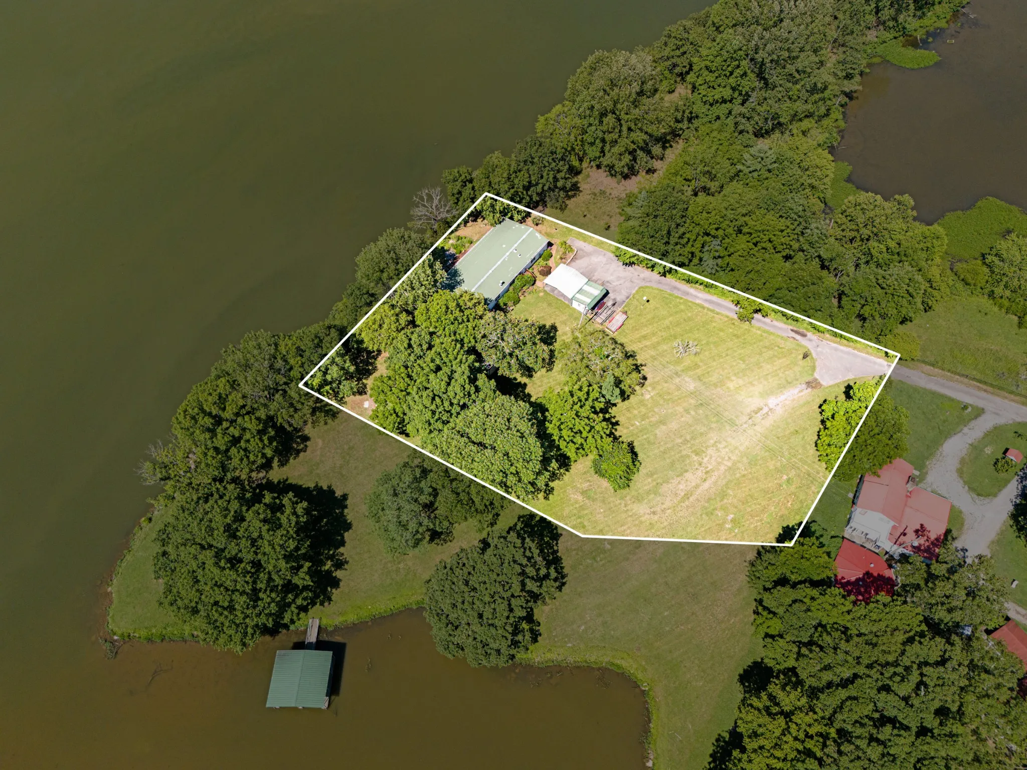 Build your Dream Home and Experience the Ultimate Lakeside living at this stunning Lakefront Property on a 1.31 acre lot, Featuring a private dock and a gradual slope leading right to the tandem 24×30 covered boat dock, it’s a water lover’s paradise! Gaze across the Cumberland River to views of Cherokee Marina & Reba’s former Estate, now The Estate @ Cherokee Dock. Discover what Gallatin offers including Lock 4 Park’s secret fishing spots, public pavilion & scenic mountain bike trails, plus Dog Parks, The Greenways, and more. Property has 176′ of Cliff/Lake frontage & access of 302′ of easy access cove. Dock Permit is transferrable & Corps land on 3 sides of the property offering added privacy and green space to enjoy. Property priced for the land only, included in sale is 2100 square foo 1998 manufactured home sitting at the cliff. WATCH AERIAL & WALKING VIDEO in MEDIA!