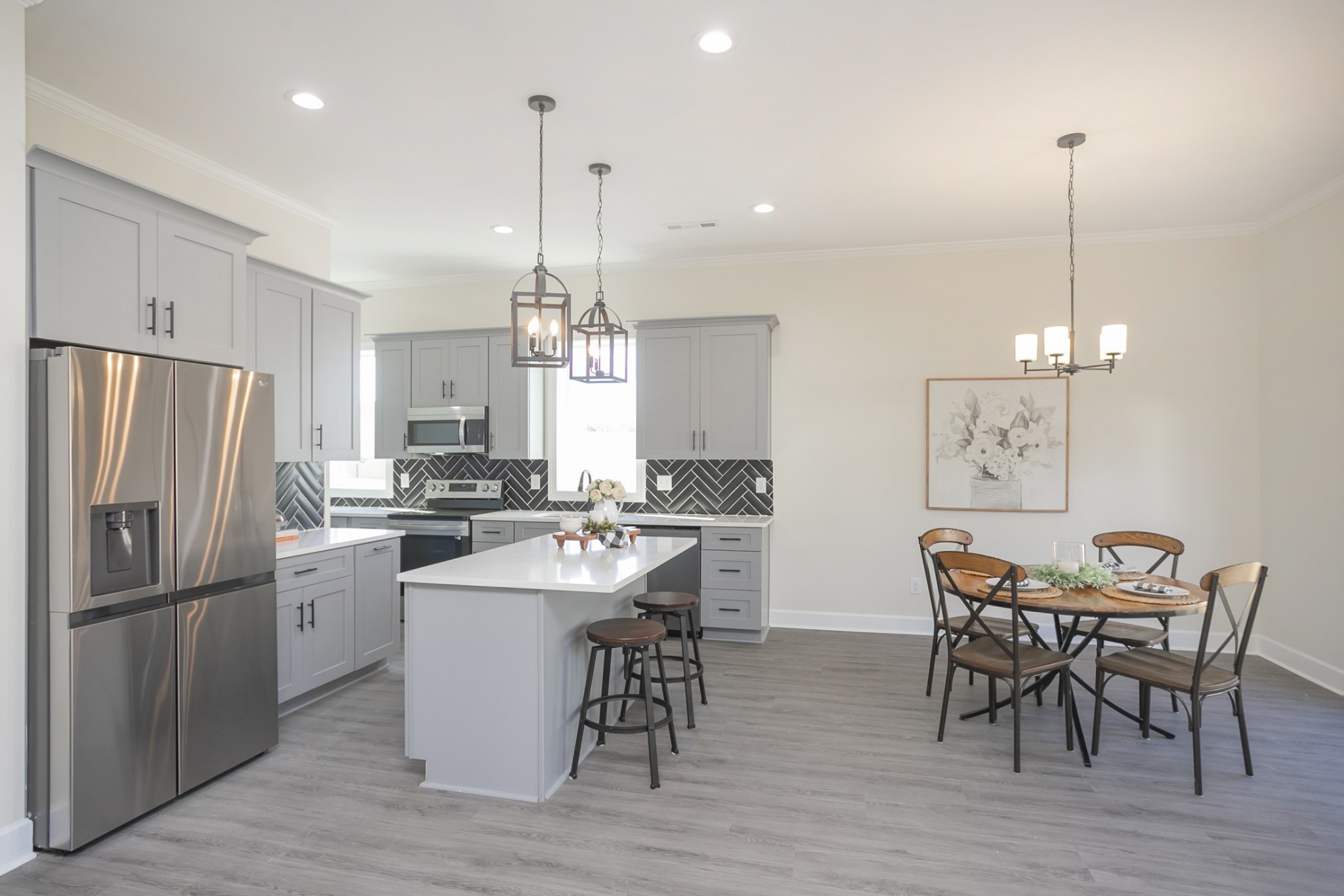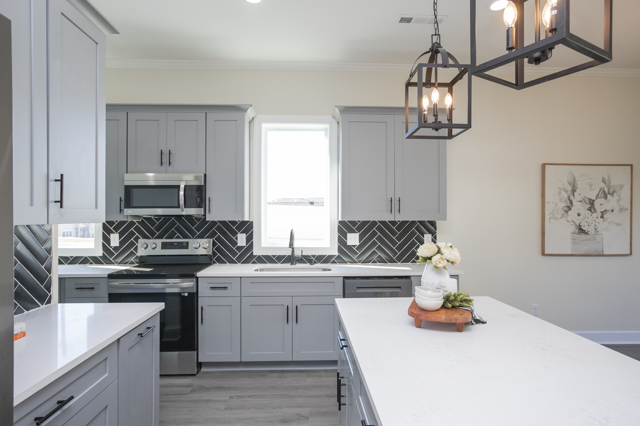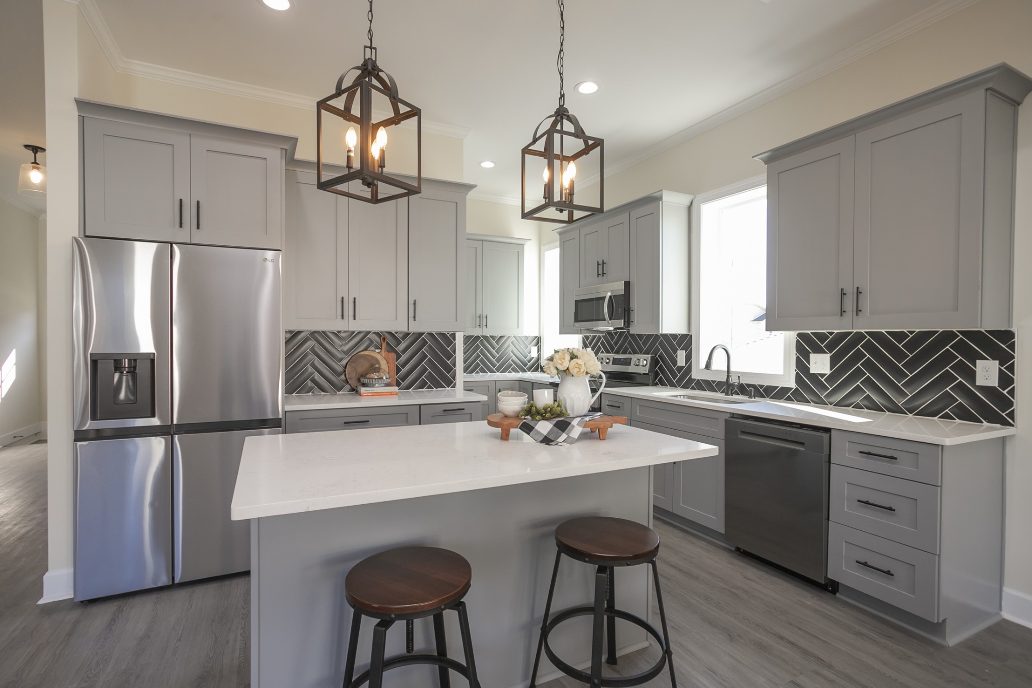 Custom new construction, quartz, LVP, tile showers & floors, modern custom finishes, SS appliances, backsplash, custom glass shower door, deck, rear fence, 10′ ceilings on 1st floors, etc. Two master bedrooms. Very convenient to I-65 & I-24. No HOA.