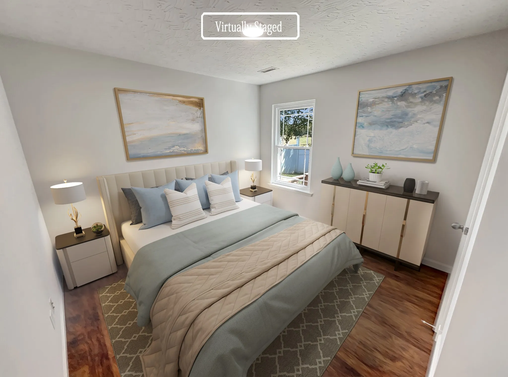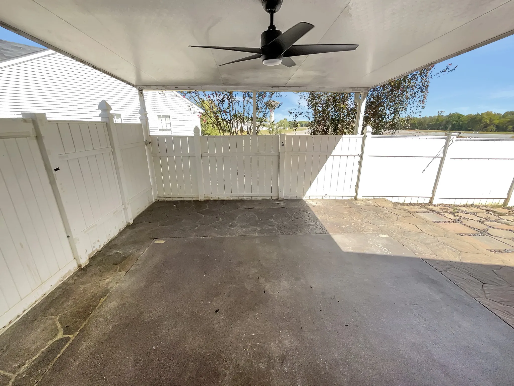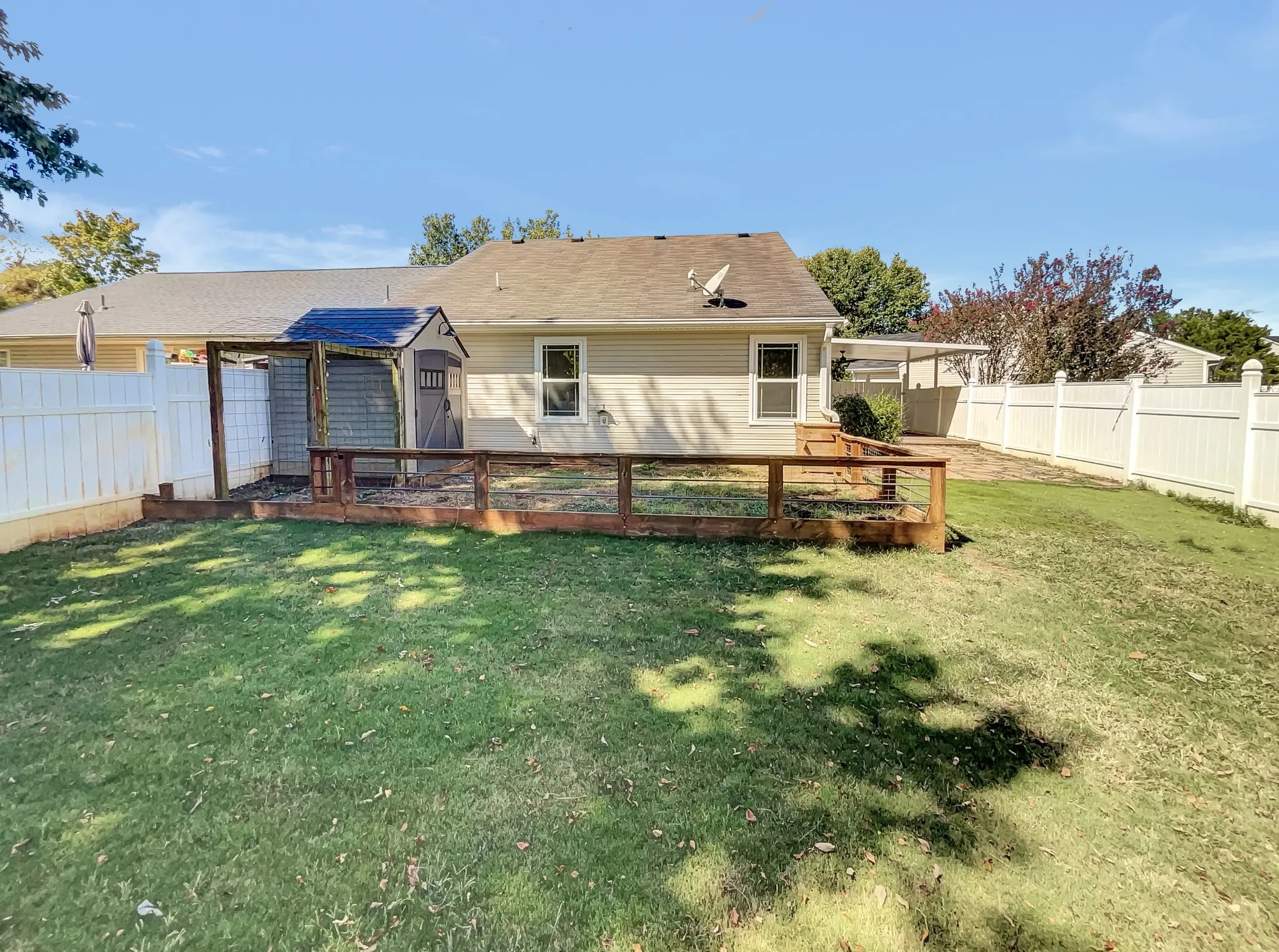 This beautiful home offers a natural color palette throughout, making it an inviting and cozy space. The master bedroom features a walk-in closet and the other rooms provide flexible living space. The primary bathroom has good under sink storage. The backyard is fenced in and features a covered sitting area, perfect for relaxing outdoors. Fresh interior paint throughout adds to the appeal of this home.This home offers a great combination of features. Don’t miss out on the opportunity to experience this wonderful property. This home has been virtually staged to illustrate its potential.