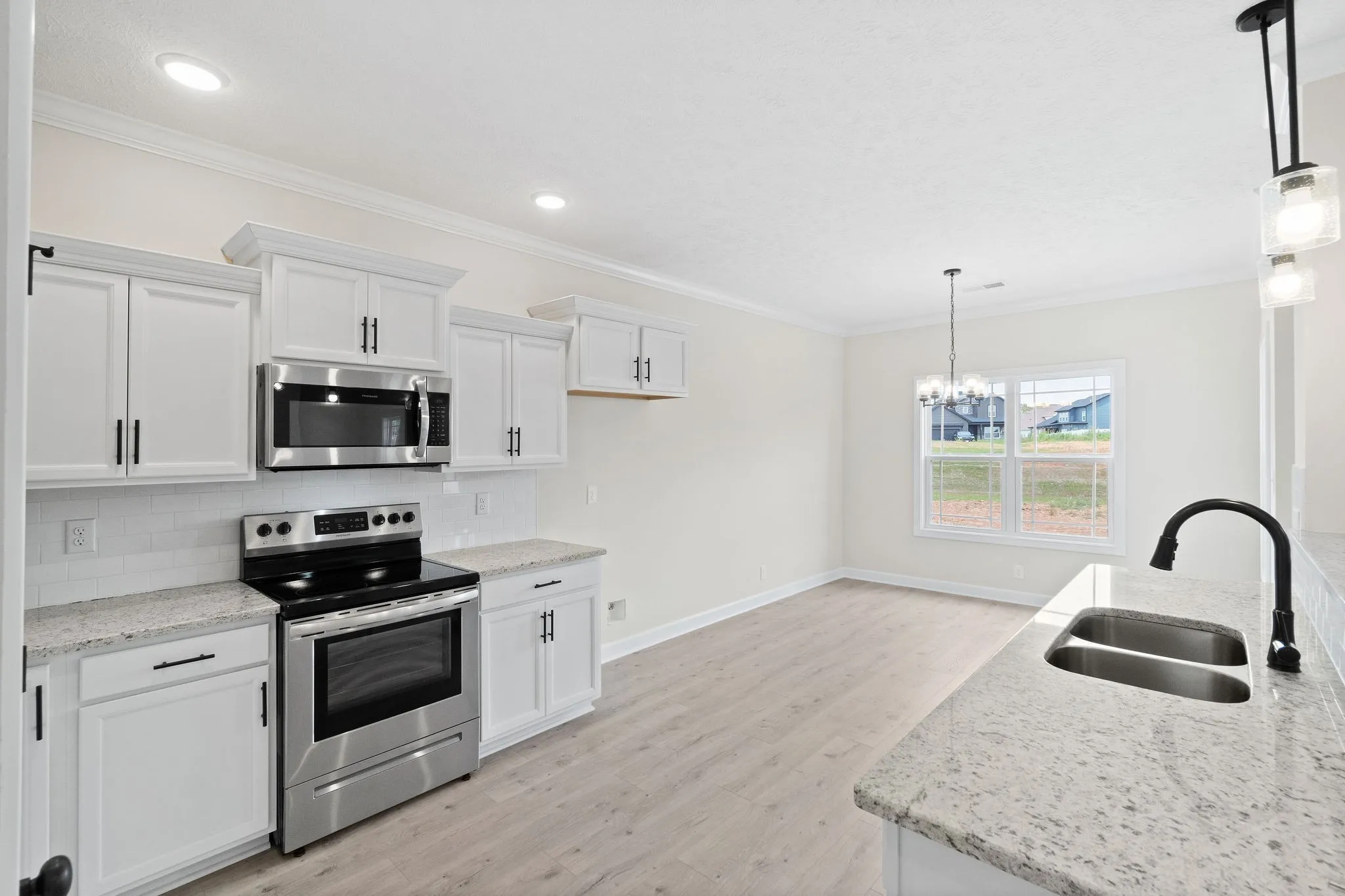 MOVE IN READY**Builder Incentive up to $10,000 toward closing costs/rate buy down!!!!**Wonderful exit 8 location in the brand new section of Farmington in Rossview! Three bedroom, two and a half bathrooms with an open concept floor plan. Primary room on the main floor Downstairs with a HUGE walk-in closet, separate soaking tub, and shower. Upstairs has two bedrooms with a large bonus room. All those trendy MRG finishes are included; plank laminate flooring, stainless appliances, subway tile backsplash, and granite counters. Front AND back porch!