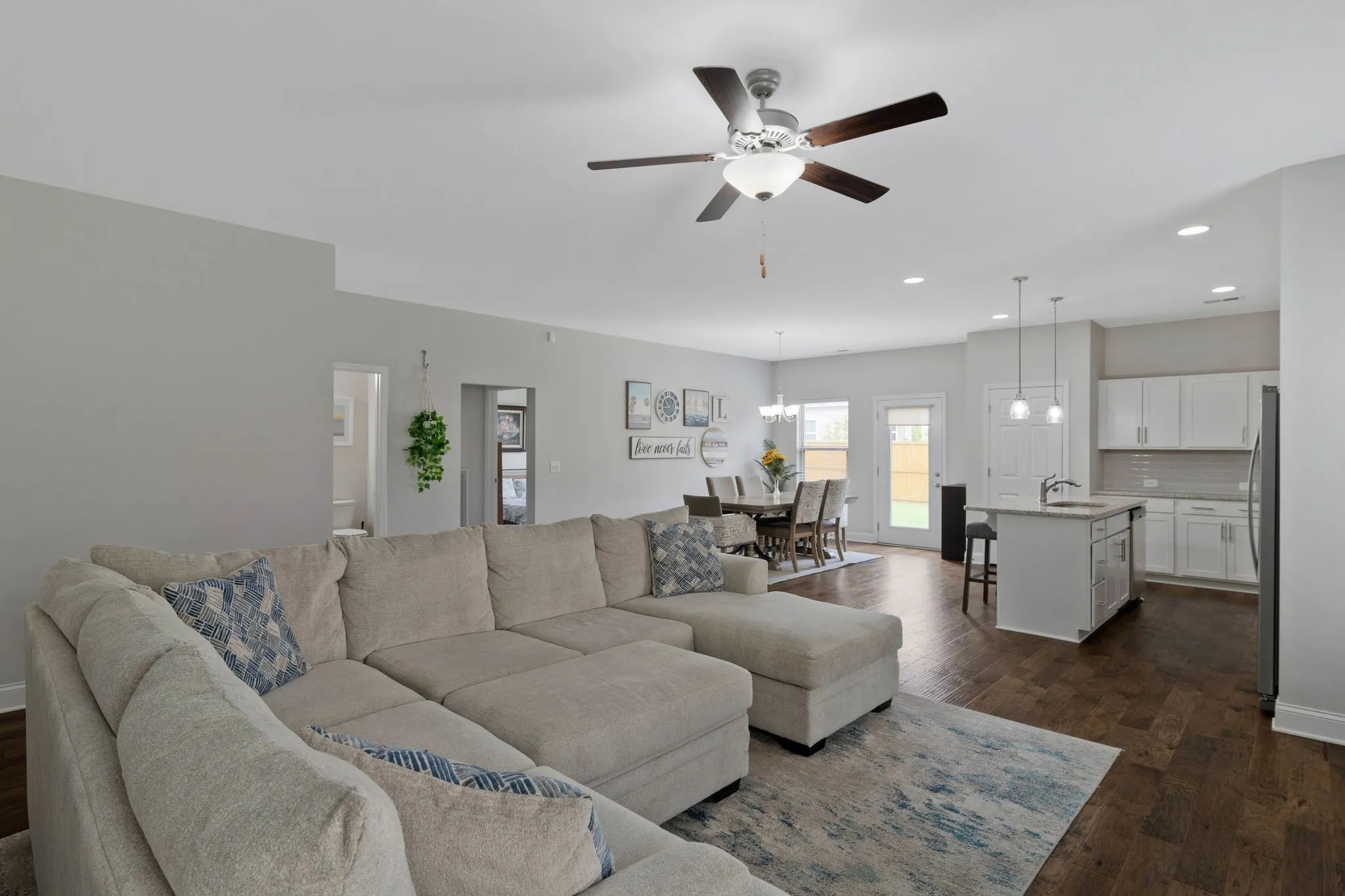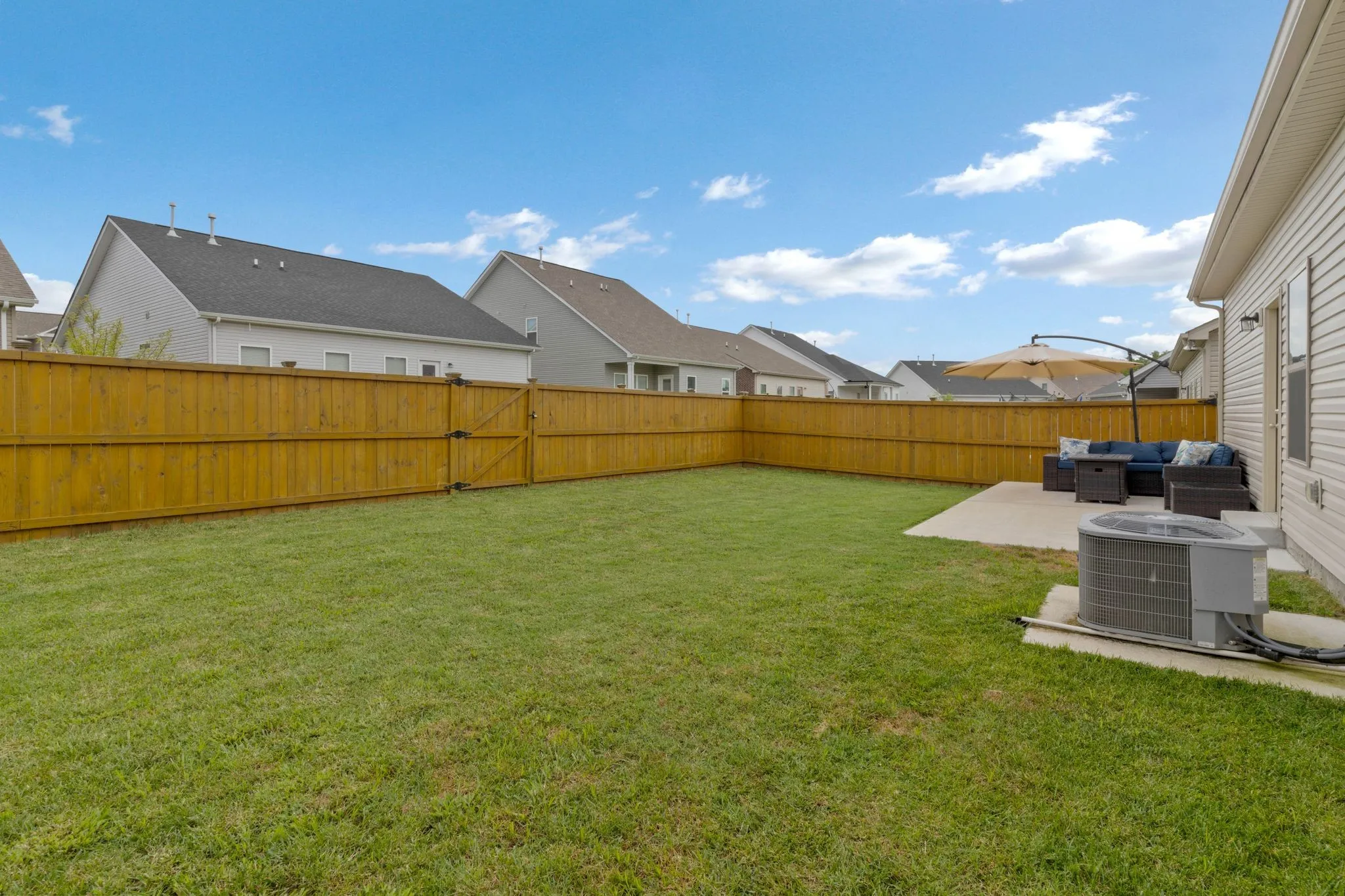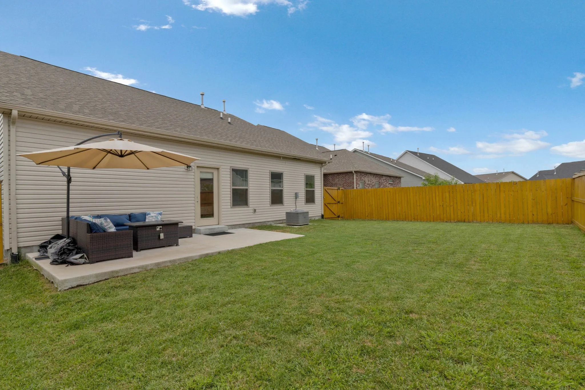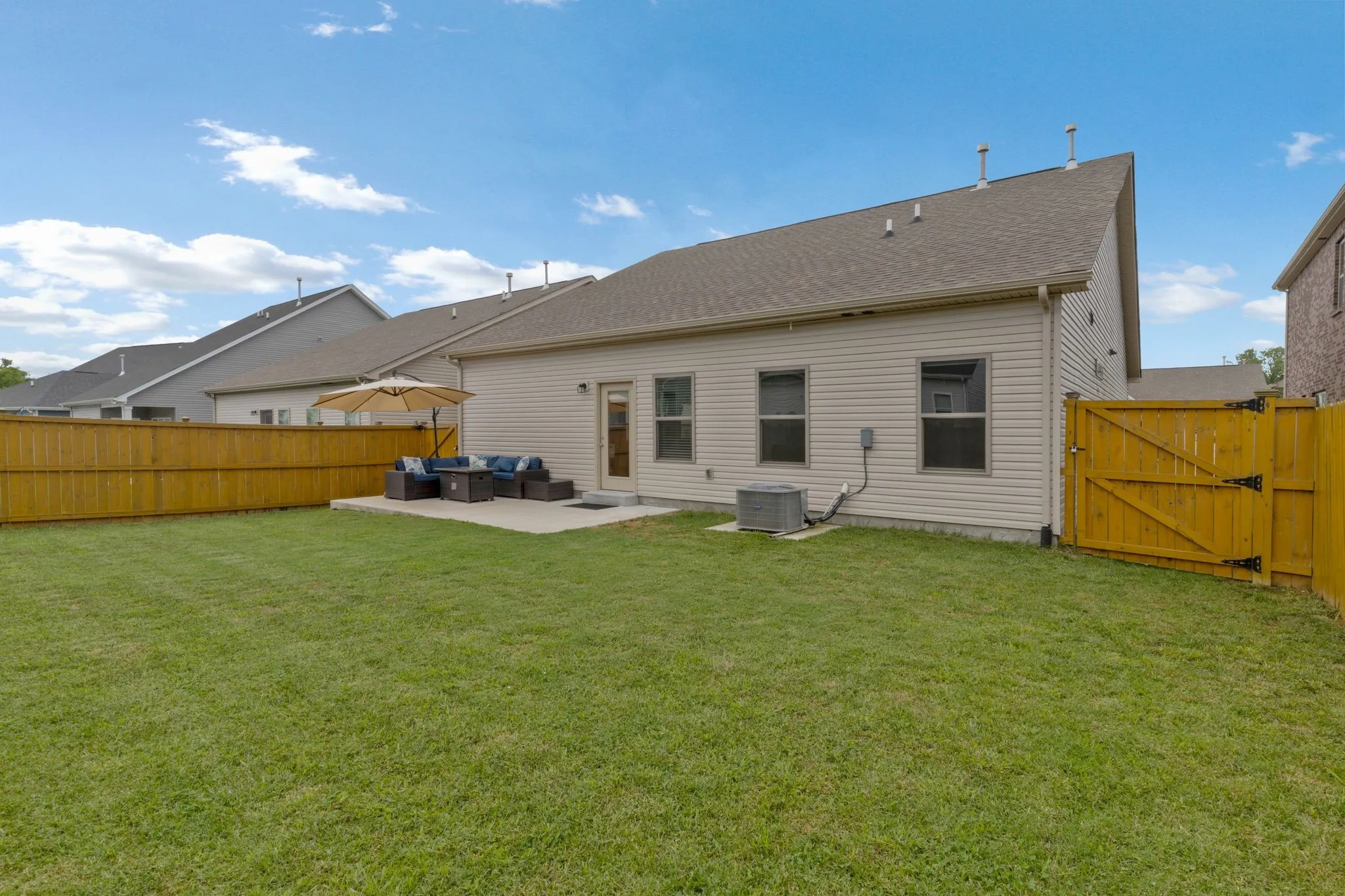 This spacious one-level home features 3 bedrooms, 2.5 baths, and 1,753 square feet of living space. Enjoy the open layout with a large Great Room and a generously-sized Kitchen boasting ample counter space. The split bedroom design ensures privacy for everyone. The primary suite includes a HUGE walk-in closet, perfect for all your shoes. Did I mention the oversized laundry room? Step outside to the patio and fenced yard, ideal for outdoor relaxation and entertaining. Don’t miss the opportunity to make this your new home!