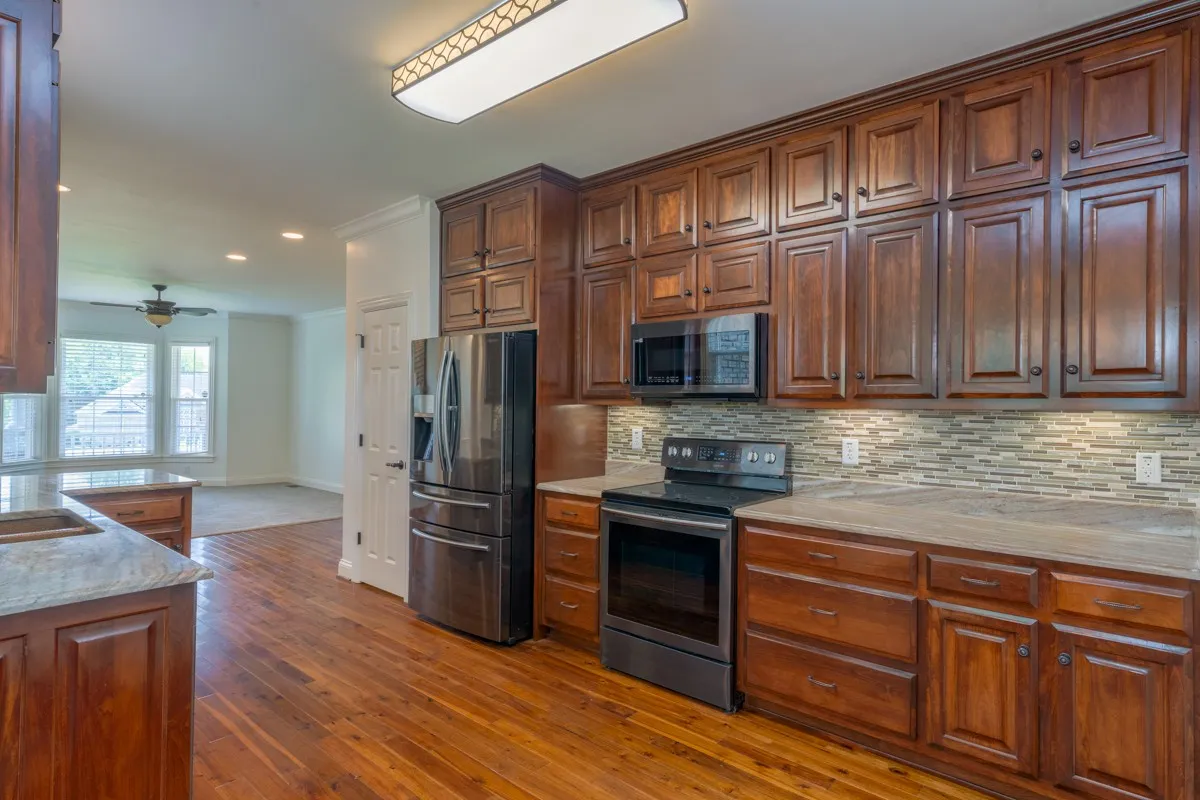 From the Moment you turn into the Driveway… Welcome to your New Luxurious Home in Grandview Estates! Beautiful Craftsman Brick Home with Architectural Wrap Around Front and Side Porch with Maple Wood Ceilings and HUGE Fenced in Back Yard! Upon entering the Foyer, you will find a Custom Wood Stairway across from Open Concept Great Room with Natural Gas Brick Fireplace. Step onto the Walnut Stained Wood Floors into the Chef’s Kitchen with Copper Farm Sink, Granite Counters, Pantry, and Custom Wood Cabinets, Dinette with Island Cabinet and Unique Accent Lighting & Ceiling Fan. The Master Bedroom Suite comes with Bay Windows, Large Walk in Closet, and Luxurious Master Bath with Victorian Soaking Tub. HI Speed Internet with Two Security Systems. IDEAL to work from Home! Did I mention that there is NO HOA!! See Features Page with Additional Features. Shown by Appointment ONLY.