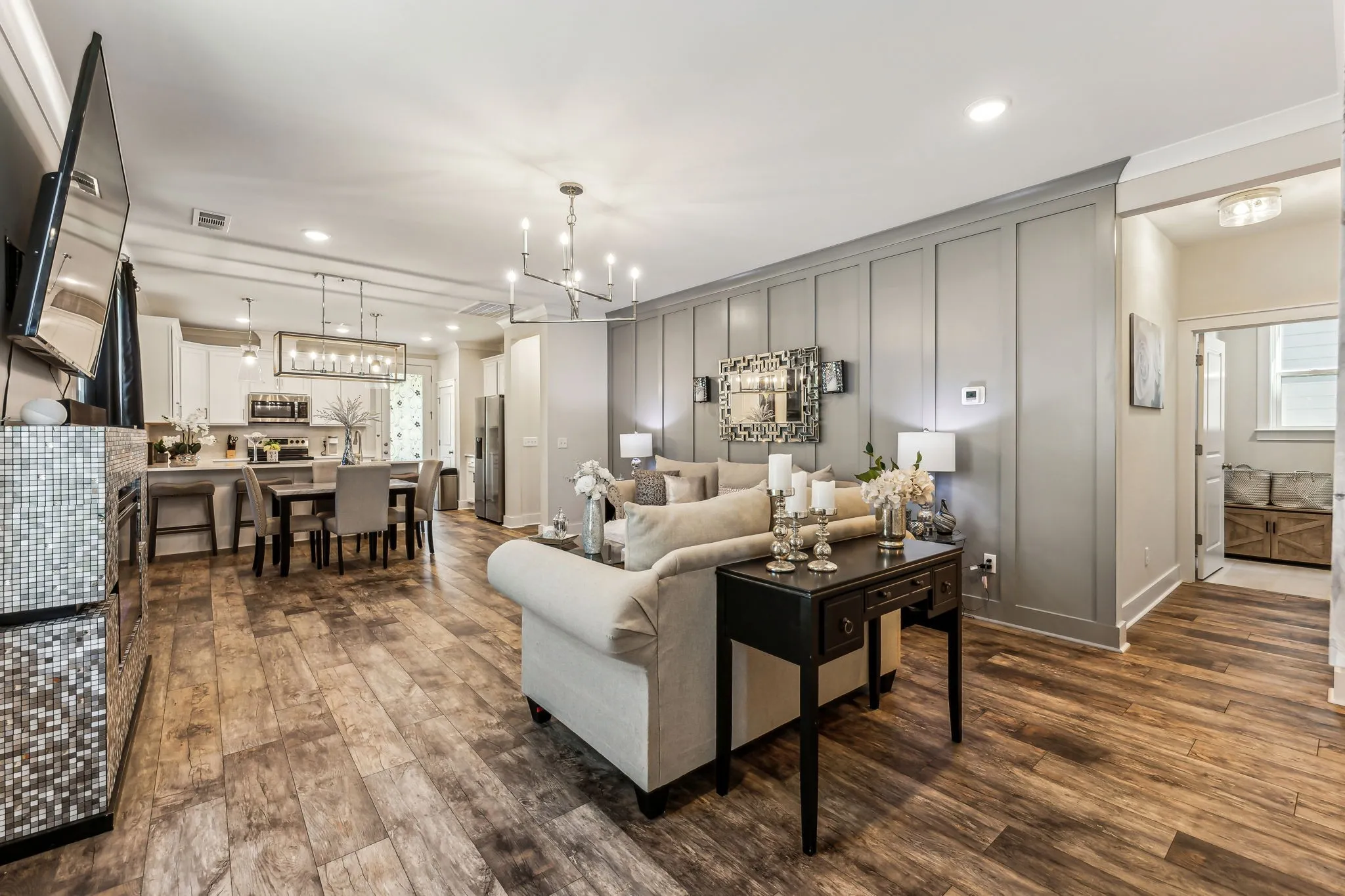 Introducing this stunning home in Kingsbury featuring 3 bedrooms and 2.5 bathrooms, designed for both comfort and style. The kitchen boasts a charming farmhouse sink and quartz countertops throughout, complemented by upgraded stainless steel appliances. Enjoy the elegance of a baton board accent wall and an upgraded light package, which includes canned lighting throughout the entire house. The Beachwood laminate flooring provides a warm and inviting atmosphere, while the luxury bath features a floor-to-ceiling subway tile shower. The double open railing in the loft adds a touch of sophistication, and the crown molding on the lower level enhances the home’s classic appeal. Convenience is key with a shoe bench by the garage entry! Step outside to find a covered patio perfect for outdoor relaxation. You will love Kingsbury’s amenities, including a dog park, playground, and pool, make this home perfect for families. Schedule a showing TODAY! DO NOT CONTACT SELLER. WE HAVE A SIGNED LISTING AGREEMENT. RELISTING ON 1/23/25.