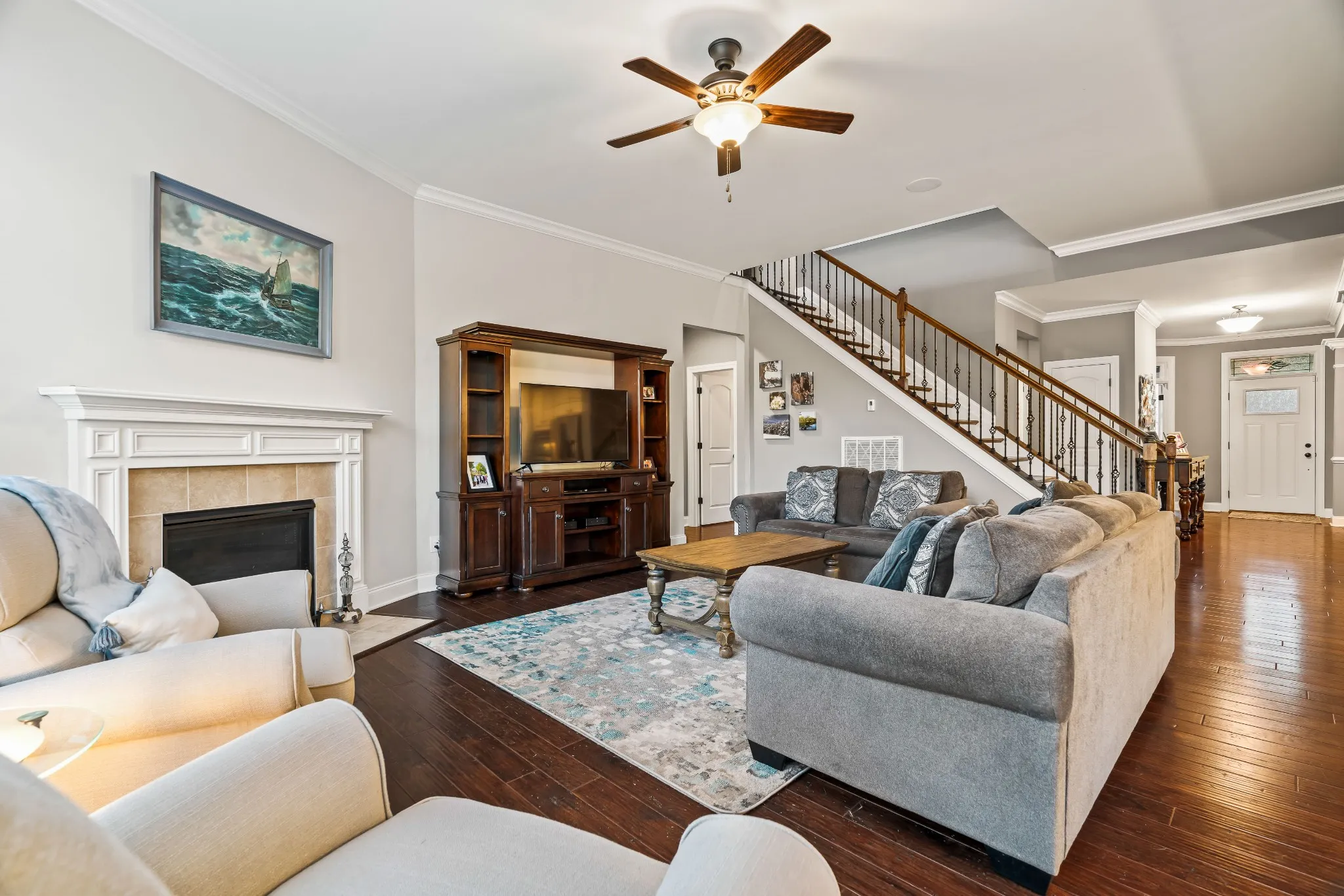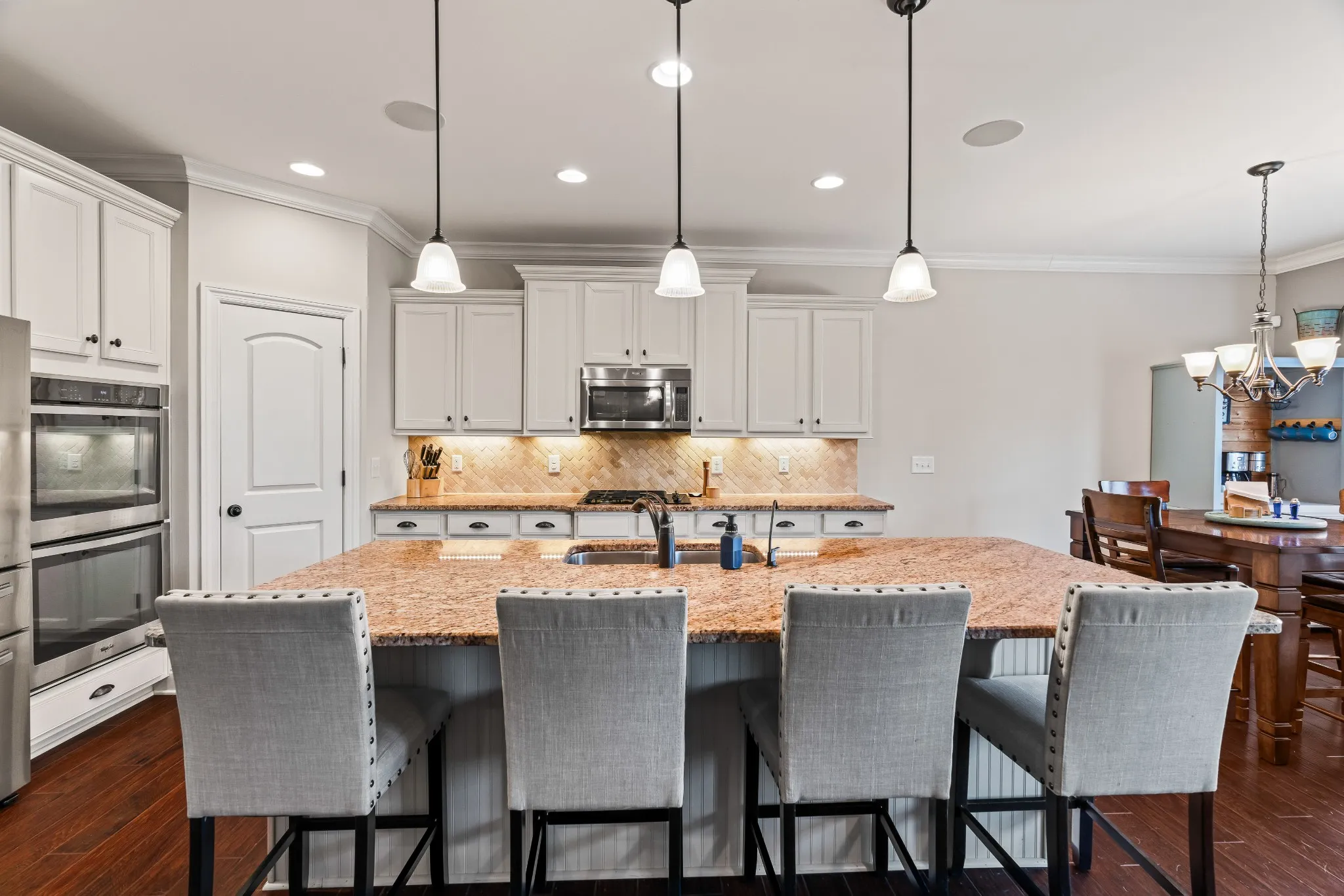 $40,000 Below appraisal. This amazing home located on a quiet cul-de-sac features a luxurious primary suite located on the first floor that includes an elegant, custom walk-through closet, custom tiled shower and separate tub. The dream kitchen is perfect for culinary enthusiasts with a gas cooktop, double electric ovens, and large island and pantry. The home boasts high end finishes throughout, including high ceilings, 5-inch hardwood floors, tile, granite countertops, and crown molding. Enjoy an integrated sound system with flush mounted surround speakers on both levels along with outdoor speakers and an audio receiver that conveys with the home. Two entertainment spaces upstairs offer plenty of room for leisure and gatherings. A dedicated office and three car garage along with modern upgrades such as a whole house Rain Soft water filtration system, advanced alarm system, whole house dehumidifying system & ample storage space. Sellers are offering a 1 year home warranty.
