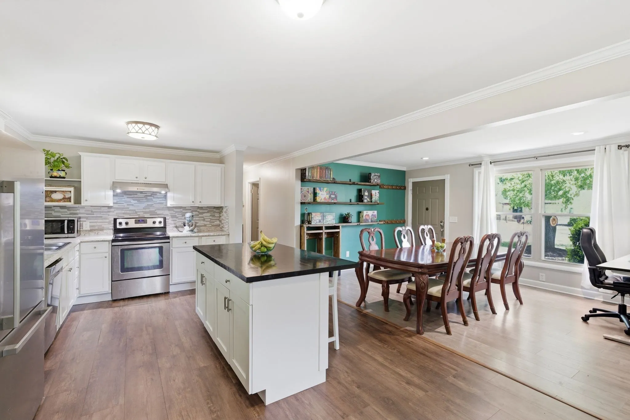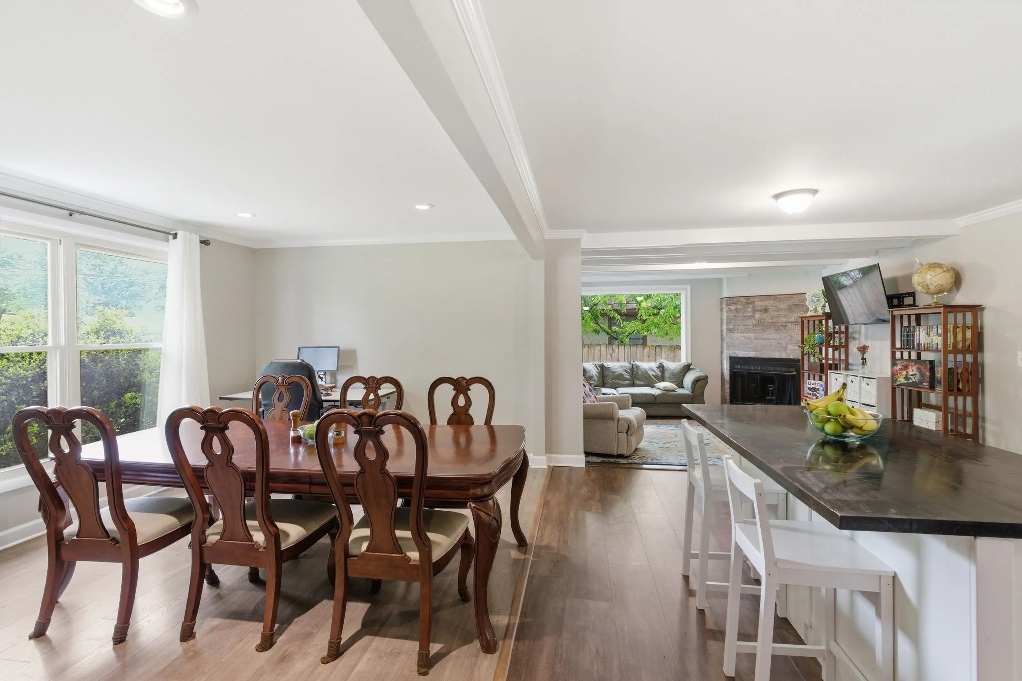 Freshly remodeled and move-in ready, this home offers a versatile layout designed for both comfort and entertaining. Enjoy a spacious den with a cozy fireplace, a separate formal living area, and an open floor plan that creates an easy, natural flow throughout. Fresh paint, durable laminate flooring, updated vanities, and tiled baths add modern appeal.