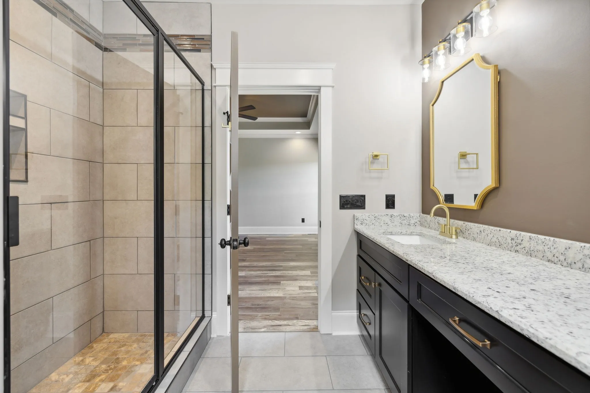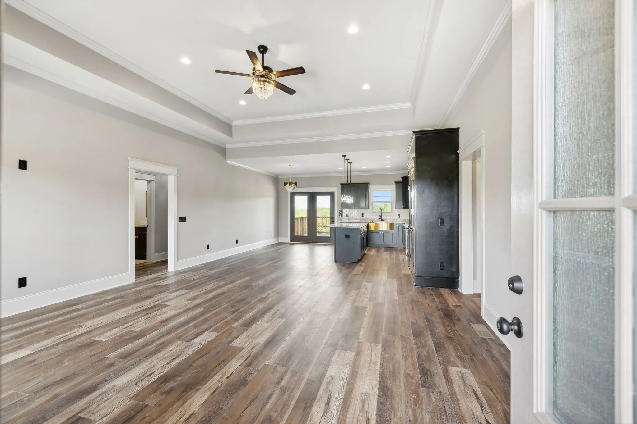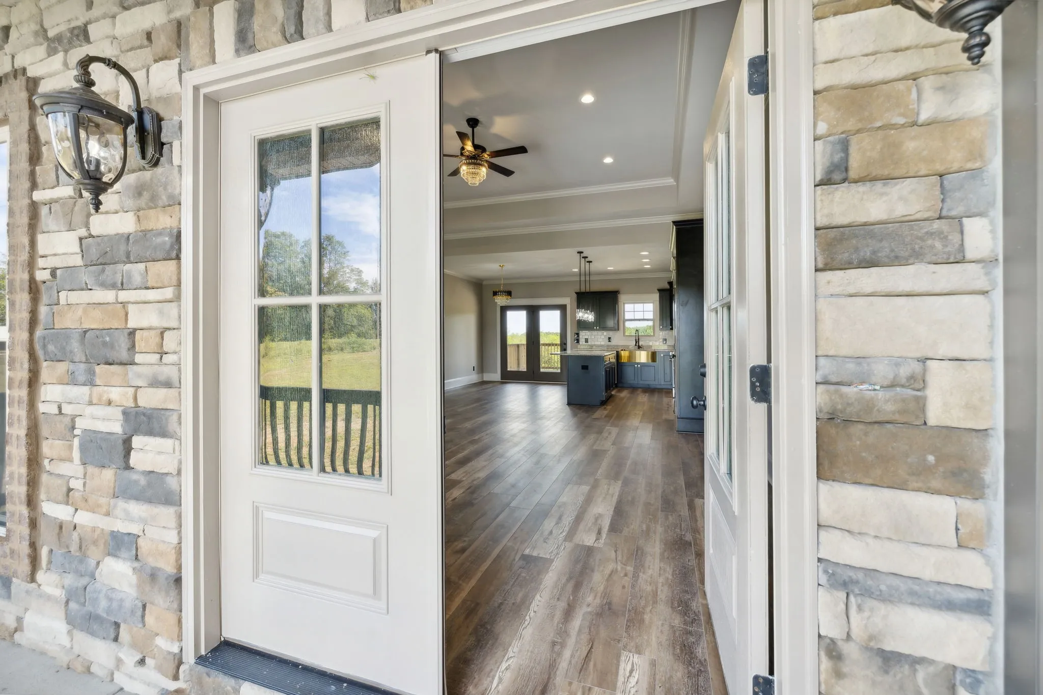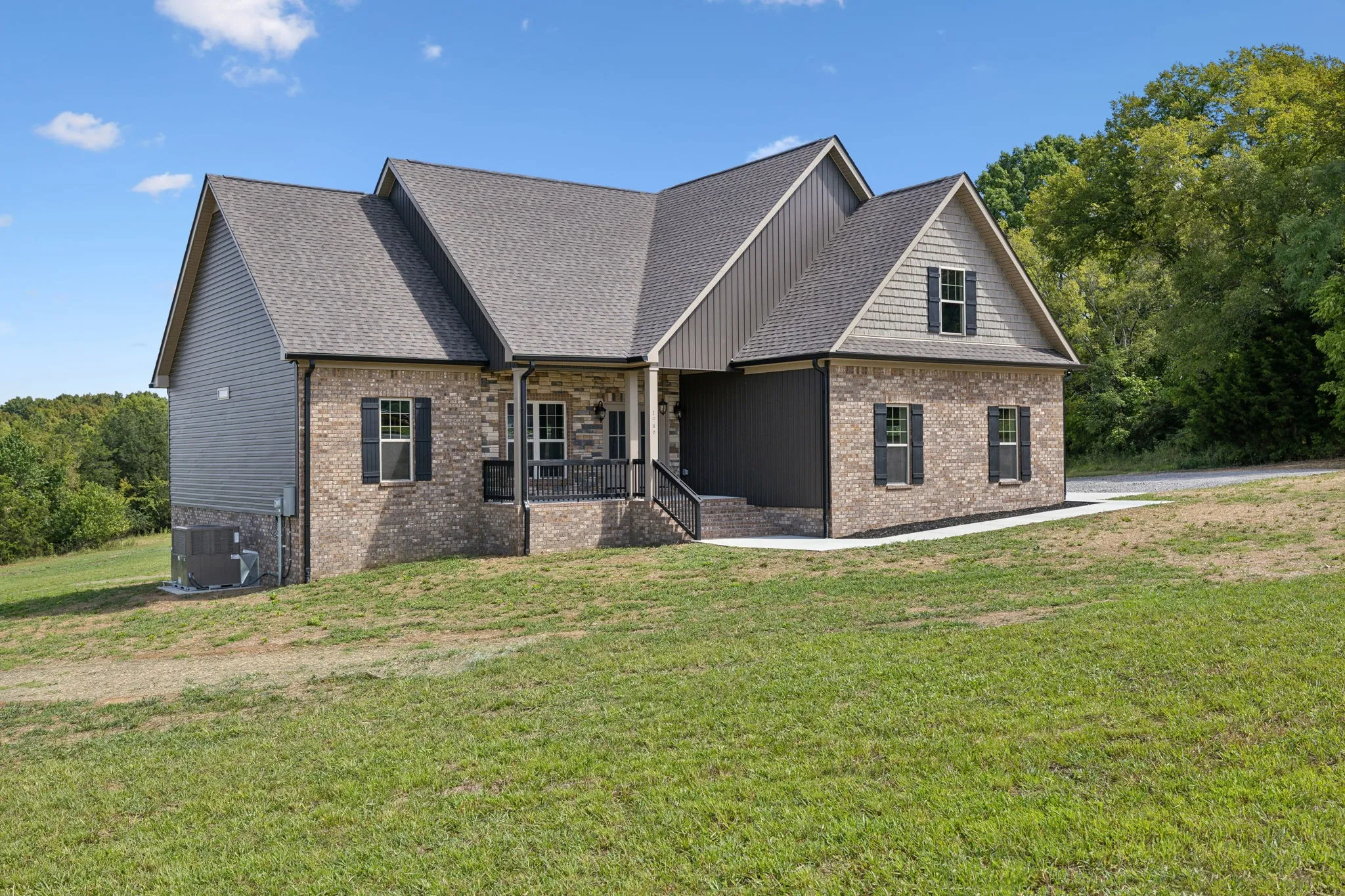 This exceptional custom home is a must-see! if not sooner. The house boasts new Rigid Core LVP flooring throughout, except for the bathrooms which feature tile flooring and shower. The interior showcases designer colors that enhance the warmth and charm of this custom home. Additionally, there is a spacious laundry room, a large hallway with built-in shelving, and a convenient hall closet near the garage entrance. The kitchen is a beautiful space with a view from the back door and a generously sized covered back porch. The unique designer colors inside and out set this home apart from others in new construction. Luxurious granite countertops and vanities add to the overall opulence. This home feature upgraded lighting, floors, and an oversize 2 car garage with ample storage A beautiful upstairs bonus room with a half bath and separate unit for heating and cooling, can be used for unlimited family functions There will be a concrete drive.