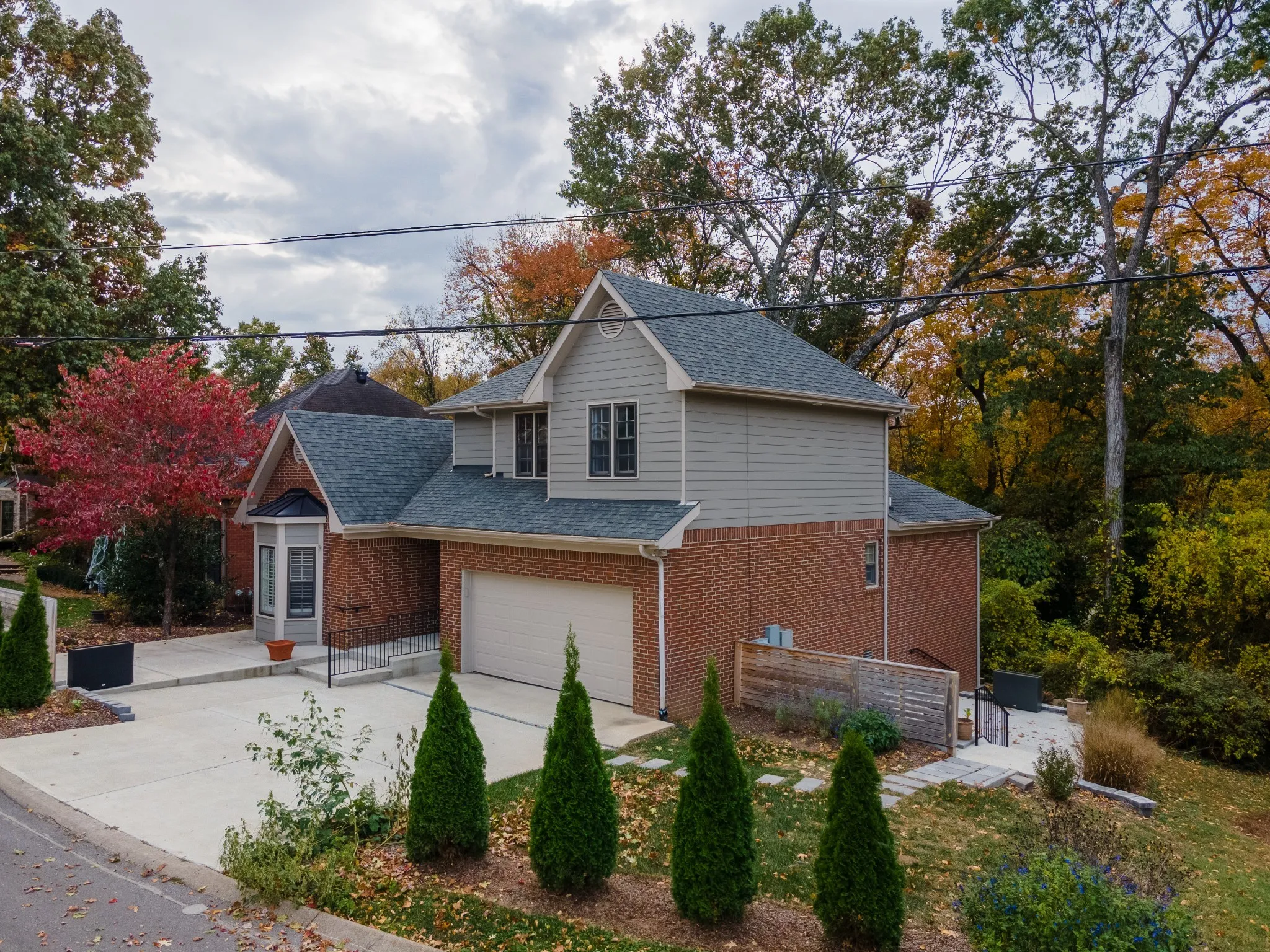 **BEAUTIFULLY RENOVATED HOME WITH MULTIPLE OUTDOOR LIVING SPACES ON A QUIET STREET IN GREEN HILLS** Gorgeous white oak flooring throughout entire house downstairs and upstairs. Fresh, modern paint throughout. Curated, designer-inspired lighting. Newly renovated bathrooms with white marbled tiles and matte black finishes and fixtures. Bright kitchen with bay window, perfect for a breakfast nook. Separate dining room leads to large living room with high ceilings, gas fireplace, and tons of natural light. Main bedroom on first floor and two additional bedrooms on second. Washer and dryer INCLUDED! Mowing and landscape trimming INCLUDED! Routine pest service INCLUDED! Enjoy maintenance-free living! Patios for entertaining in the front behind and on the side. Back deck that overlooks a tree line for privacy. Perfectly located between Green Hills and 100 Oaks. **DON’T MISS YOUR CHANCE TO MAKE THIS HOUSE YOUR HOME**