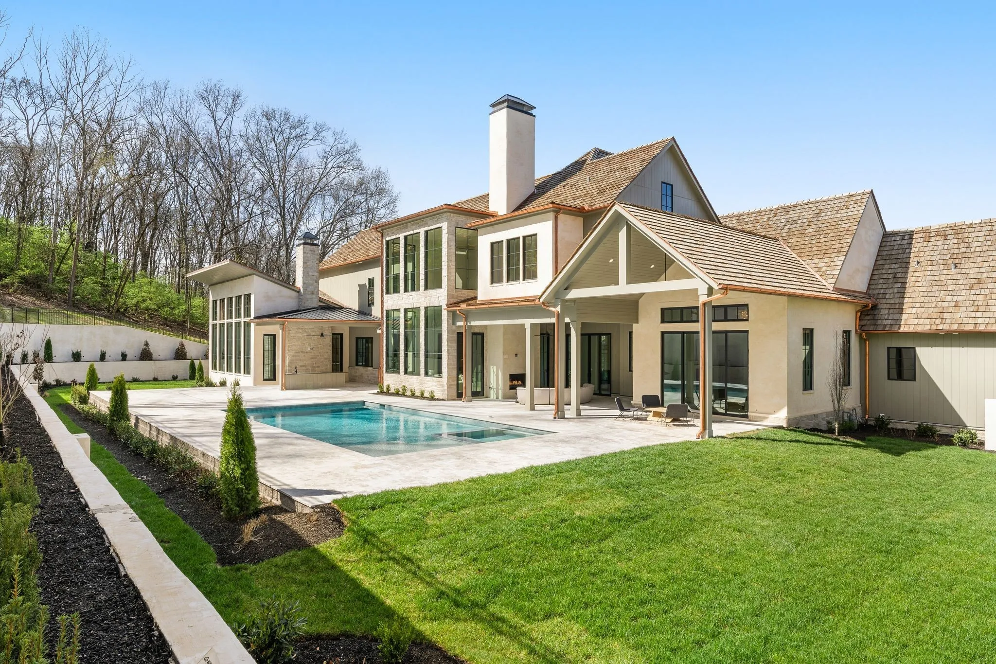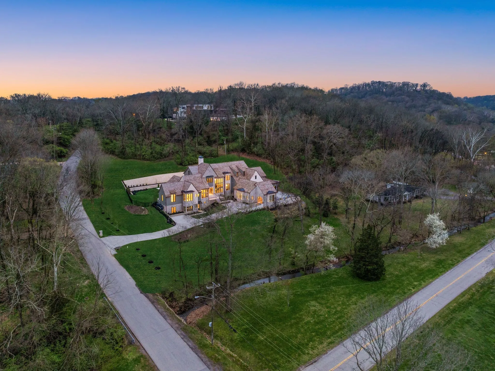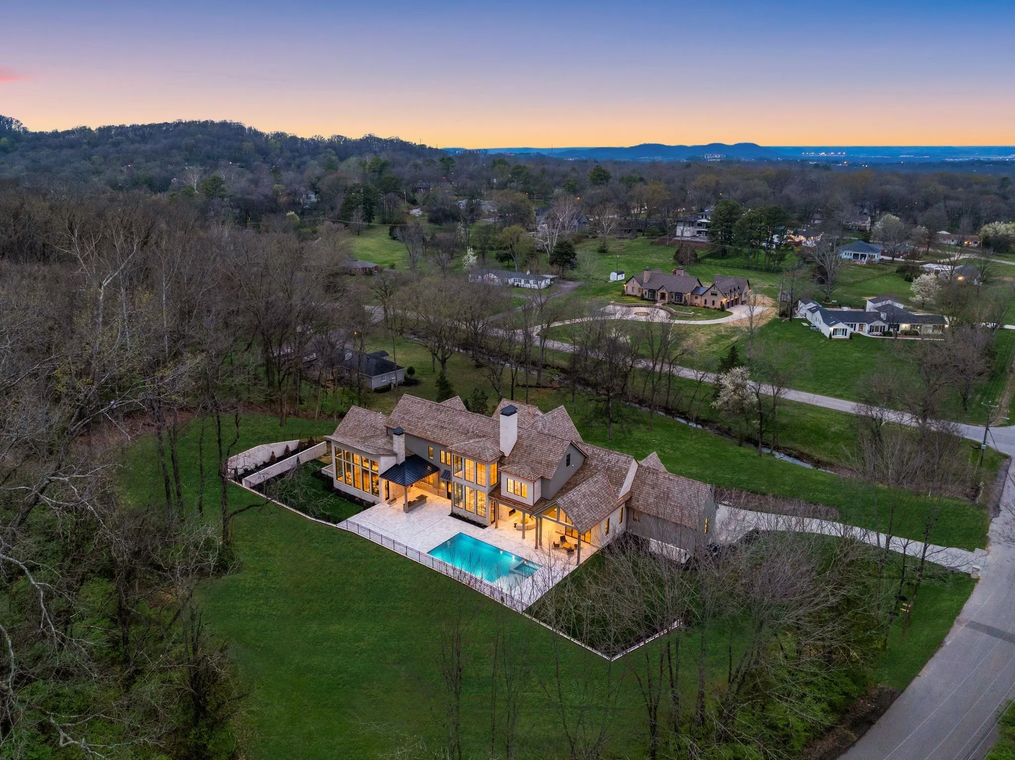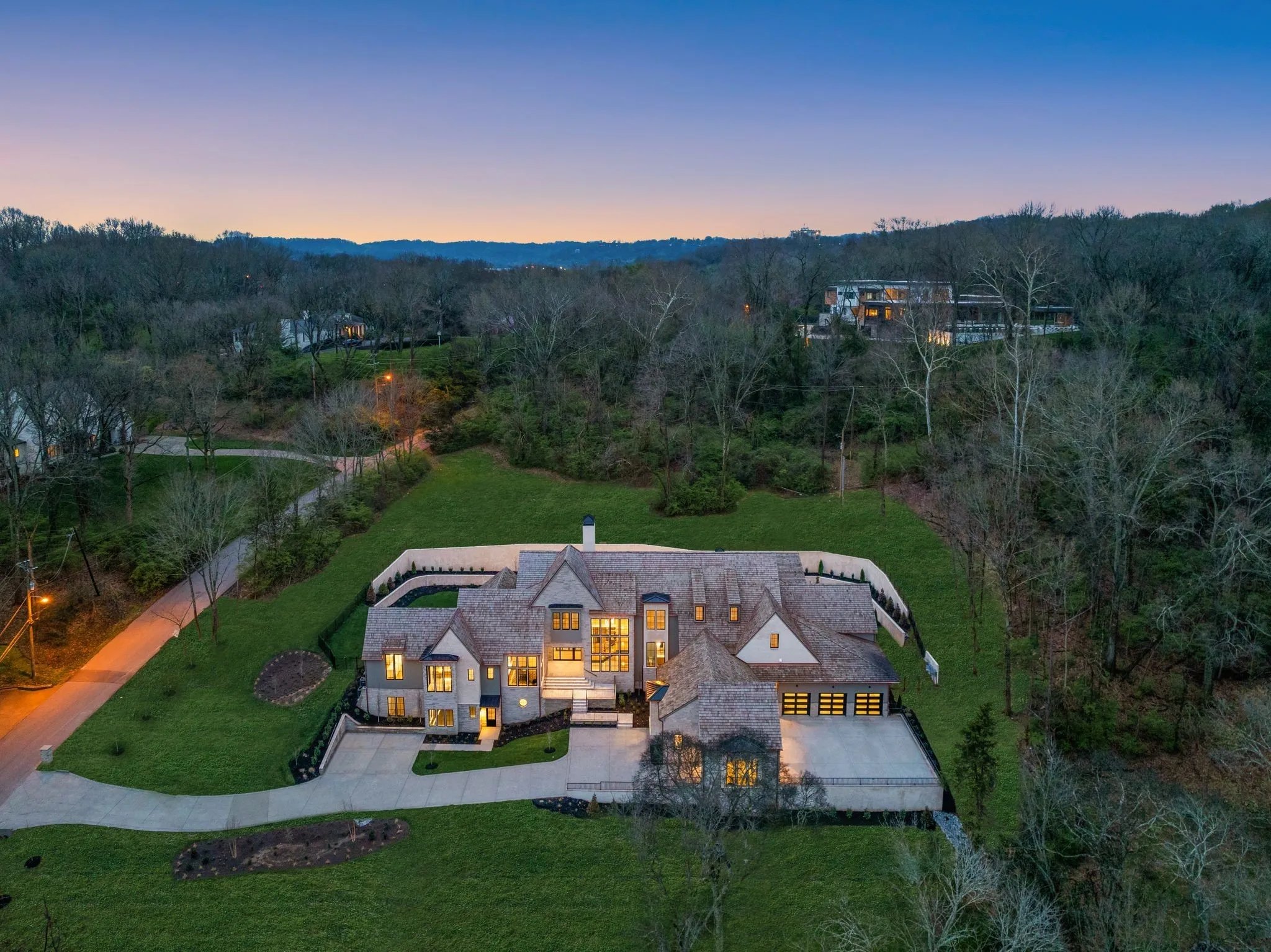 This exquisite custom luxury home by Landon Development, is a true masterpiece of elevated design and impeccable craftsmanship. Nestled in a serene setting on almost 3 acres of land, this home boasts 6 bedrooms, 6 full bathrooms, 4 half baths, & over 12,000 SF of living space. As you approach the grand entrance, you’re greeted by the stately facade adorned with timeless architectural details including cedar shingles & copper gutters. The main level features a seamless flow of living spaces, highlighted by the exquisite engineer white oak floors. The gourmet kitchen, a culinary masterpiece equipped with top-of-the-line appliances, sleek polished marble countertops, custom cabinetry, and a scullery. The lower level is an entertainers dream featuring a two lane bowling alley, gym and movie theatre with a snack bar. The back yard is truly paradise featuring an in-ground pool and spa, outdoor fireplace and outdoor kitchen. Main floor wine cellar, 5 car garage, 4 laundry hookups and more!