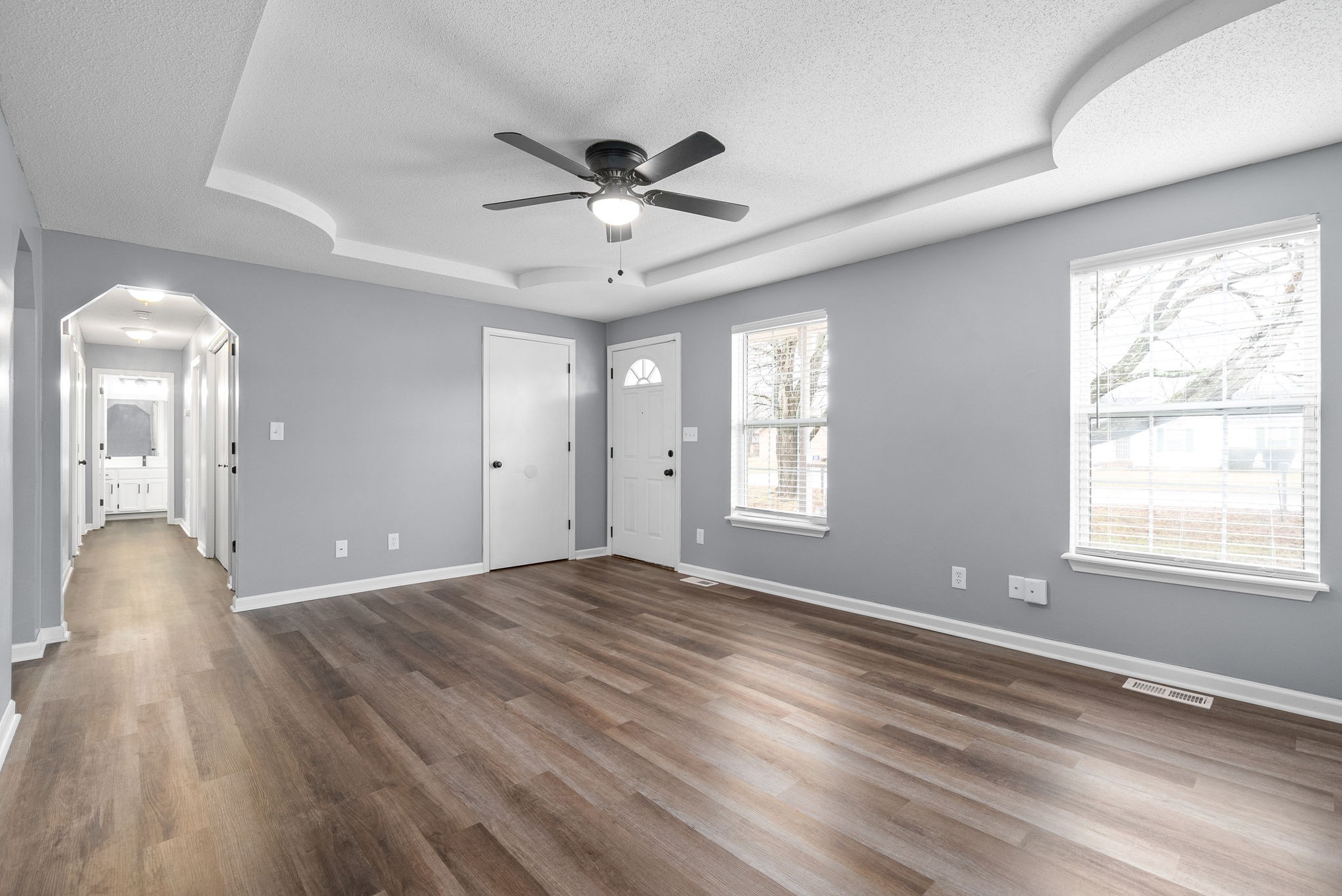 This showstopping 3 bed, 2 bath ranch style is the perfect space! Updated with fresh paint, LVP flooring throughout, light fixtures, carpet, and toilets, this home is turn key and ready for immediate move in. The expansive fenced-in yard sits on over a quarter acre and backs to a treeline, ideal for entertaining guests and enjoying time on the deck. One car garage could be used for a workshop or storage. No HOA! Twenty minute drive to base, and 10 minutes to downtown Clarksville. Schedule your showing today!