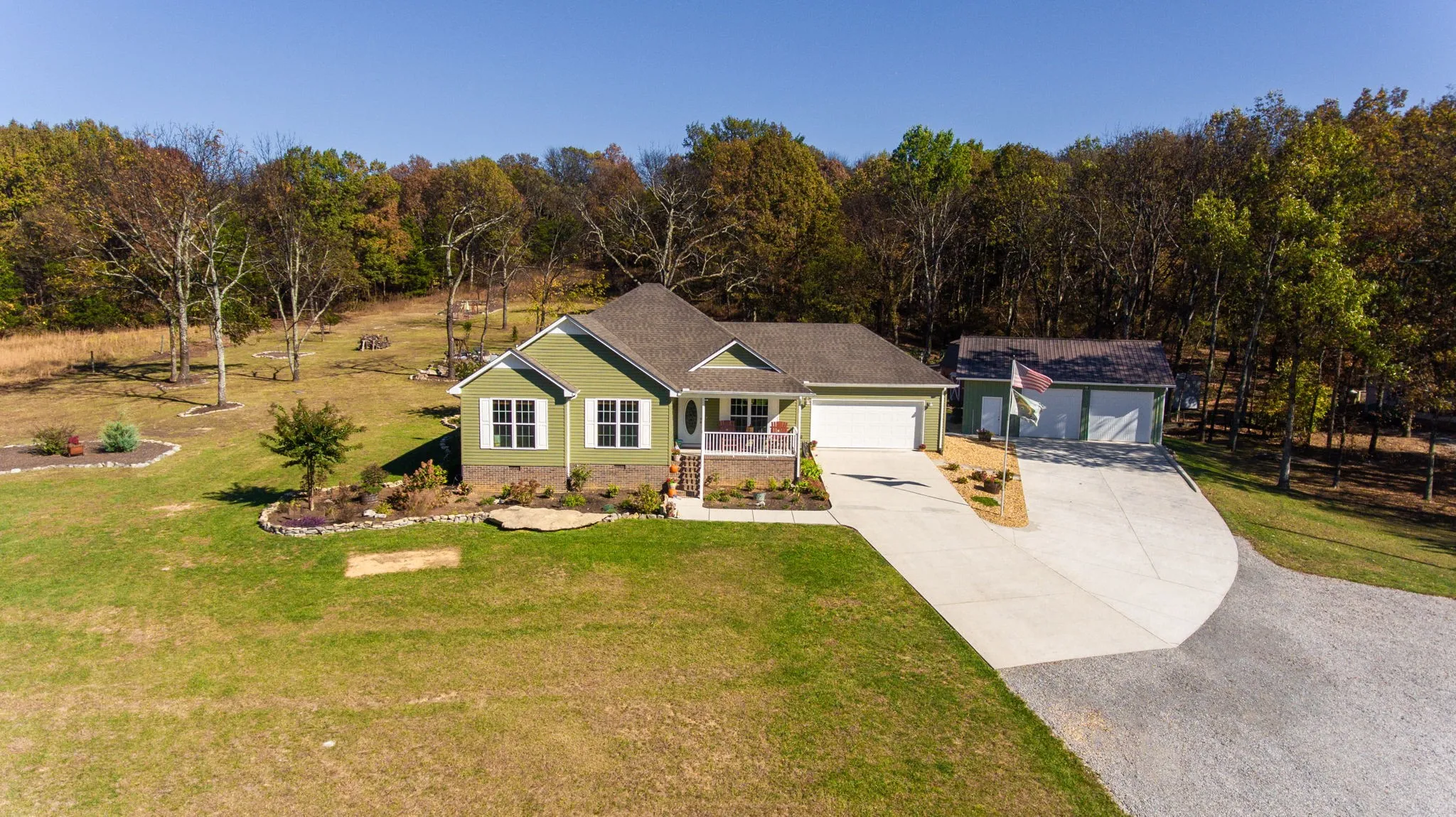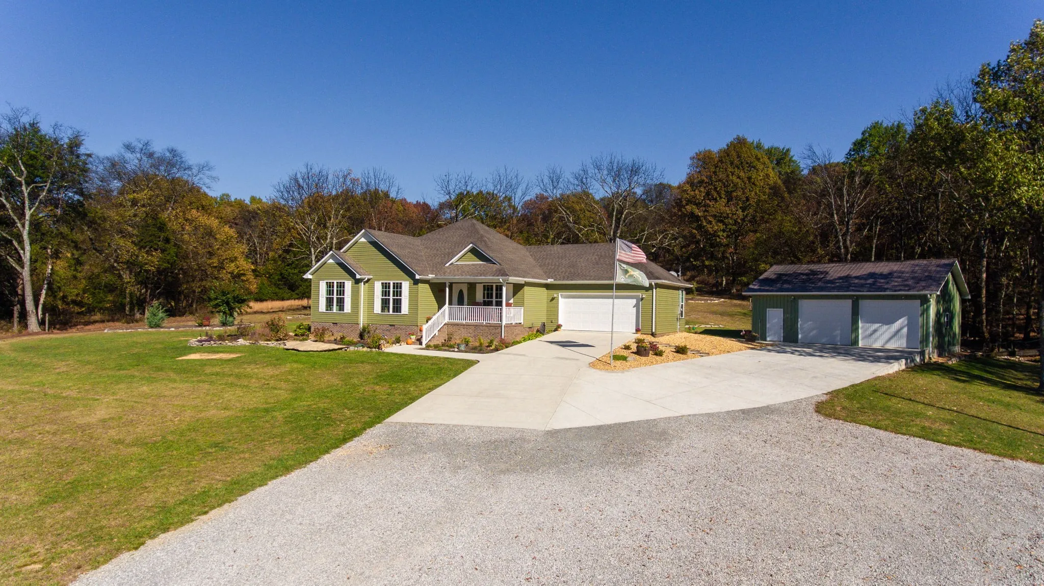 Escape to your own private oasis! This impeccable 4 bed, 2 bath home sits on 5.54 acres of breathtaking landscapes, surrounded by rolling hills. Enjoy the wonders of nature as you unwind in the firepit area or kick back and chill on the back deck. There’s even a generous 900 sq ft pole barn for extra parking or storage, plus a versatile 24×16 barn perfect for a she shed, man cave, workshop, gardening retreat, or crafting haven. The move in ready home offers a spacious floor plan, perfect for relaxation and entertaining, creating a welcoming environment for everyday living. Embrace the enchanting blend of rustic charm and modern comfort in this idyllic setting, where every detail invites you to experience the joys of country living! Huntsville, Tullahoma, and Fayetteville are just a short drive away. House built in 2019, so everything is less than 5 years old!