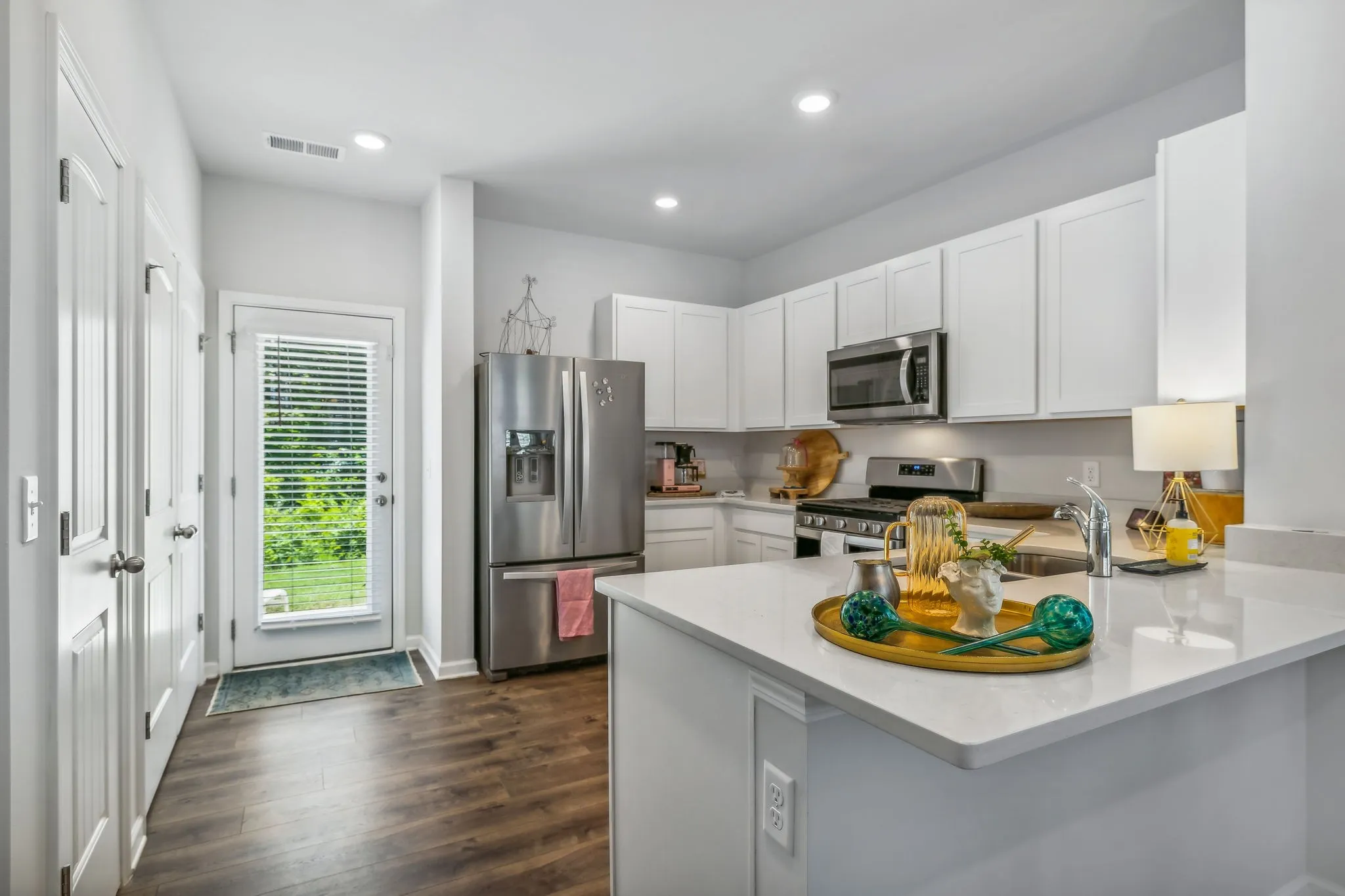 UNDER CONTRACT–This townhome is pristine and a beauty! It is light and bright with wood laminate flooring and white quartz counters. Main bedroom has laminate flooring, is expansive and features board and batten on one wall. There is room for an office, study, or whatever your heart desires. THERE IS A BEDROOM WITH ATTACHED FULL BATH DOWNSTAIRS. White kitchen cabinets and stainless appliances make for a beautiful kitchen! Refrigerator to remain. This townhome backs up to private tree line providing privacy. This beautiful home is conveniently located 1 mile from I-40 between Mt Juliet and Lebanon. 20 min to airport. Neighborhood has 2 dog parks, playground, pool, and trail to natural duck pond and pavilllion.