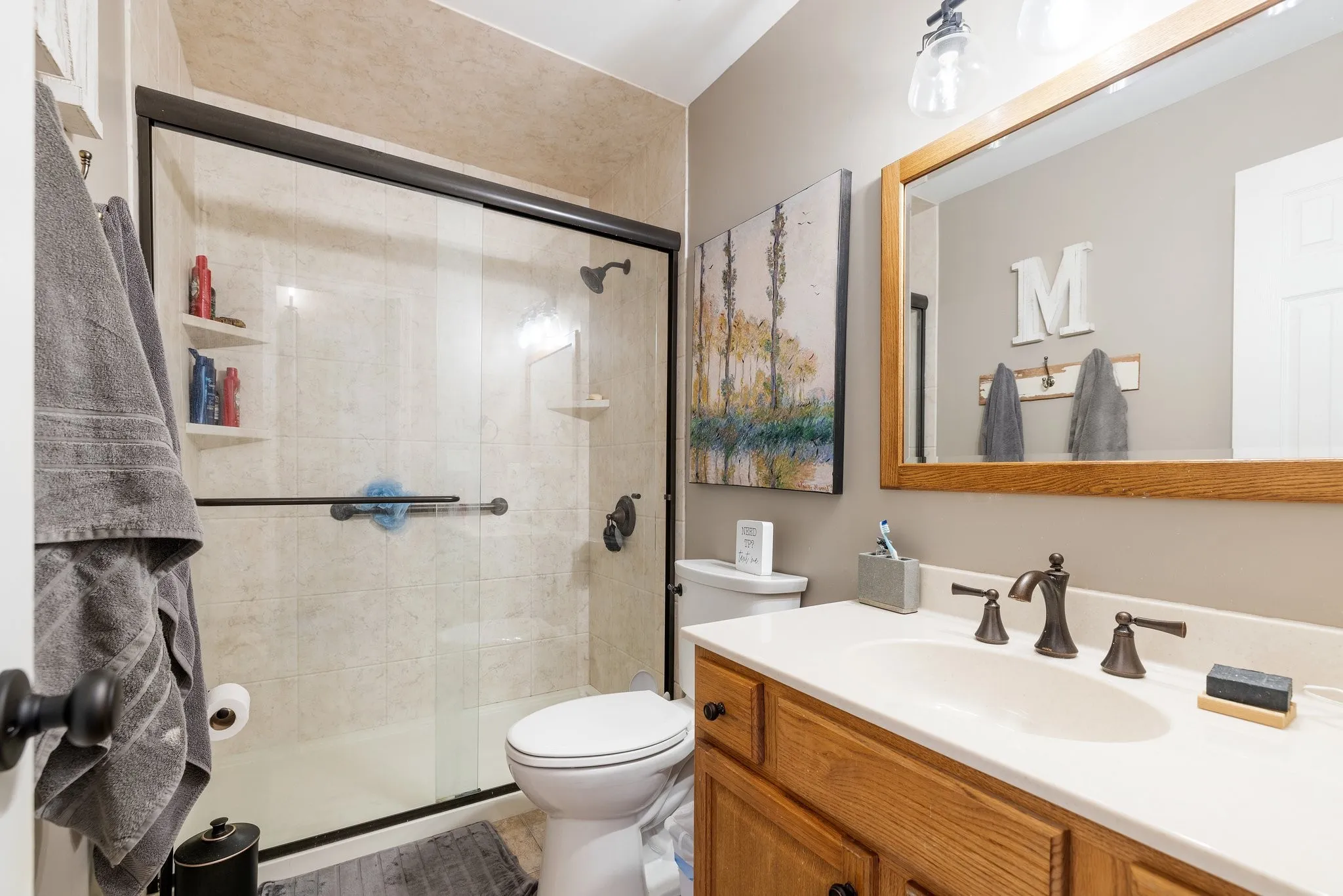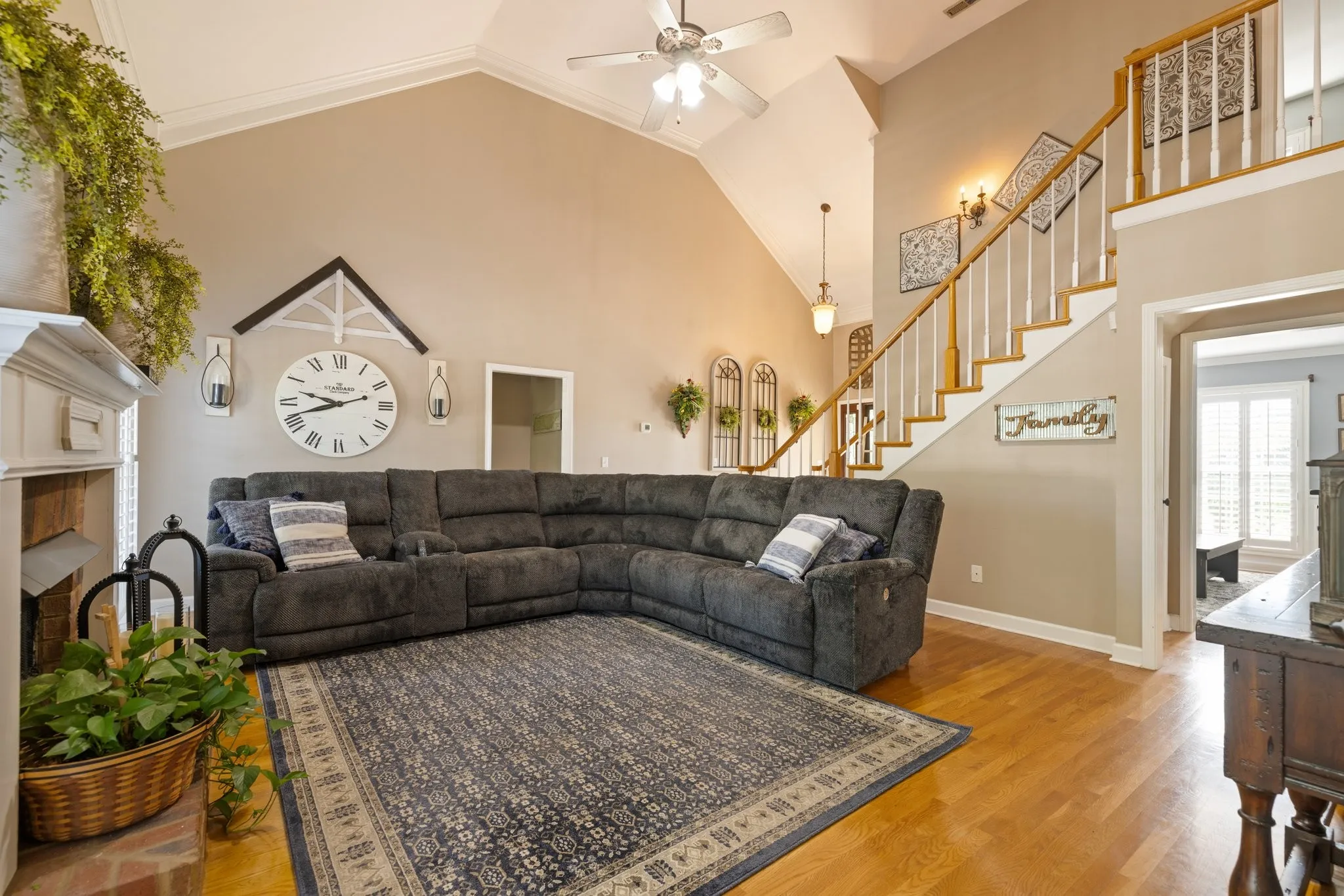 NEW PRICE! NEW PRICE! NEW PRICE! This WILLIAMSON COUNTY home has been extremely well-maintained & is conveniently located to everything Spring Hill! Home features the primary bedroom down. Hardwood floors on the main floor & Plantation shutters throughout. Cozy up next to the Gas Fireplace or enjoy your morning coffee from the large front porch. Primary bath features large tiled shower & Jacuzzi tub with dual sinks. Shiplap custom walls can be found in both the half bath & laundry room which also has extra cabinets for storage. Enjoy low maintenance living features with the beautiful Trex Lumber deck, plus a 6-PERSON STORM/TORNADO shelter located in the garage is only 2 years old. This amazing home is pet friendly with a full fenced in backyard for the kids to safely play or to protect your roaming pets. Home is located directly across from the community dual pools and splash pad. This community has sidewalks which are great for lazy morning or afternoon strolls.