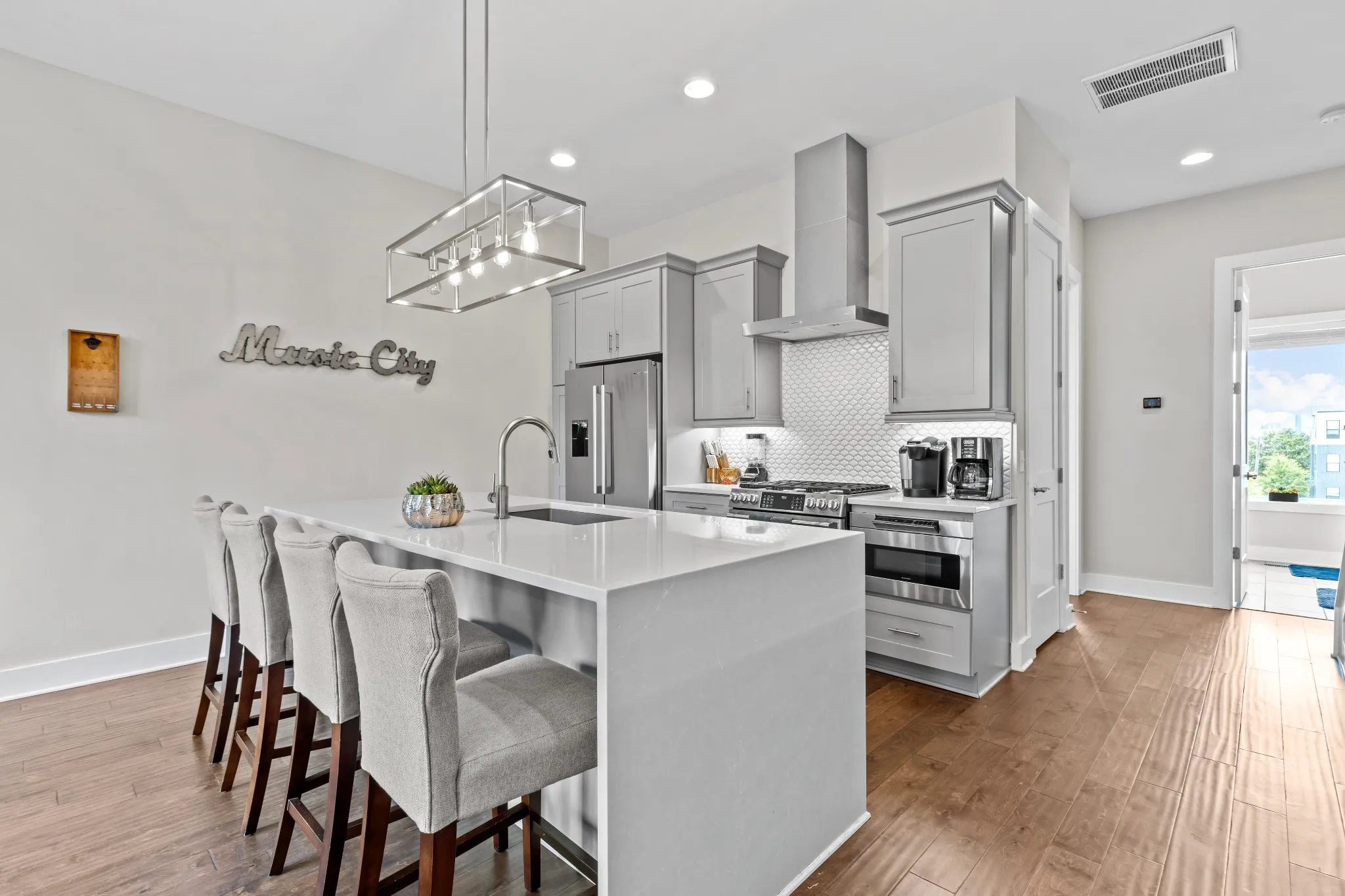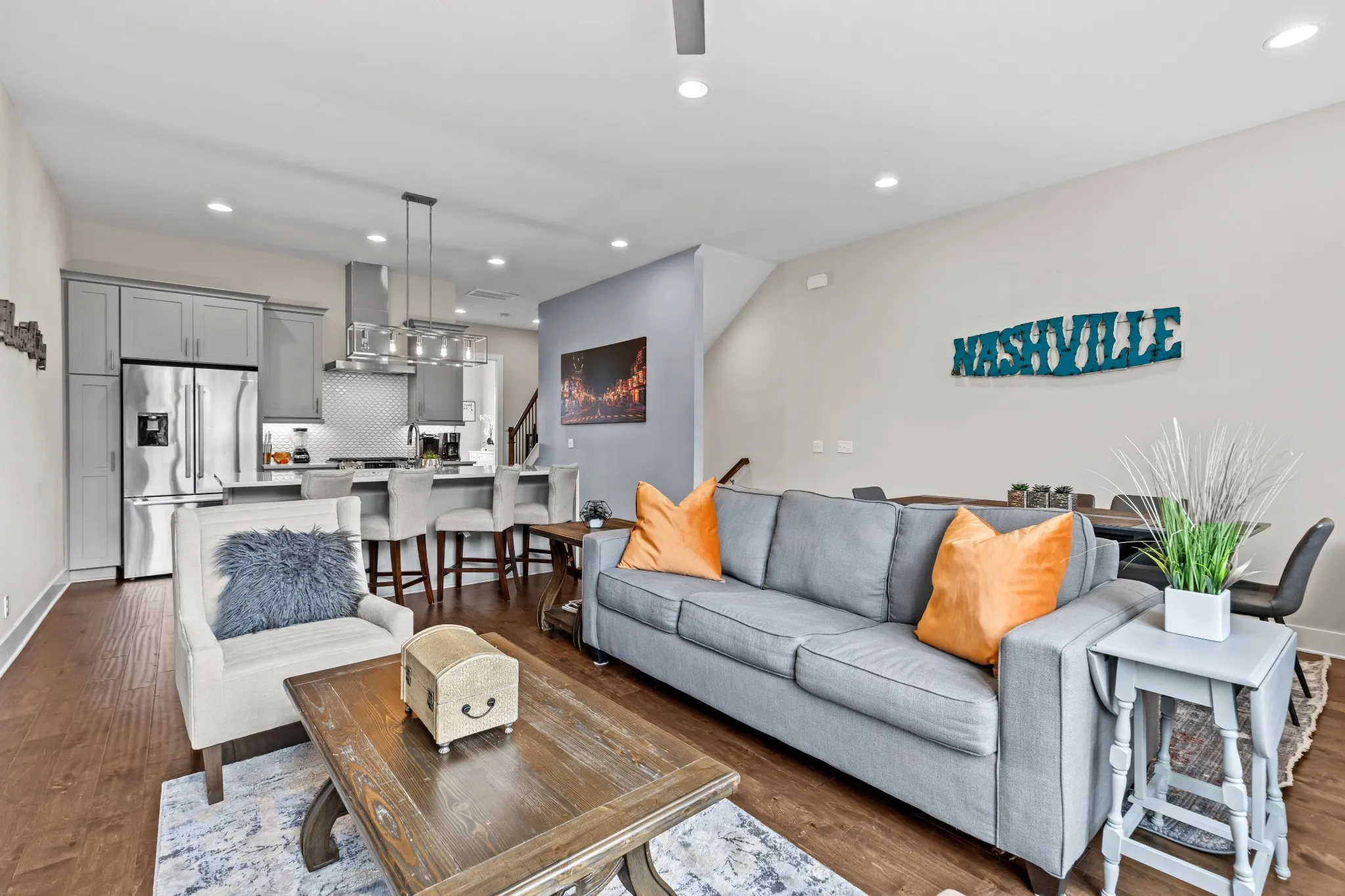 PRICE IMPROVEMENT!!! INCREDIBLE ROOFTOP VIEWS, FANTASTIC LOCATION for this NOOSTR IN BEAUTIFUL, WALKABLE CITY HEIGHTS NEIGHBORHOOD only 5 MINUTES FROM BROADWAY & DOWNTOWN!!! Highly desired end unit, spacious open floorplan with floor to ceiling windows, gourmet kitchen with all stainless appliances/quartz countertops/tile backsplash/island bar. Multiple living/gathering areas with games/entertainment options. Four BR/4 full baths/3 levels/hardwood floors, both garage and street parking. SOLD FULLY FURNISHED, TURNKEY READY, w/NASHVILLE DESIGNER THEMED decor. WELL-ESTABLISHED RM-20 zoned community with multiple amenities, CITY HEIGHTS has restaurants, shopping, so close to all the hot-spots that make Nashville a must-see travel destination!!!