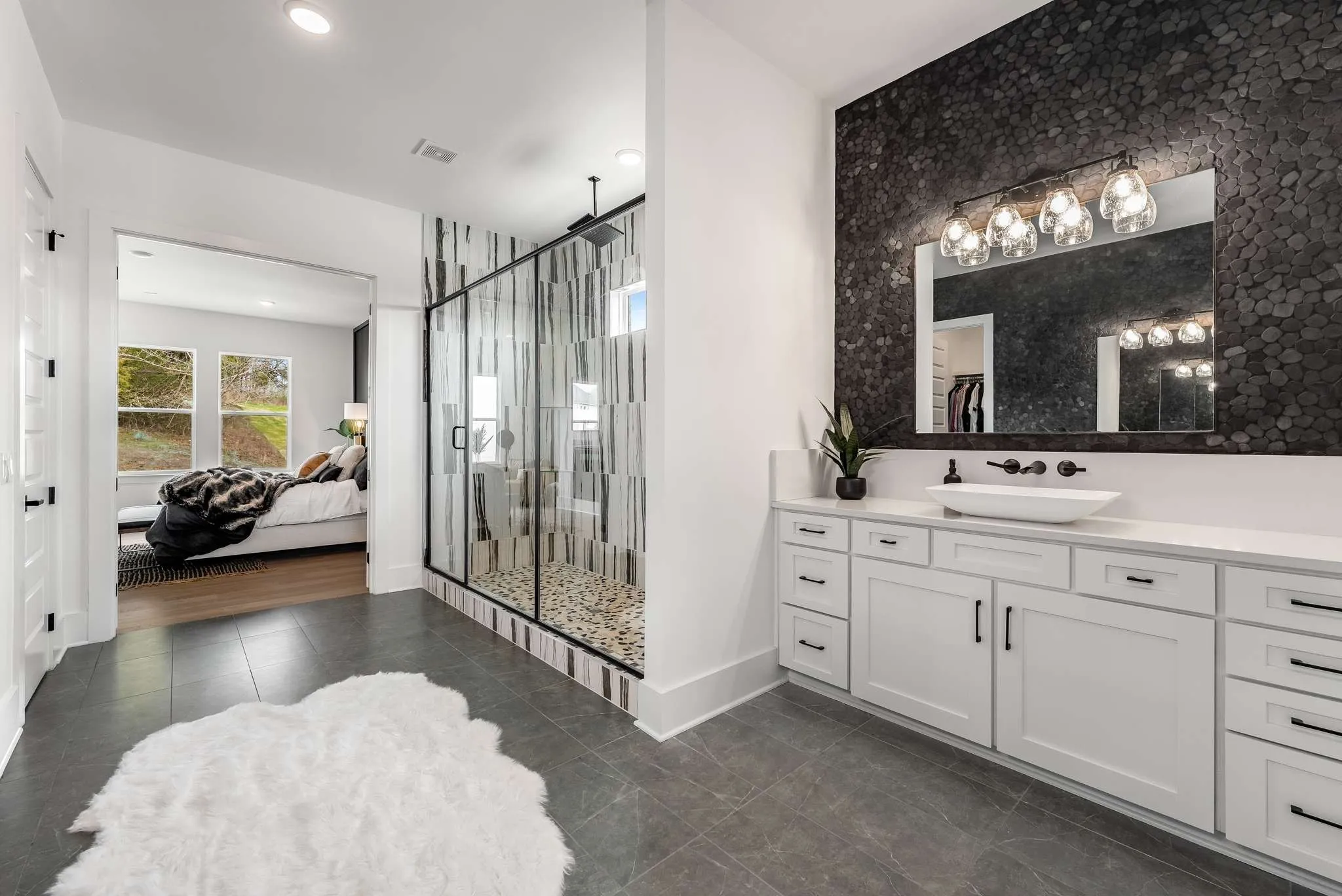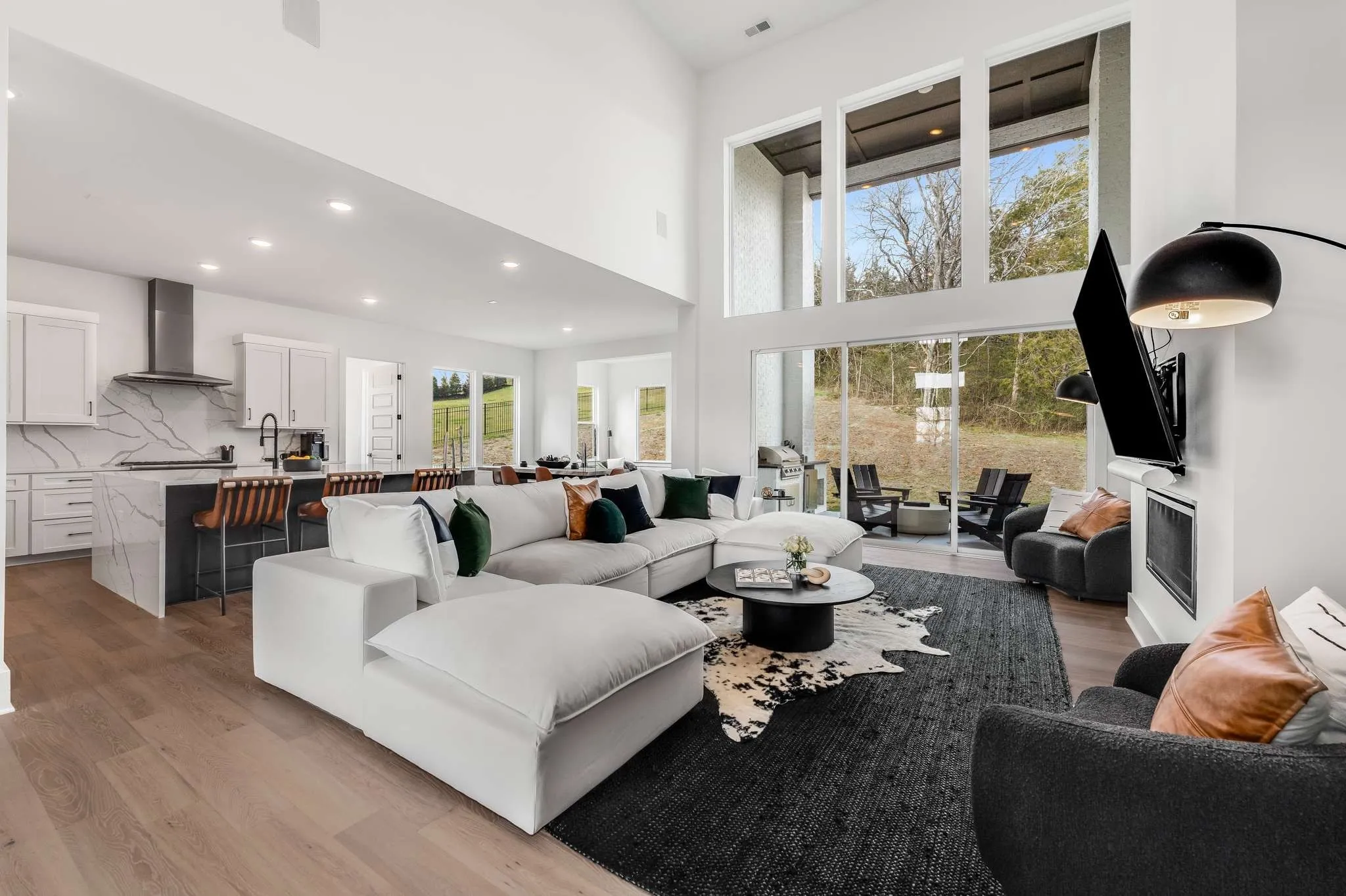 Magnificent Modern-Style home in Lookaway Farms! Built in 2023. This custom Luxury home is a new build with soaring ceilings in the main area and lots of natural light with floor to ceiling windows. 5 bedrooms and 7 baths. Media room, oversized laundry and oversized walk-in pantry. Primary bedroom suite and second additional bedroom on the main level. Second floor has 3 bedrooms and media room. All bedrooms with their own ensuite bathrooms. House is partially furnished (optional) with living room furniture, sunroom and master furniture.. Gourmet kitchen with full size refrigerator and freezer and marble waterfall island. 3 car garage with Tesla charging station built in. Whole house air purifier. No pets.