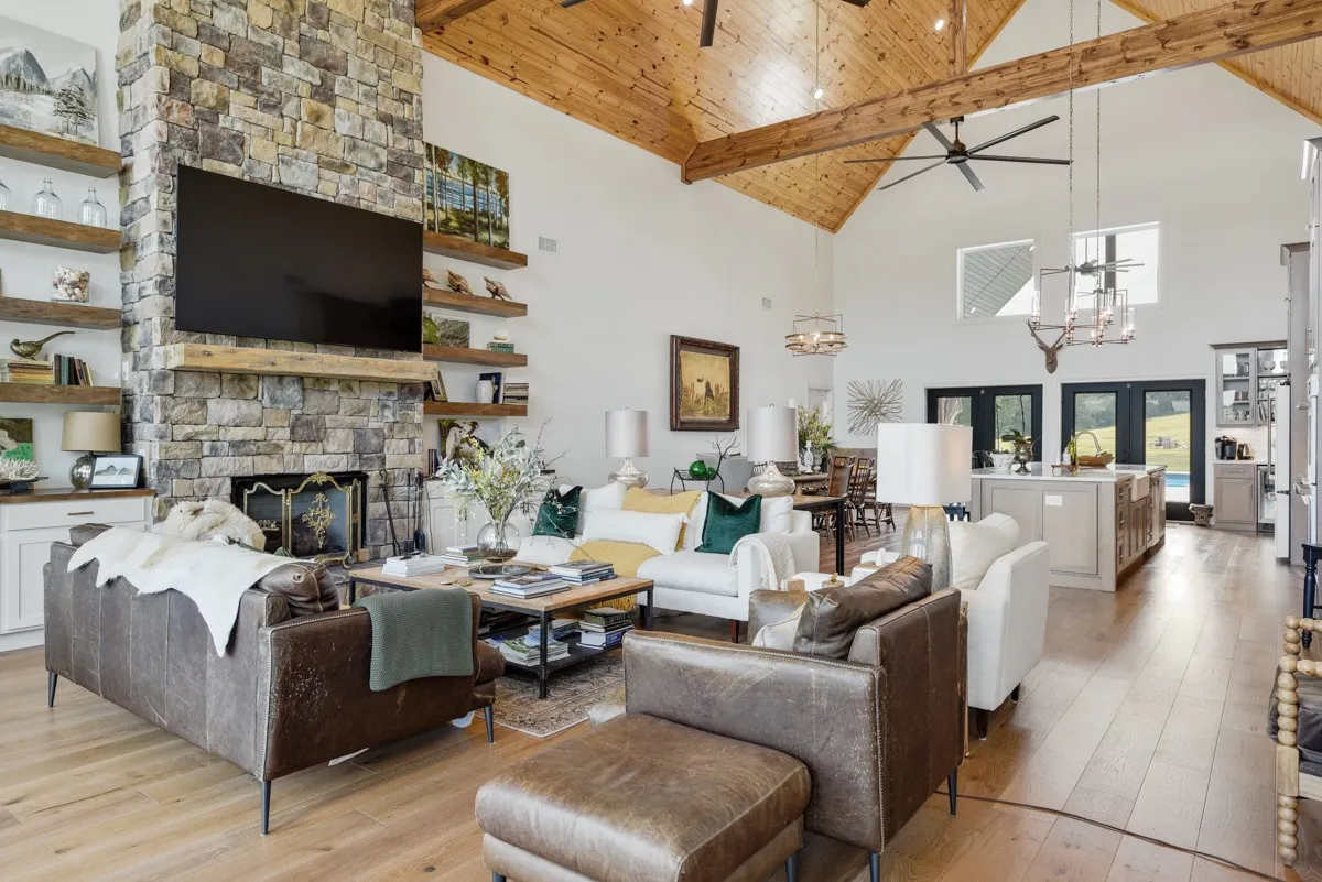 Welcome to 1030 Old Mount Vernon Rd! This custom built home sits on 50 +/- acres of pasture in greenbelt program. After taking in the breathtaking views, enter the home and admire the soaring ceiling with exposed beams and grand stone fireplace. Beyond the great room the kitchen boasts a large island for gathering, quartz counters, ample custom cabinetry and GE Cafe Series appliances w/WIFI and walk in pantry. The primary suite includes an oversized bedroom, walk in shower with dual heads, soaking tub, separate vanities and custom master closet. Plenty of storage in the 29×35 two car garage with 8 foot garage doors. Don’t forget to check out the Bonus room/office over the garage! The property is entirely fenced and cross fenced: ready for horses, cows and goats. It includes 2 creeks, 2 ponds, 1 spring, animal barn, hay barn and 24×30 shop w/ covered area for parking. When the day is done relax under the 24×24 covered patio, take a dip in the pool or rinse off at the outdoor shower!