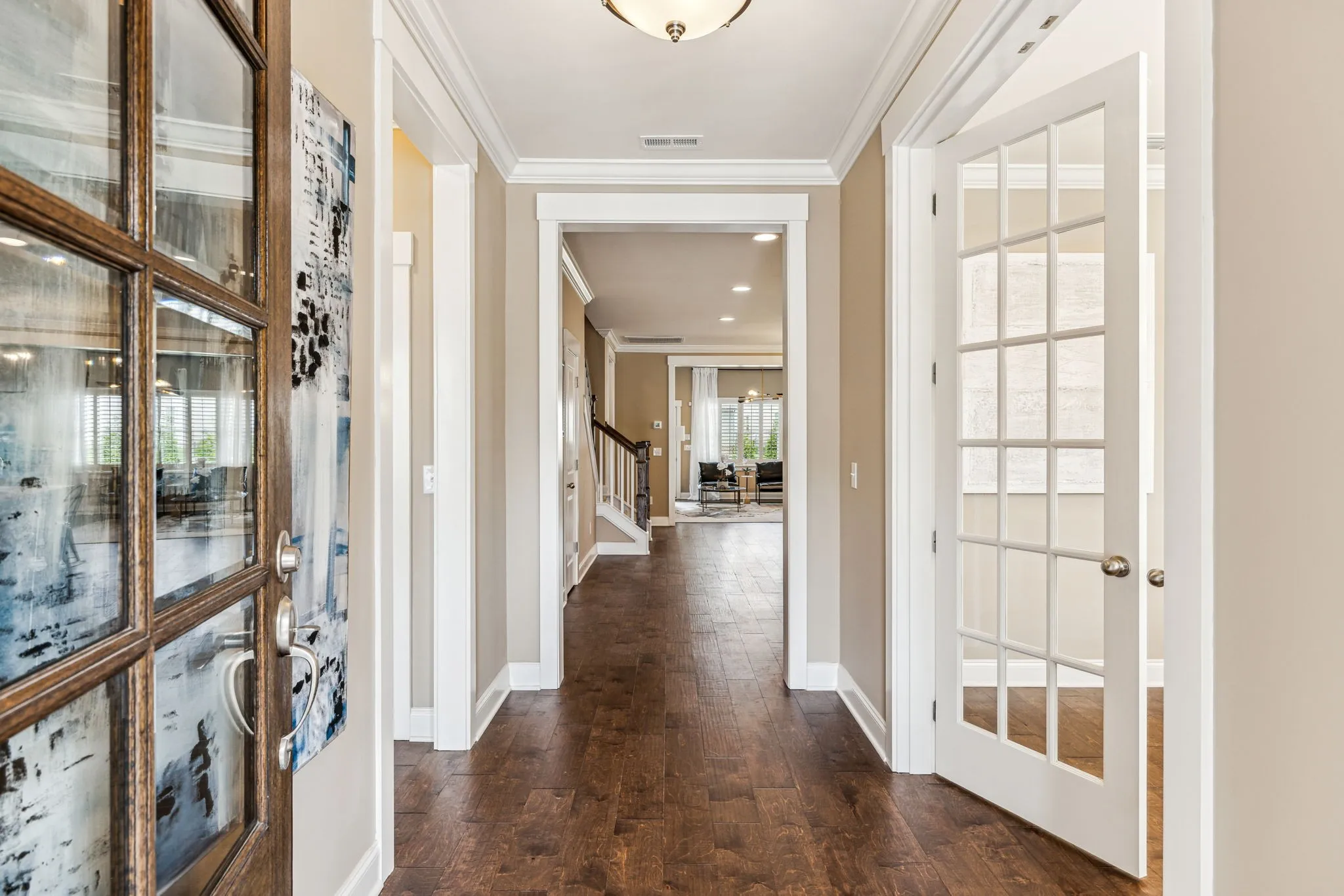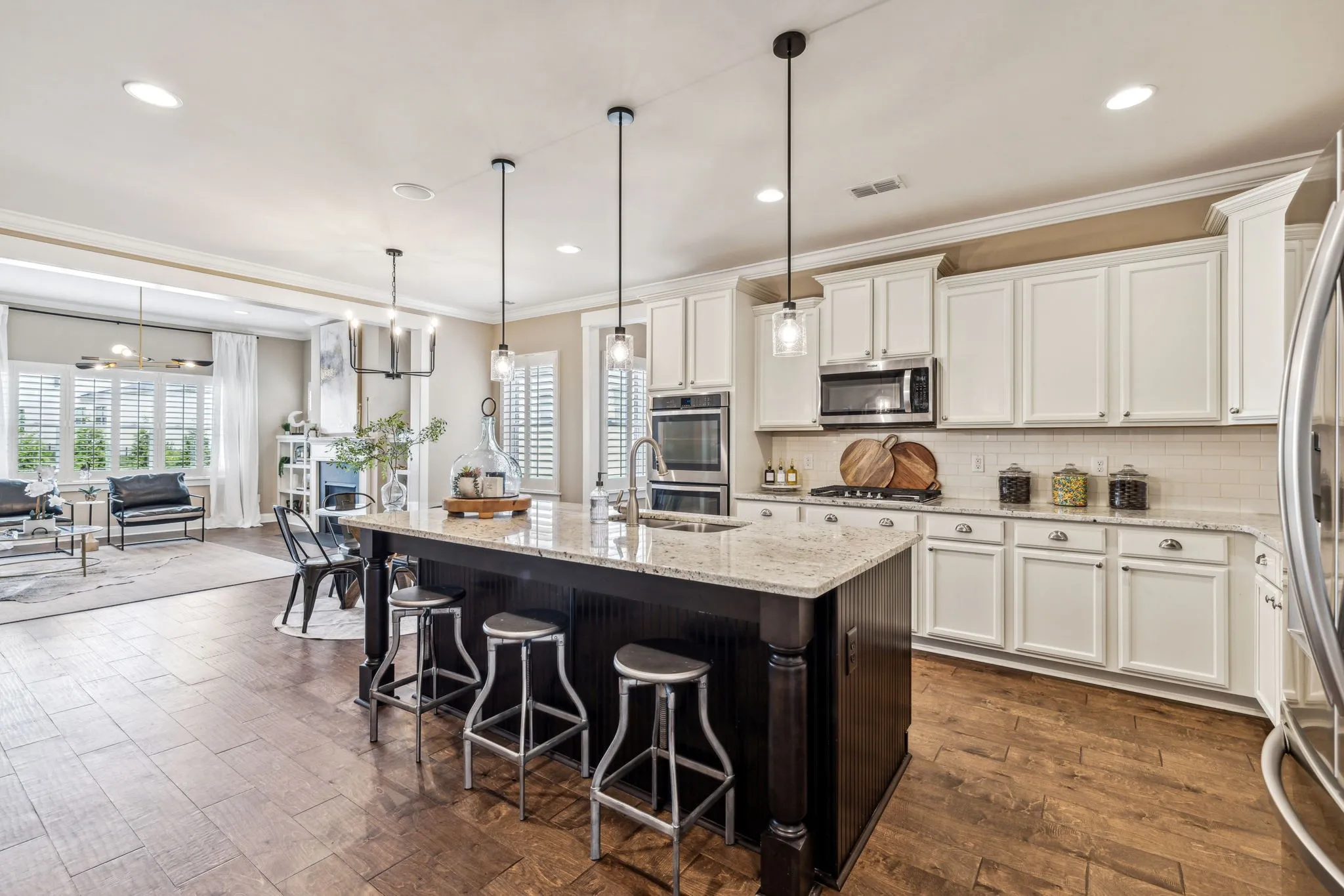 Stunning spacious all brick 4 bedroom, 3 bath Franklin home with an open floor plan, high ceilings, separate office, gourmet kitchen with large island, double oven, gas range, huge bonus room, large mudroom off the garage, tons of storage space, hardwood floors, plantation shutter, Sonos speakers throughout, custom master closet and kitchen pantry, nice flat back yard with irrigation. This property is zoned for highly ranked Williamson County schools and is minutes away from Downtown Franklin, Cools Springs and so much more. Drapes do not remain.
