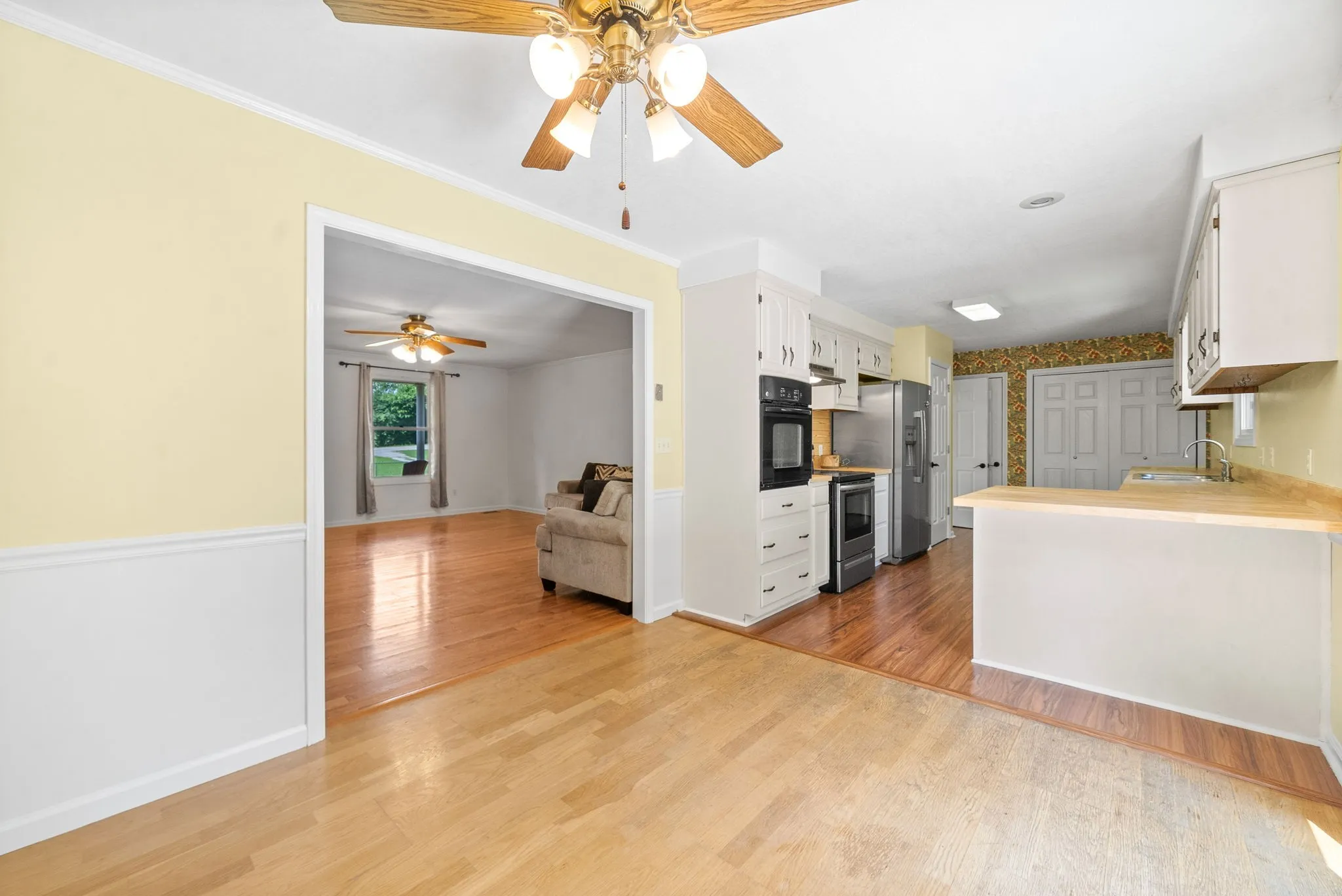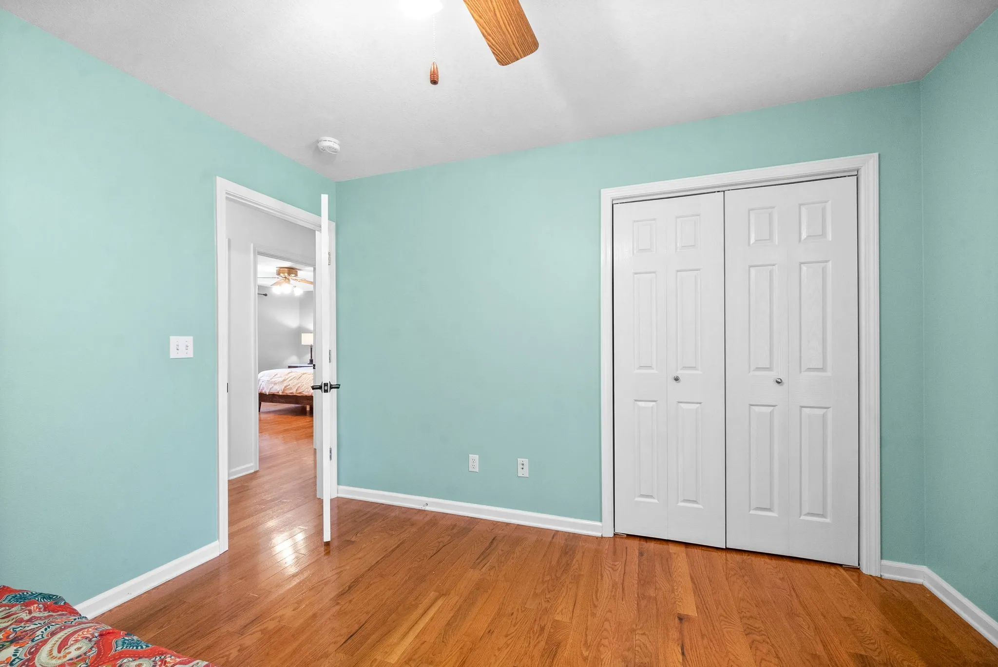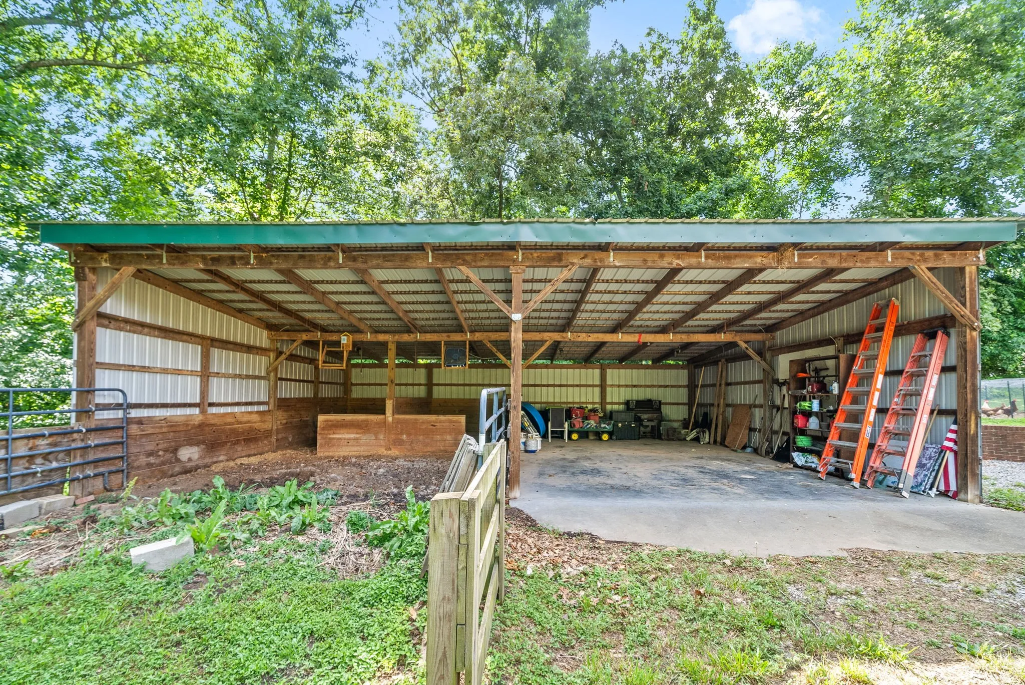 Beautiful move-in ready home on 2.08 acres in Clarksville! This unique home sits far back off the road for privacy and features a 4 bedroom layout with 2 separate master suites on either end of the home, a full basement with 9 foot ceilings throughout that is perfect for expansion and tornado shelter, huge closets with tons of thoughtful storage spaces, a detached shop with 2 horse stalls, fenced horse run and a concrete parking area, fenced front yard area for dogs or kids, hardwood floors throughout the entire home (no carpets!) and more! Recent upgrades include antique wood accent walls, new butcher block countertops, new range, new LVP flooring in 4th bedroom and kitchen, new back deck and private driveway. Convenient to Fort Campbell and Clarksville yet unrestricted and outside city limits. All kitchen appliances and paid off solar panel system remain! come check out this beautiful home today!