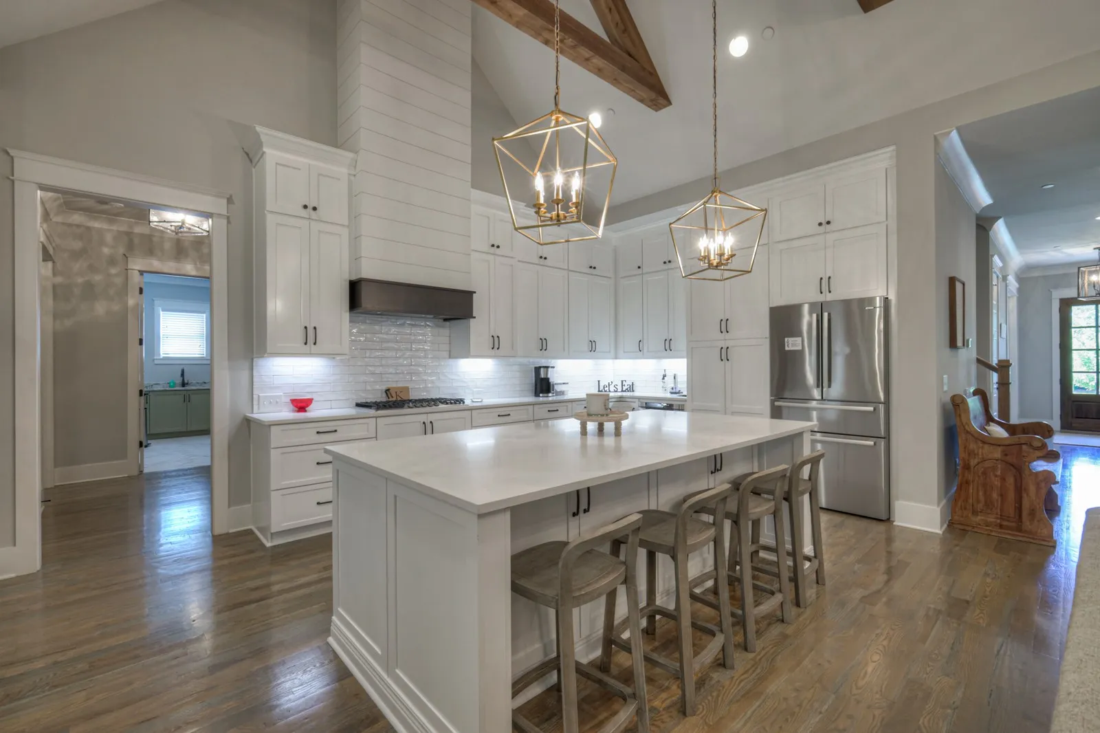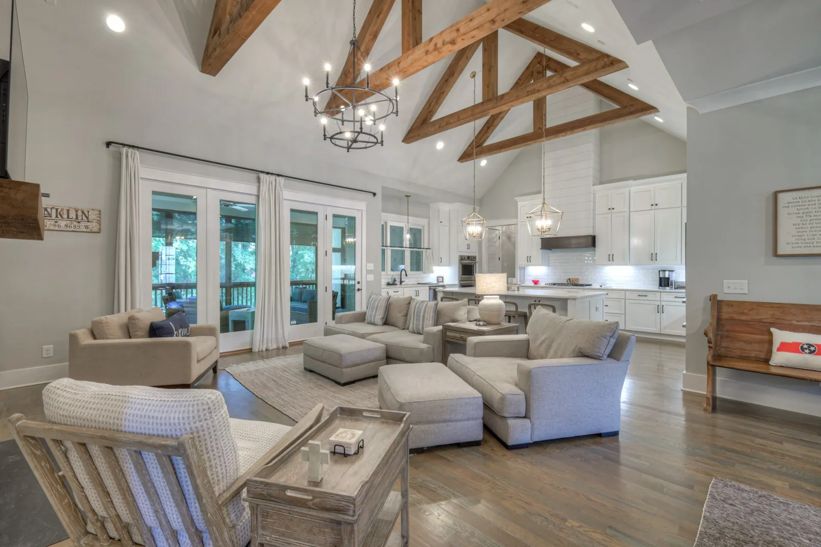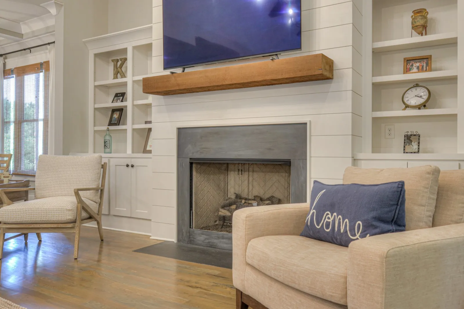 Welcome to true luxury with this Custom Built Barlow home just 1 mile to downtown Franklin & also I-65. With charming shiplap accents, high vaulted ceilings & open floor plan, this residence exudes both elegance and functionality. The upstairs loft boasts a convenient home manager desk, while the concealed walk-in pantry and screened porch with a fireplace add to the home’s allure. Enjoy privacy and tranquility as this property backs to a serene tree line. Inside, you’ll find open coffered ceilings in the dining room, exquisite woodwork on the office ceiling, and thoughtful touches throughout. The primary suite and bedroom 2 are conveniently located on the first floor, each with its own full bath, providing ultimate comfort and convenience. Upstairs, a bonus room offers additional space for relaxation or entertainment, along with extra storage. The impeccable design and meticulous attention to detail make this home a masterpiece. Abundant storage & fire suppression sprinklers.