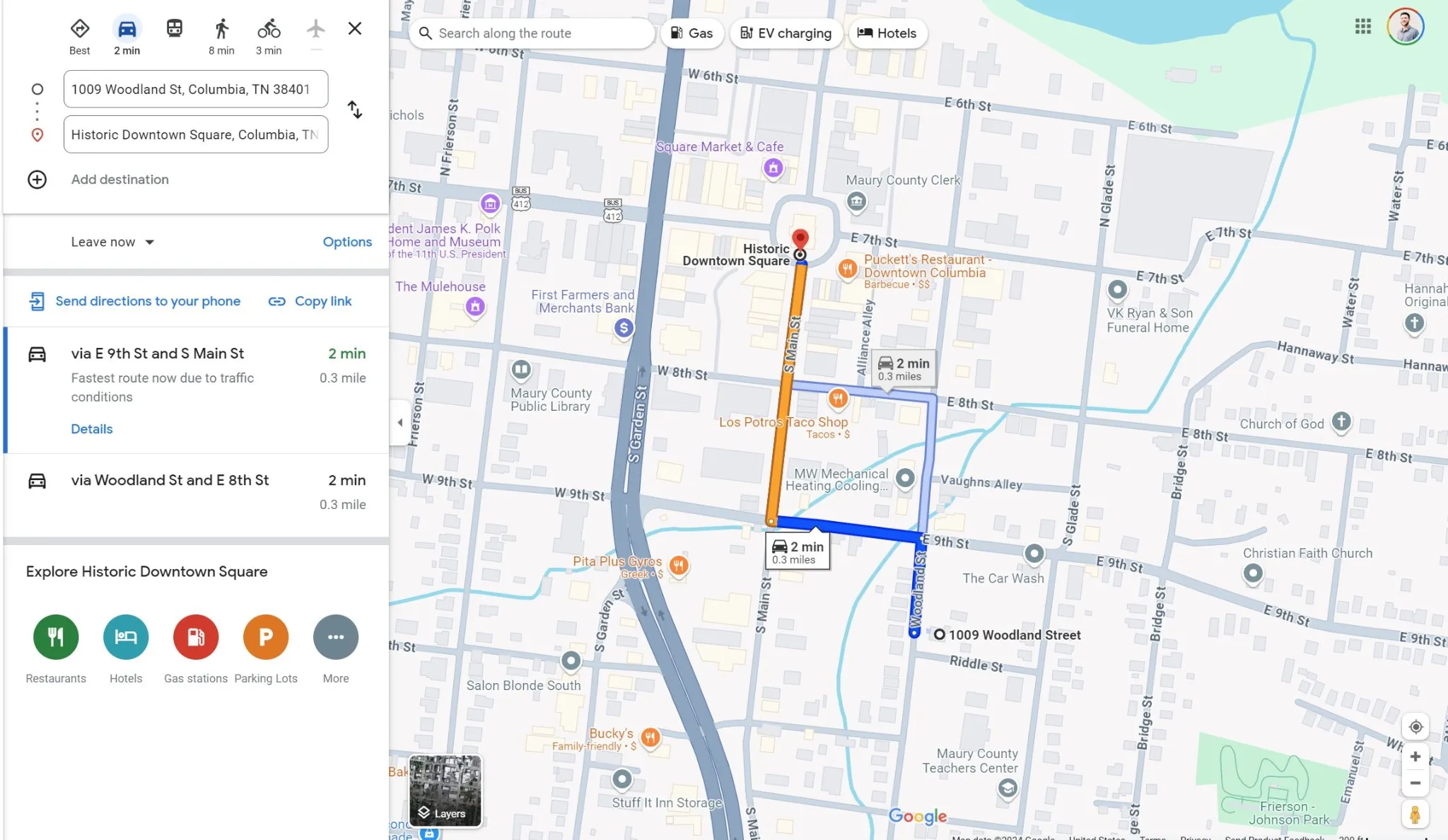 - Directions: From the Historic Columbia Square, go south down S Main .2 miles, turn left on E 9th Street for .1 miles, then turn right onto Woodland Street. Continue ~315' and the property will be on the left.