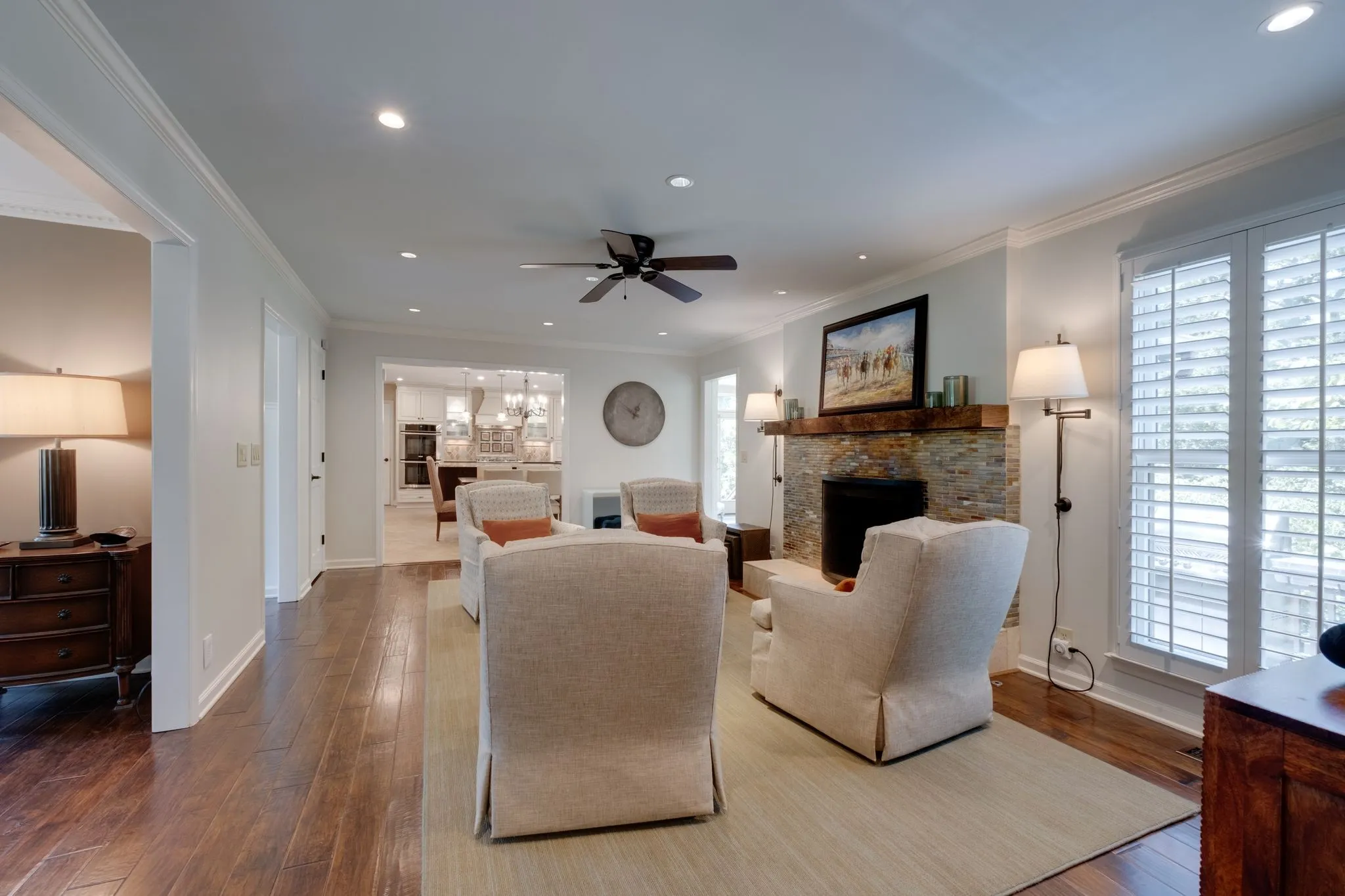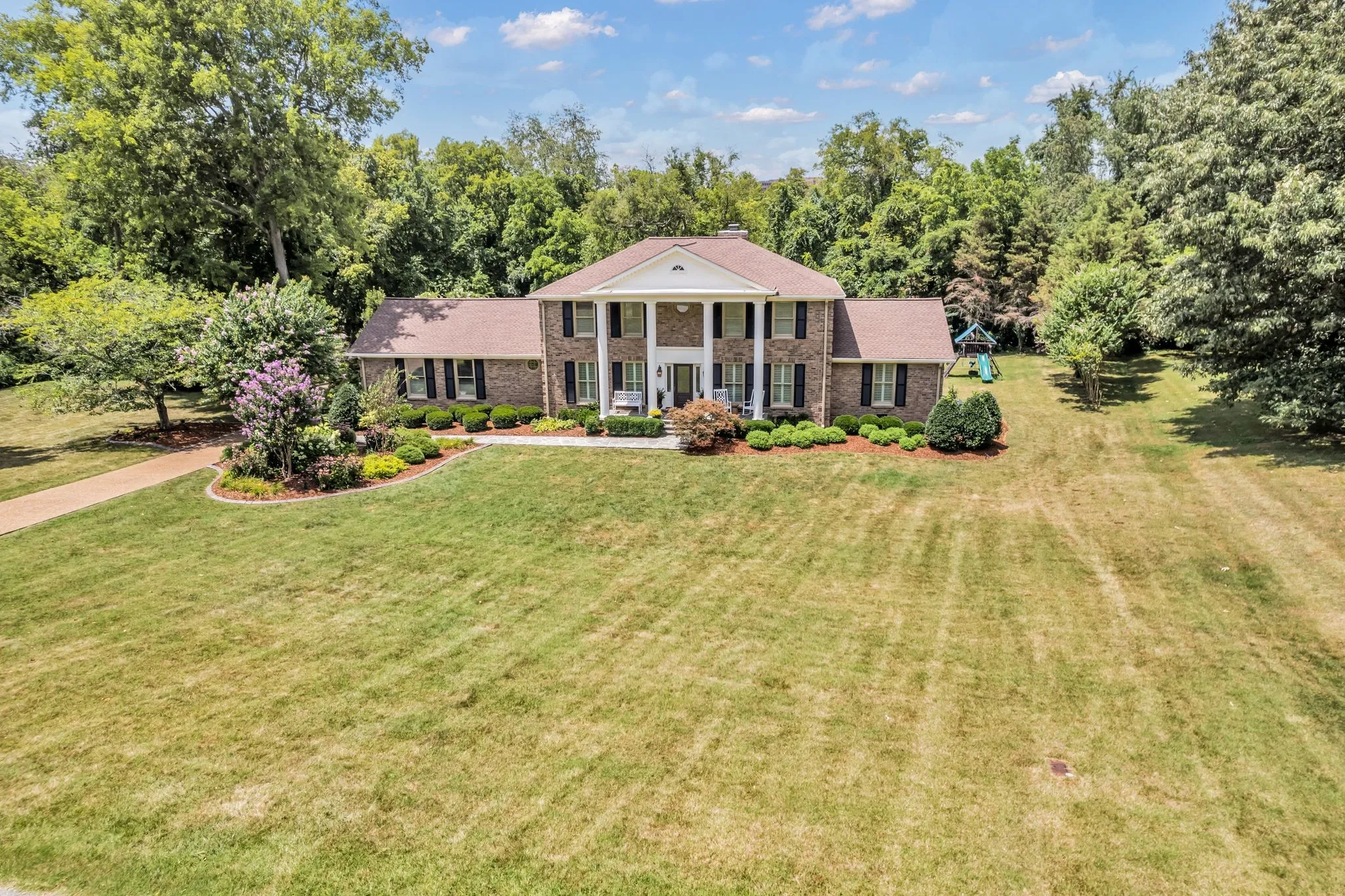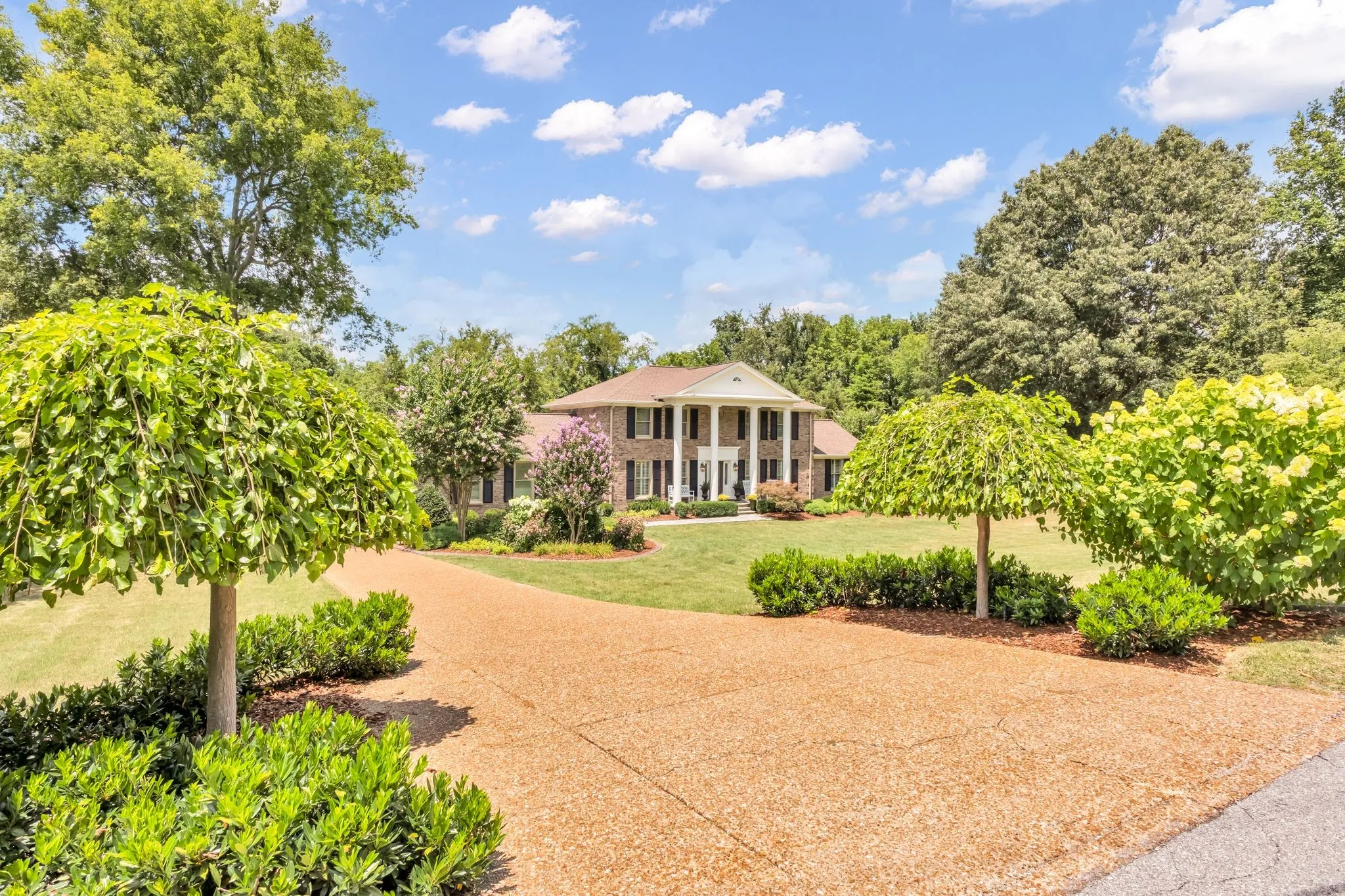 Elegant Franklin Home on 1.14 acres in the beautiful park-like setting of Cross Creek. This all-brick home features a new roof, Pella windows, flagstone entry pathway & front porch, garage with epoxy floors, large driveway with ample parking space, and professional landscaping w/ designer-concrete edging. The interior features wide plank hardwood flooring in main living spaces including the primary suite. Beautiful kitchen with custom cabinets, granite countertops, & upgraded appliances. The large bonus room has a wall of custom cabinets & home theater system. Two primary suites – one on each level. The upstairs primary features a new renovated bathroom & large walk-in closet. The four-season Florida room w/ gas fireplace is an amazing feature to enjoy the outdoor views. Dual water heaters. Excellent storage space. Cross Creek subdivision is an established community w/ large lots, trees, wildlife, serene landscapes & conveniently located just .7 mile to I-65 & mins to Cool Springs