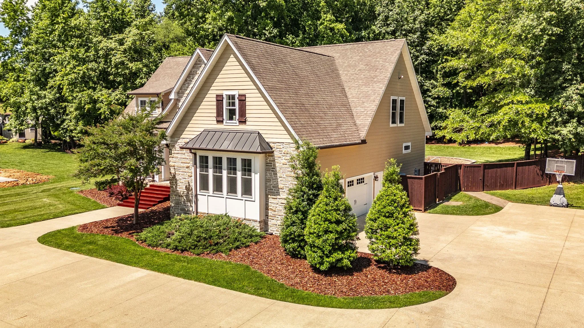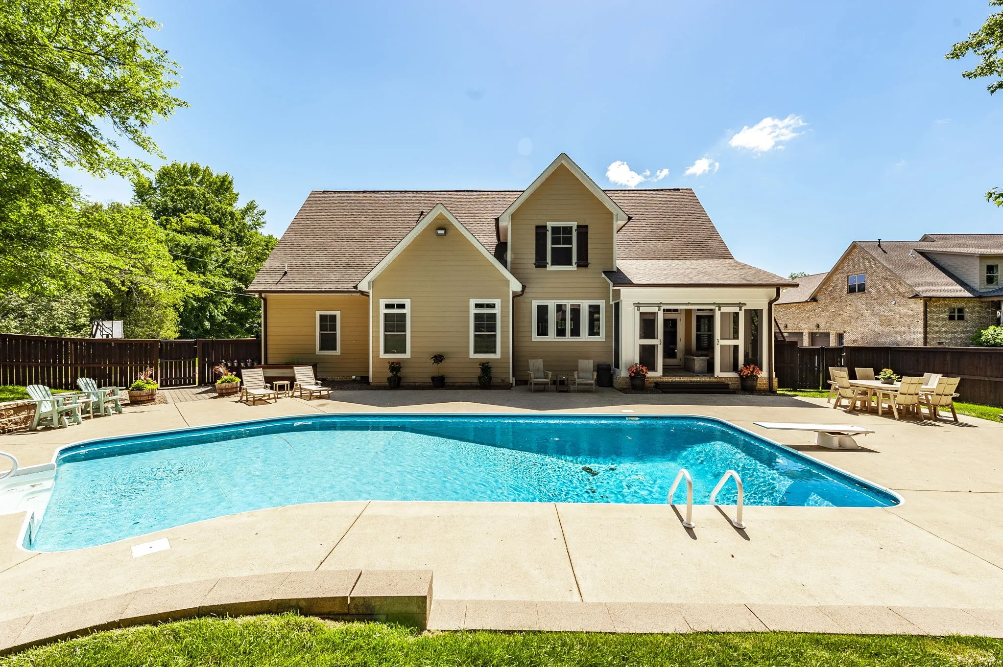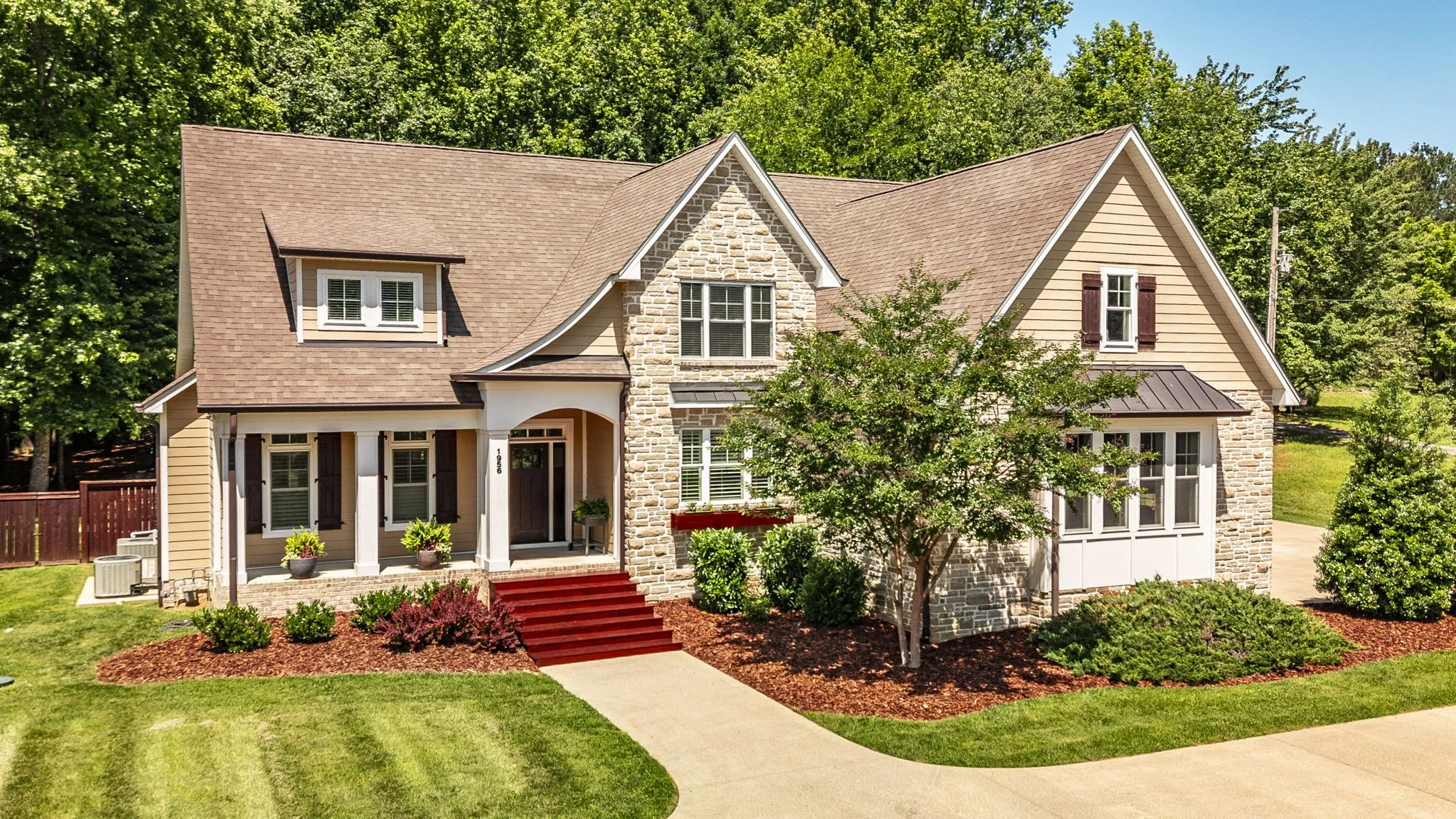 +"PublicRemarks": "Nestled on 1.83-acre lot, this custom-built home offers unparalleled luxury & privacy, making it the perfect retreat. Surrounded by mature trees & backing up to serene woods, providing a tranquil setting while being just a short drive from amenities. This home is thoughtfully designed with high-end finishes & architectural details that create a harmonious blend of elegance & comfort. Enjoy an open floor plan with expansive living spaces, including a well-appointed kitchen, a cozy fireplace in the living room, & large windows that flood the home with natural light. Rich hardwood floors flow throughout the main living spaces, adding warmth & sophistication. The primary bedroom offers stunning views of the surrounding woods, walk-in closet, & spa-like bath. Step into the ultimate outdoor living experience with a screened-in patio, saltwater pool, & a grilling & lounge area. Each feature is thoughtfully designed to provide the perfect blend of comfort, relaxation, & entertainment."