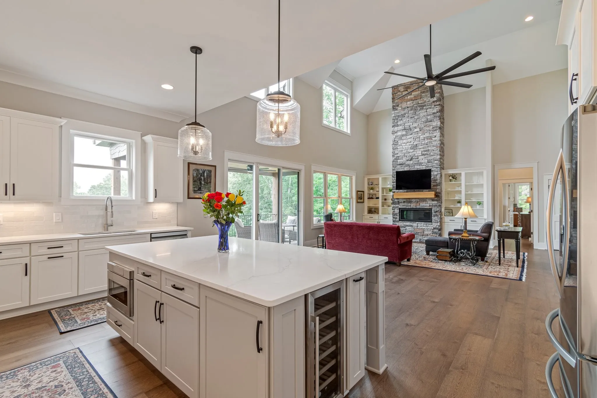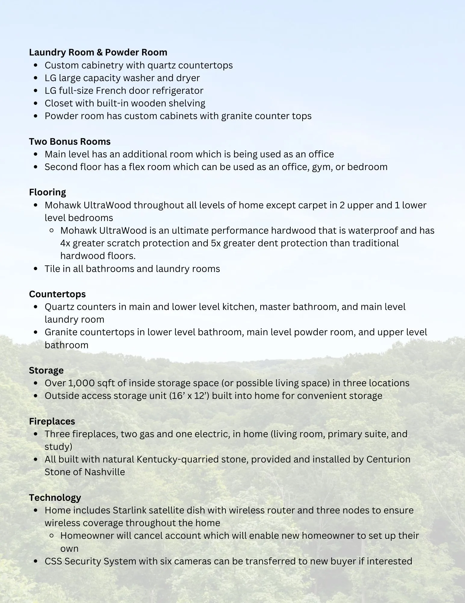+"PublicRemarks": "Embrace serene living in this stunning custom 5-acre estate conveniently located less than thirty minutes from the heart of Nashville. Crafted with meticulous attention to detail and designer touches, this residence offers ample entertaining space, ideal for gathering with friends and family. Perfectly designed for multi-generational living or those with similar needs, this home includes a full downstairs in-law suite. Enjoy over 1700 sqft of outdoor living space, including a heated and cooled salt-water pool and two back decks with a breathtaking view. While this home has all the feel of a secluded oasis, just minutes away is all that Bellevue has to offer, as well as Harpeth River kayaking, bike trails, and outdoor recreation."