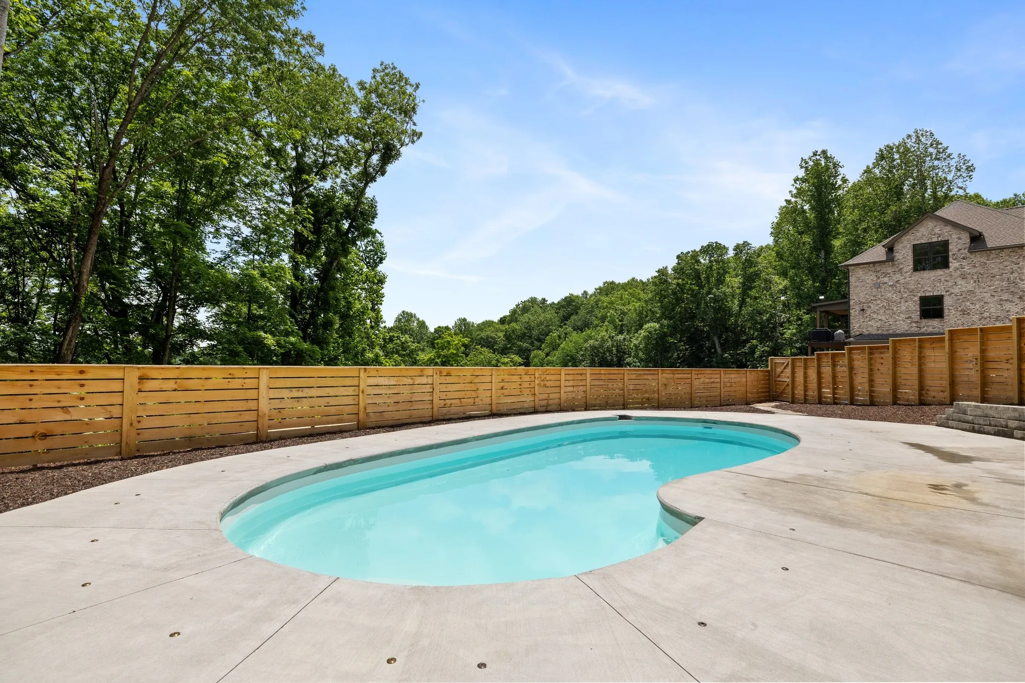 "LongDescription" => "Pool area is enclosed with a horizontal plank privacy fence for seclusion and safety"