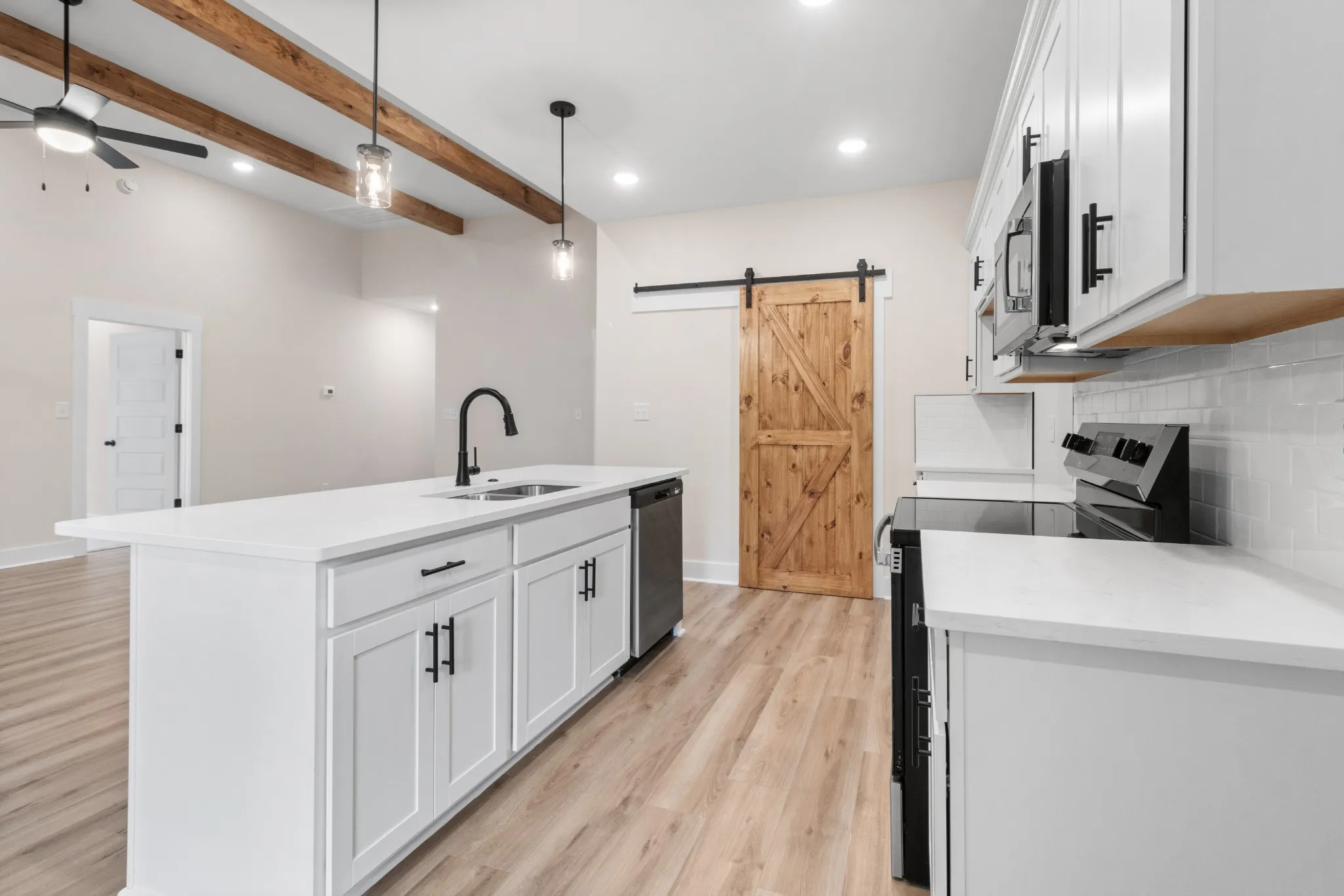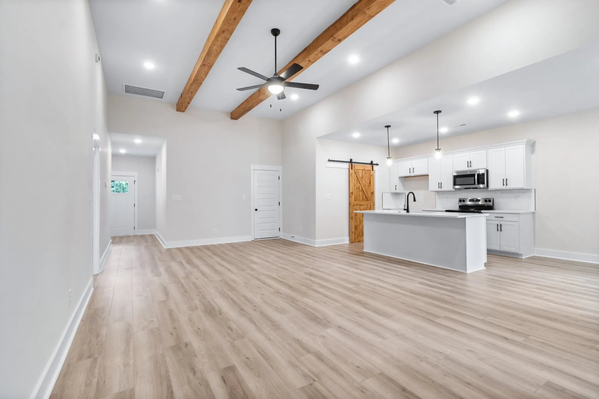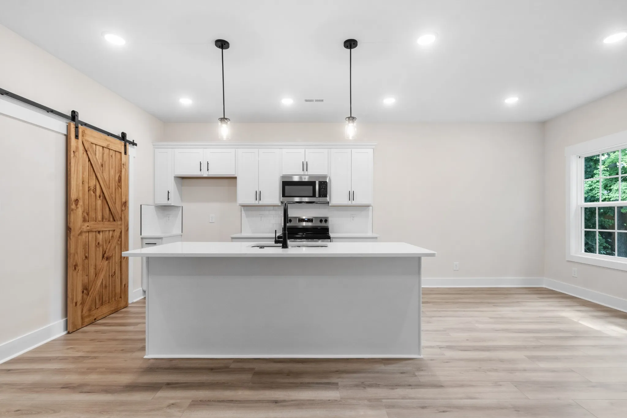 She’s demure and mindful! SHE HAS CONCESSIONS!! Appraised for $330,000! Complete and ready to move in! This home has custom cabinets, quartz countertops, luxury vinyl flooring throughout with tiled bathrooms and carpeted bedrooms. Let’s not forget this home has an electric fireplace that is encased with shiplap! Not to mention the rafters in the living room to add a custom feel along with the sliding barn door to the walk-in pantry/utility room! *If accent color isn’t something buyers want, we will paint the wall to match the rest of the house* This home is the last one to be built on this side of the road, so no left neighbors! This subdivision is in the epicenter of town and easy access to Fort Campbell and to Wilma Rudolph.