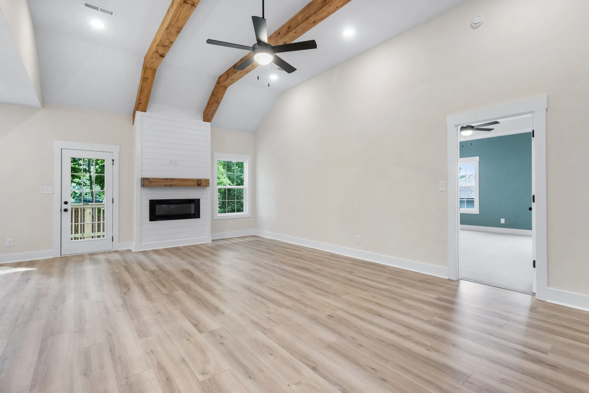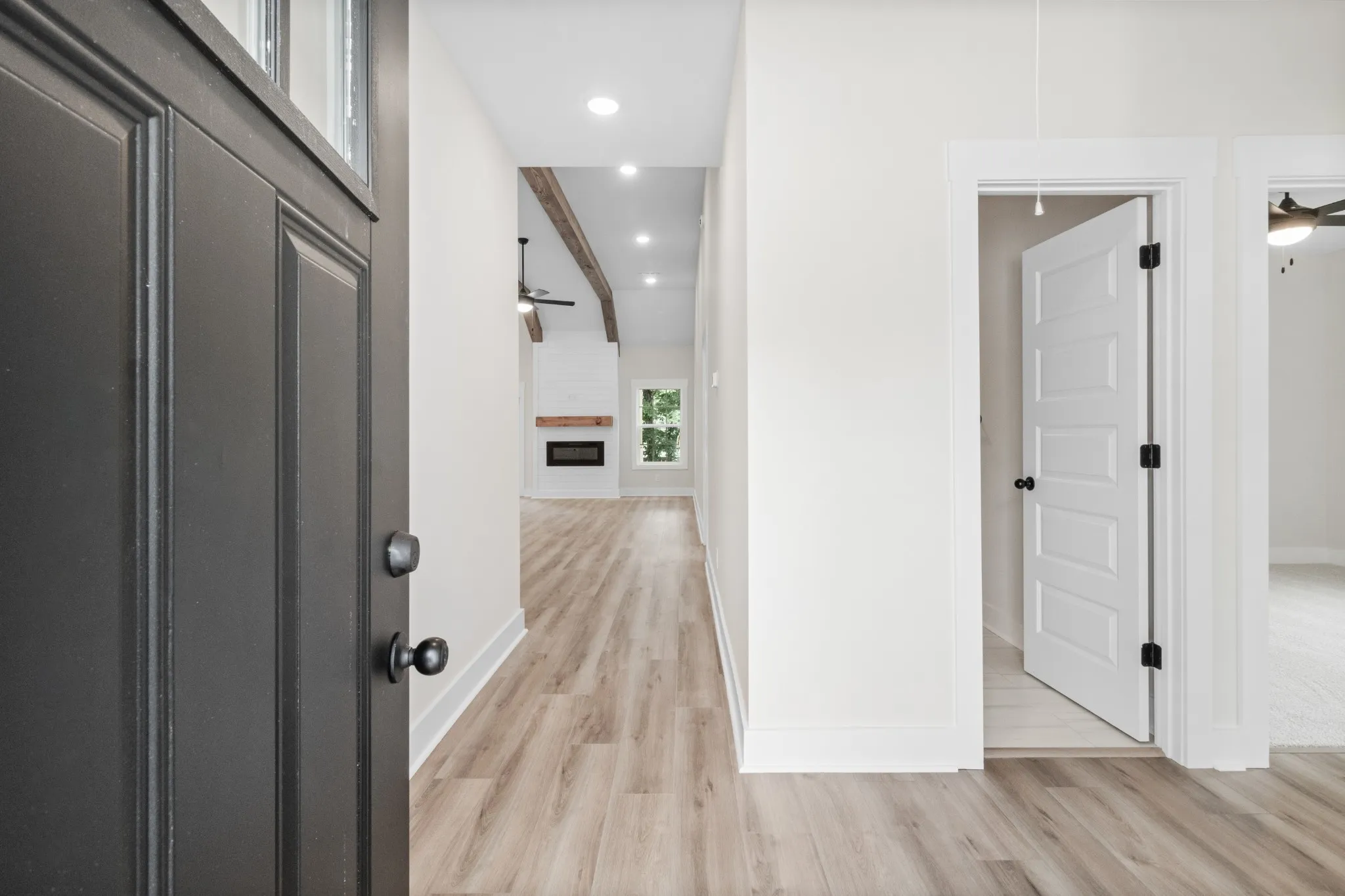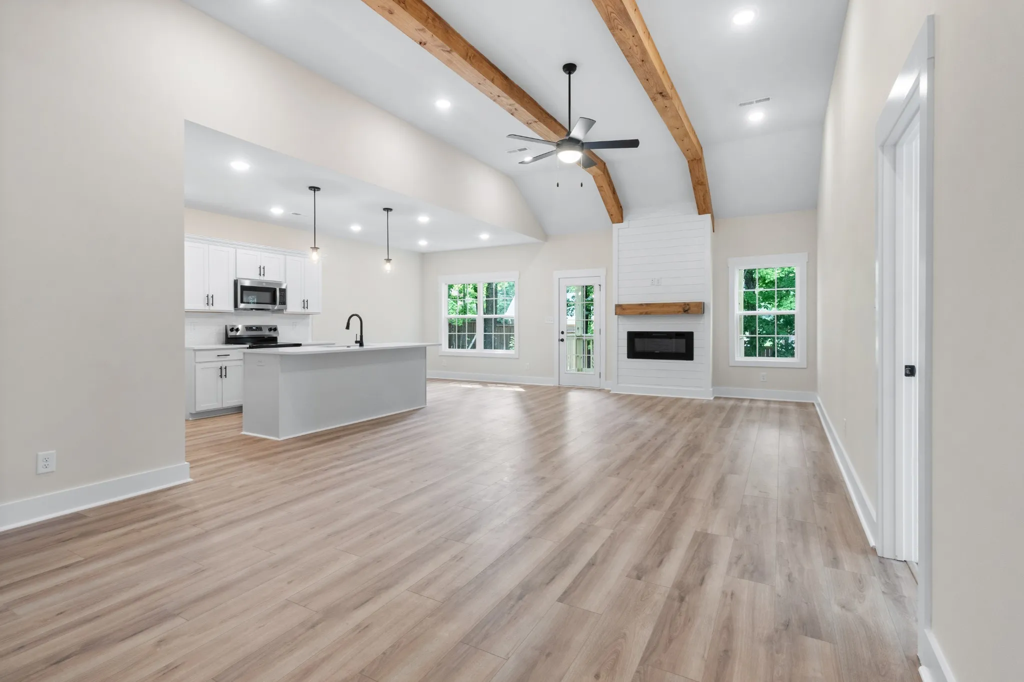 She’s demure and mindful! SHE HAS CONCESSIONS!! Appraised for $330,000! Complete and ready to move in! This home has custom cabinets, quartz countertops, luxury vinyl flooring throughout with tiled bathrooms and carpeted bedrooms. Let’s not forget this home has an electric fireplace that is encased with shiplap! Not to mention the rafters in the living room to add a custom feel along with the sliding barn door to the walk-in pantry/utility room! *If accent color isn’t something buyers want, we will paint the wall to match the rest of the house* This home is the last one to be built on this side of the road, so no left neighbors! This subdivision is in the epicenter of town and easy access to Fort Campbell and to Wilma Rudolph.