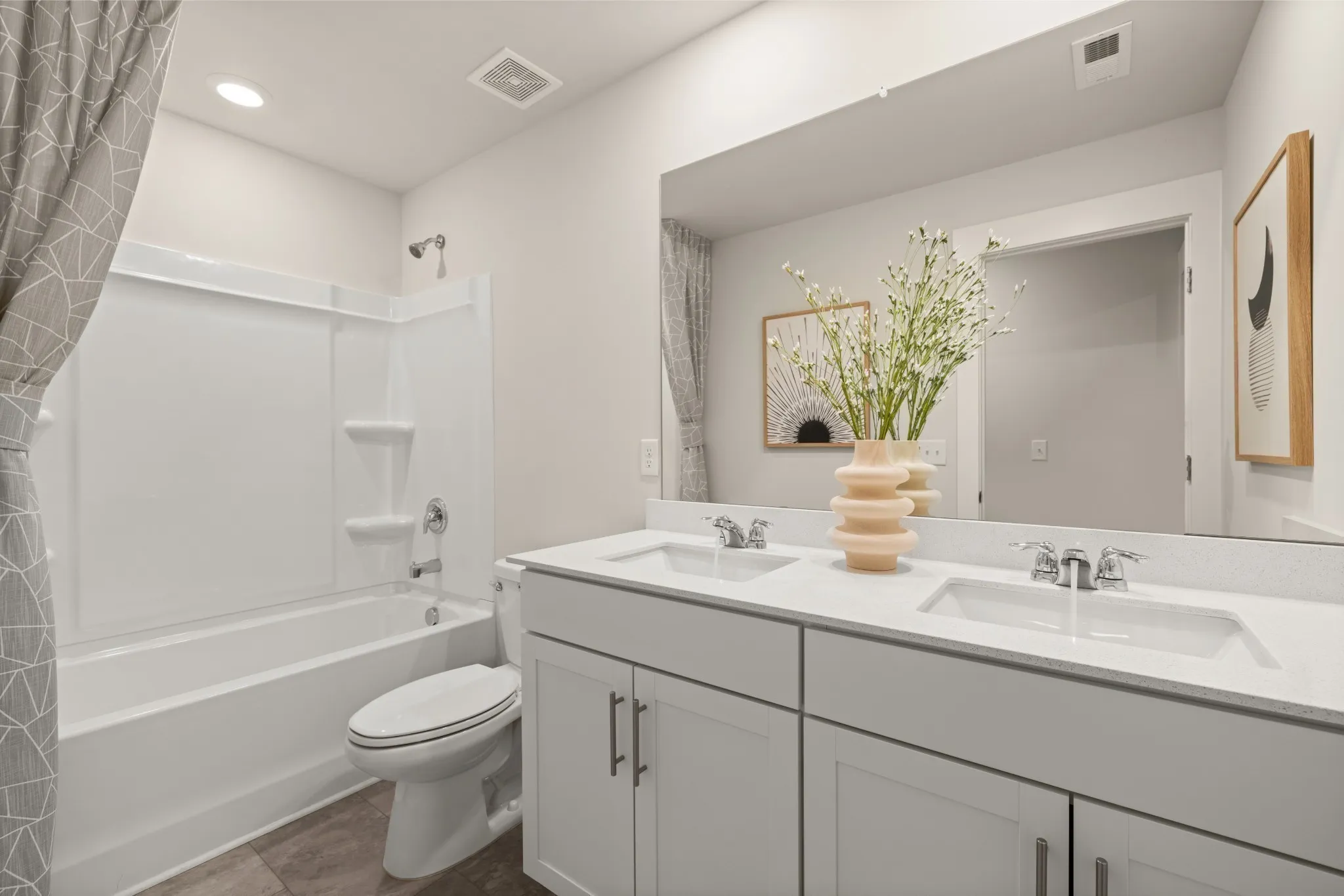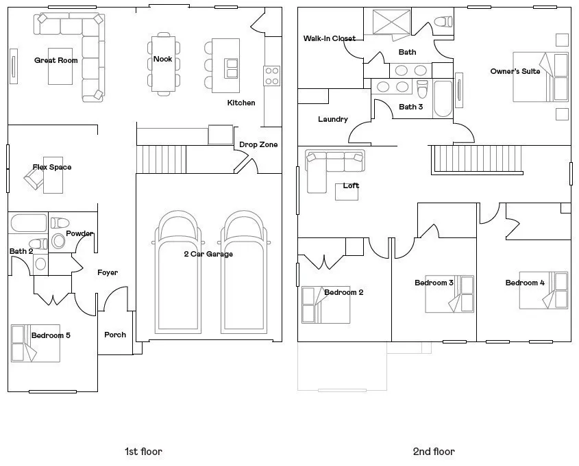 The Kingston features 5 bedrooms, 3.5 baths, large flex space and large loft. Some of the wonderful features of this home include shaker cabinets and plenty of them, quartz countertops, backsplash in kitchen, luxury hard surface flooring, owners suite w/ walk in tile shower, smart home features including a Ring Security system, smart thermostats/lock, 2″ blinds throughout home, and much more! Vineyard Grove is a master planned community with sidewalks throughout, wonderful amenities including a brand-new pool plus come see our beautiful ponds!