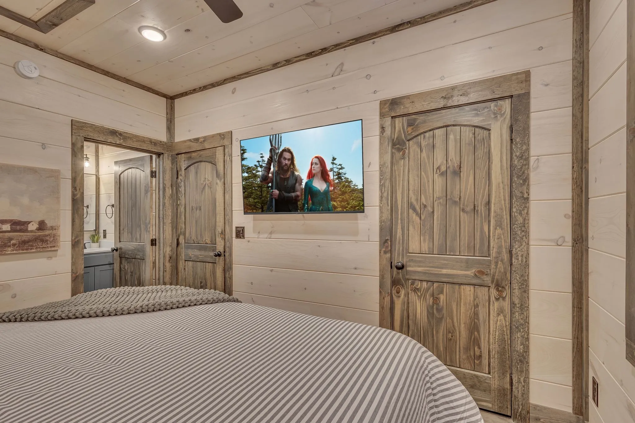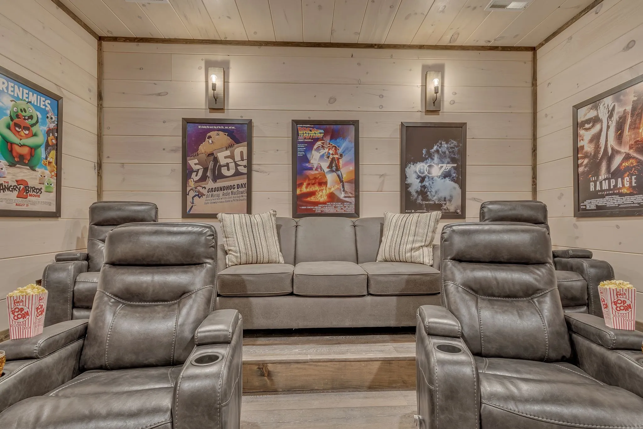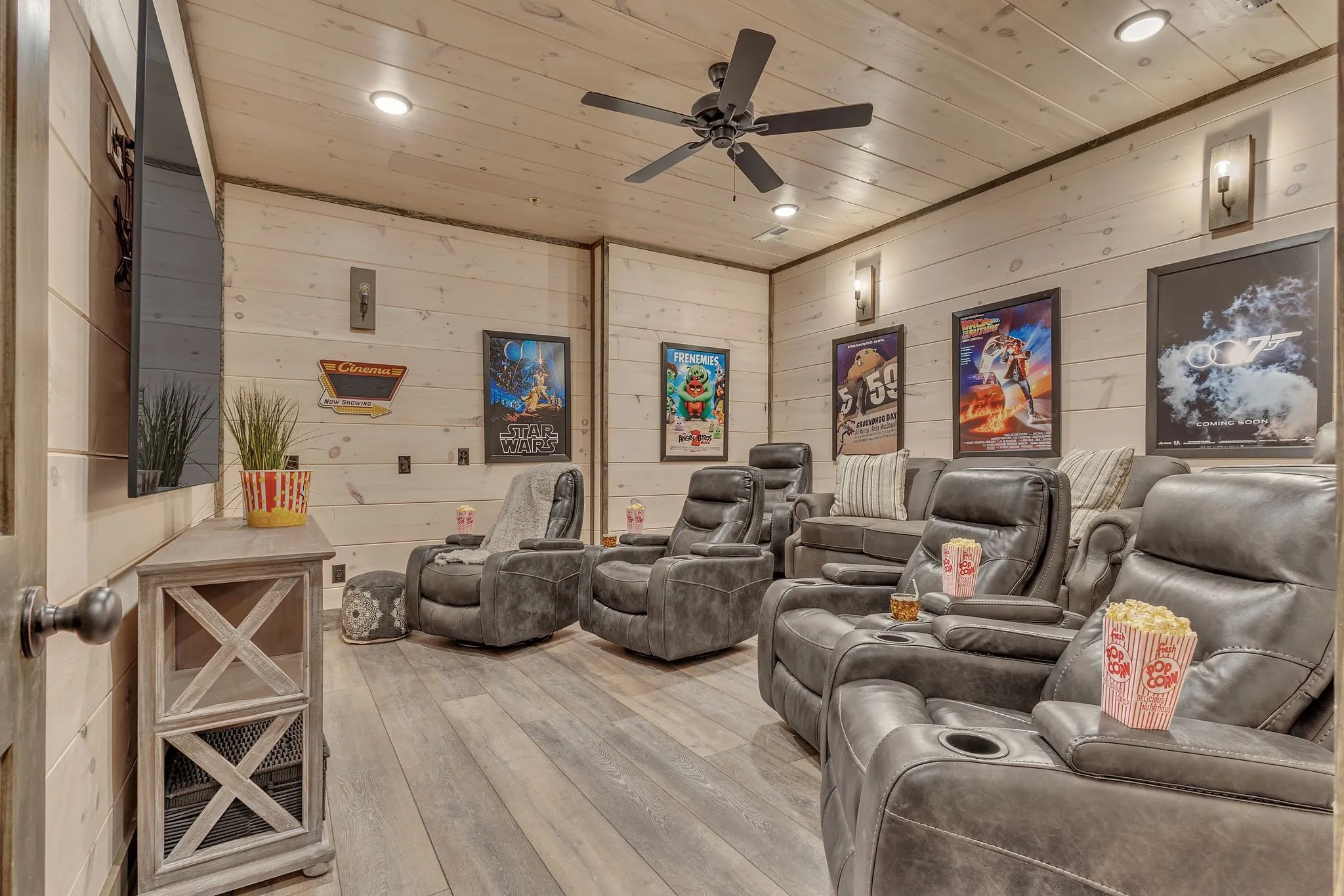 BRAND NEW CONSTRUCTION! 5-BEDROOM CABIN W/ INDOOR PRIVATE POOL and OUTDOOR HOT TUB & FIREPIT AREA w/ stringed twilight lighting. A modern, luxurious twist on a traditional cabin in the Great Smoky Mountains. Located in the heart of Pigeon Forge, this cabin is only 1 mile from The Island, Ripken’s Baseball Stadium& The Parkway’s attractions and 4 miles down the road to Dollywood. A total of 5 bedrooms, all of which have private bath en suites, along with 1 add’tl half bath! Two Master Bedrooms located on the main floor with three additional bedrooms situated on the 2nd floor. Let the fun begin! Amenities abound…take a swim in the private pool, soak in the hot tub, or enjoy a movie night in the theater room. Cabin conveys fully furnished with fully-stocked kitchen and is turnkey ready for overnight short term rentals. NO MANAGEMENT RESTRICTIONS.Start (or expand) your investment real estate portfolio with this professionally-decorated, contemporary version of a traditional cabin.