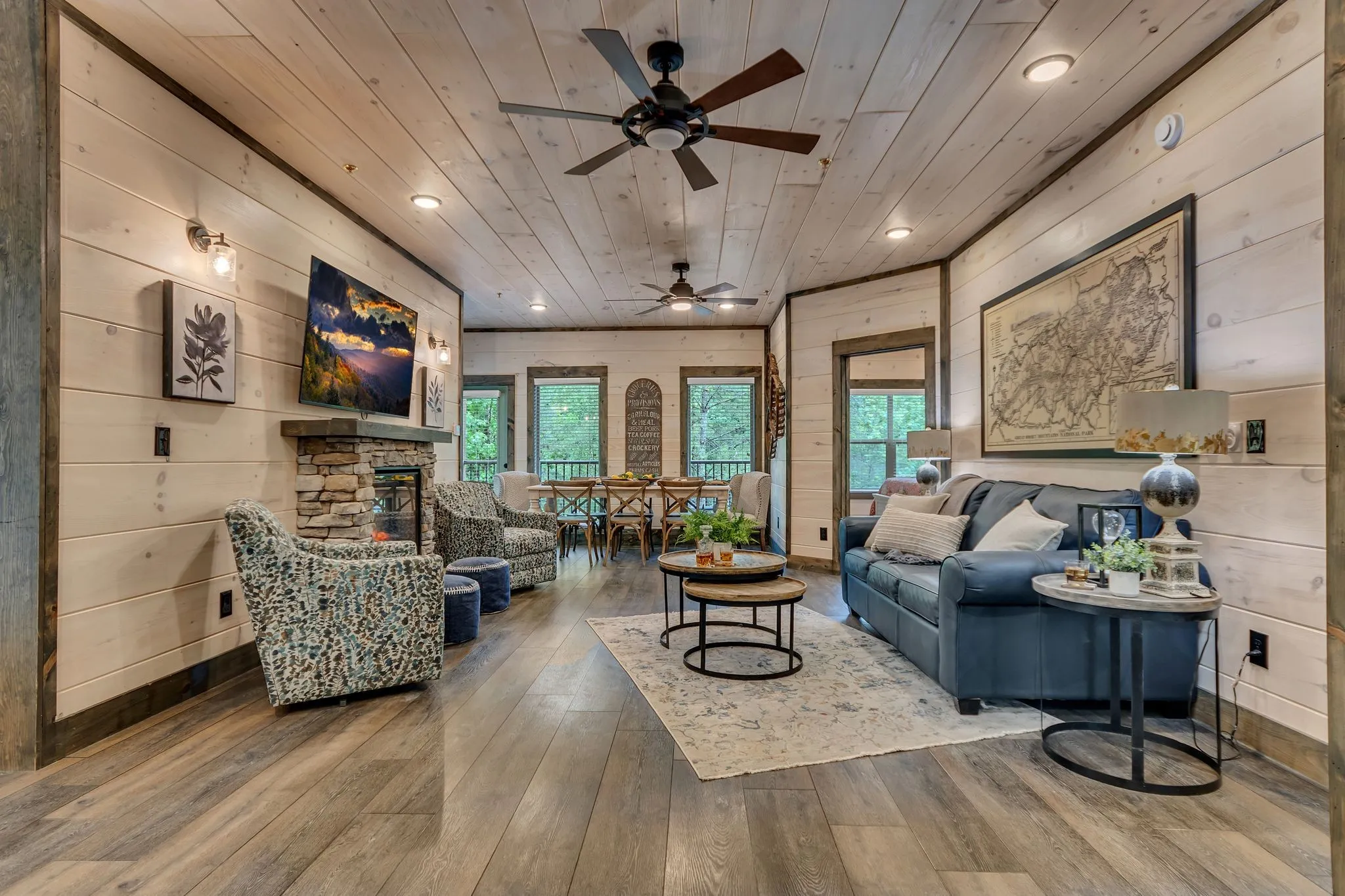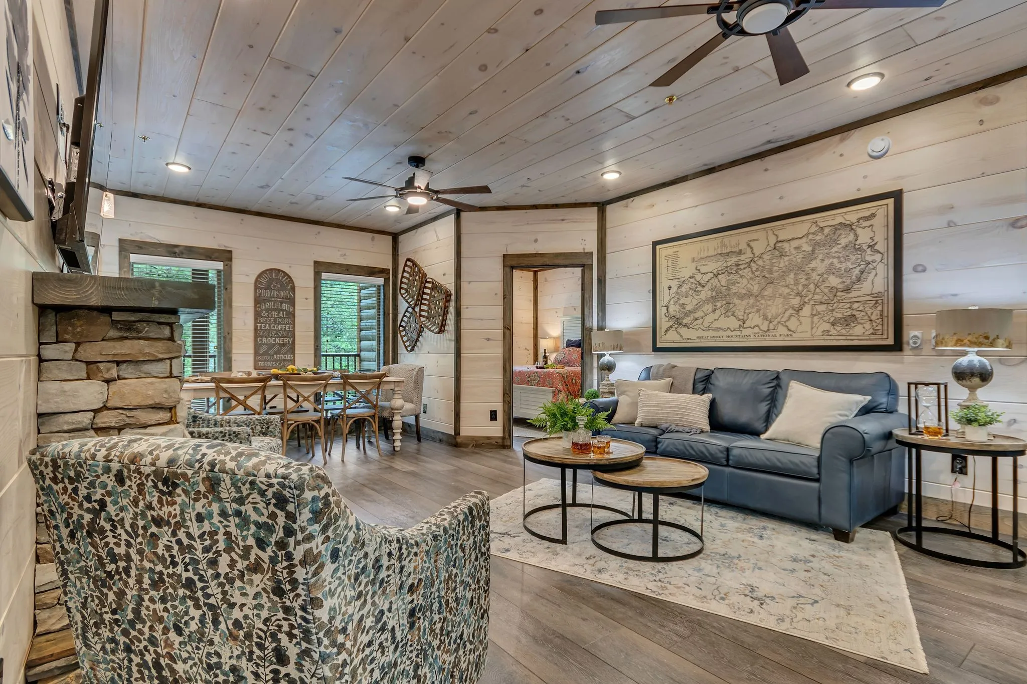 BRAND NEW CONSTRUCTION! 5-BEDROOM CABIN W/ INDOOR PRIVATE POOL and OUTDOOR HOT TUB & FIREPIT AREA w/ stringed twilight lighting. A modern, luxurious twist on a traditional cabin in the Great Smoky Mountains. Located in the heart of Pigeon Forge, this cabin is only 1 mile from The Island, Ripken’s Baseball Stadium& The Parkway’s attractions and 4 miles down the road to Dollywood. A total of 5 bedrooms, all of which have private bath en suites, along with 1 add’tl half bath! Two Master Bedrooms located on the main floor with three additional bedrooms situated on the 2nd floor. Let the fun begin! Amenities abound…take a swim in the private pool, soak in the hot tub, or enjoy a movie night in the theater room. Cabin conveys fully furnished with fully-stocked kitchen and is turnkey ready for overnight short term rentals. NO MANAGEMENT RESTRICTIONS.Start (or expand) your investment real estate portfolio with this professionally-decorated, contemporary version of a traditional cabin.