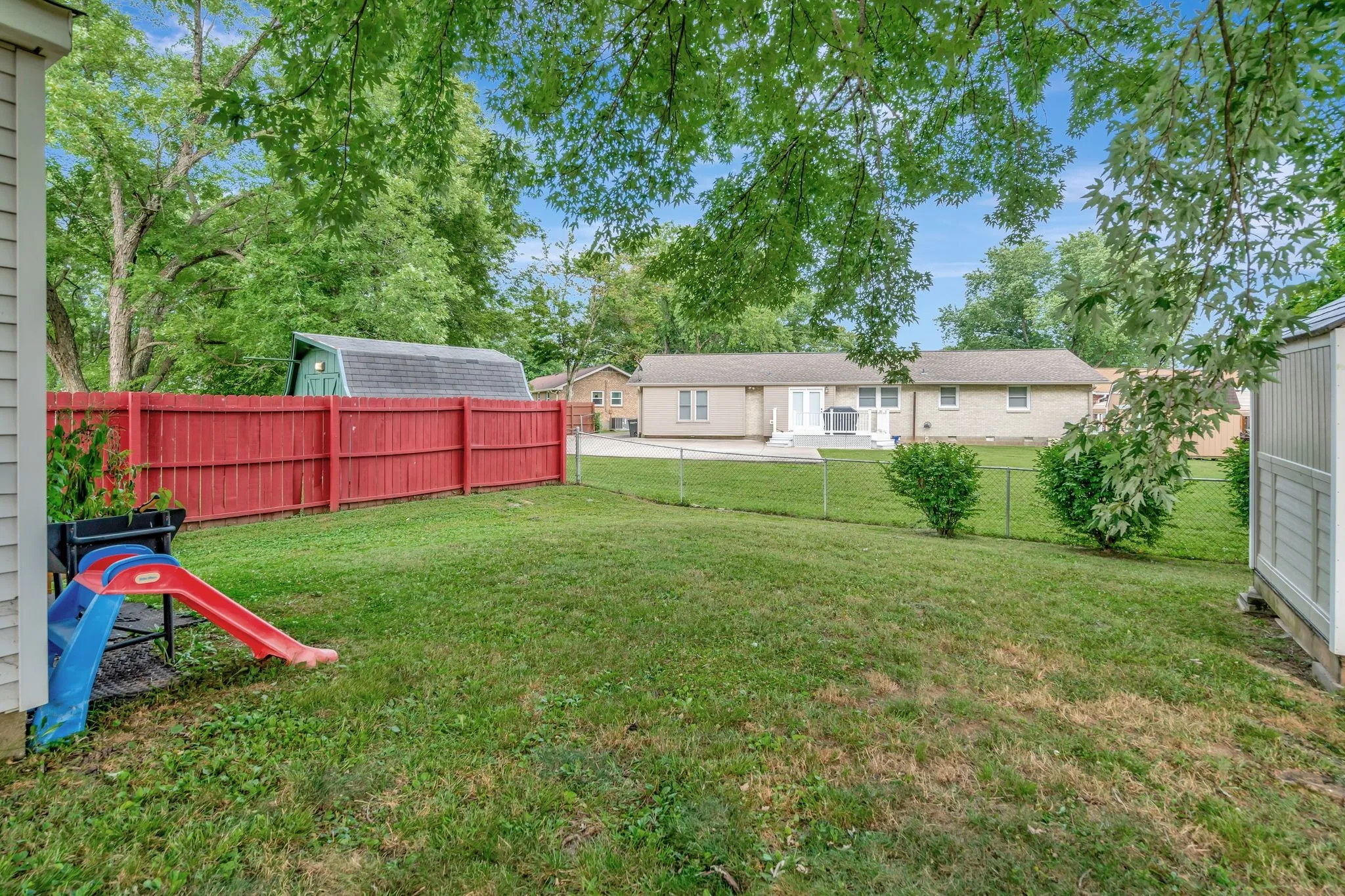 "LongDescription" => "Backyard area. Fully fenced. Wood fence to the right and left, and chain length along the back side."