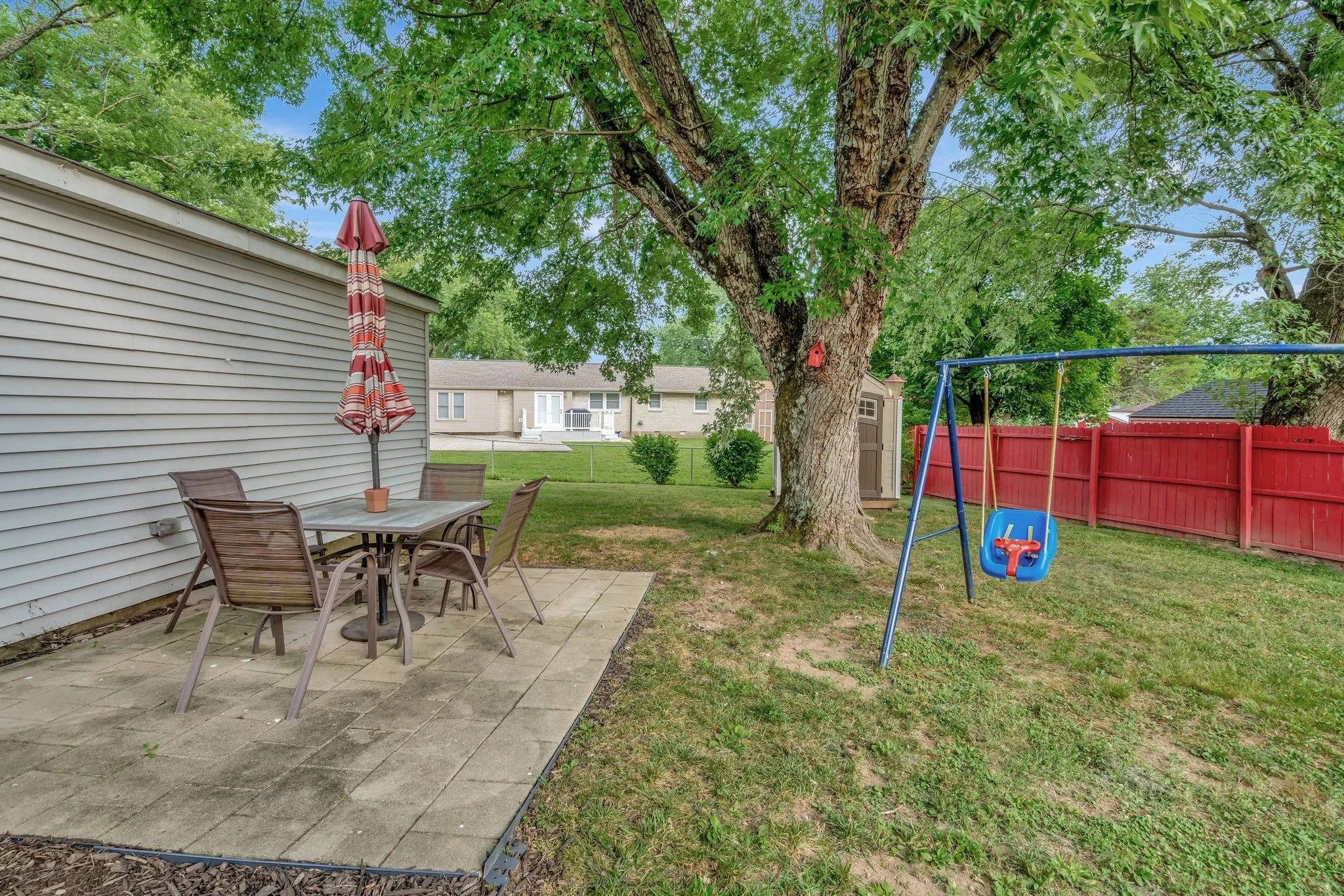 "LongDescription" => "Patio table area. Beautiful mature tree for shade. Also a small shed behind the tree, which will stay with home, for added outdoor storage."