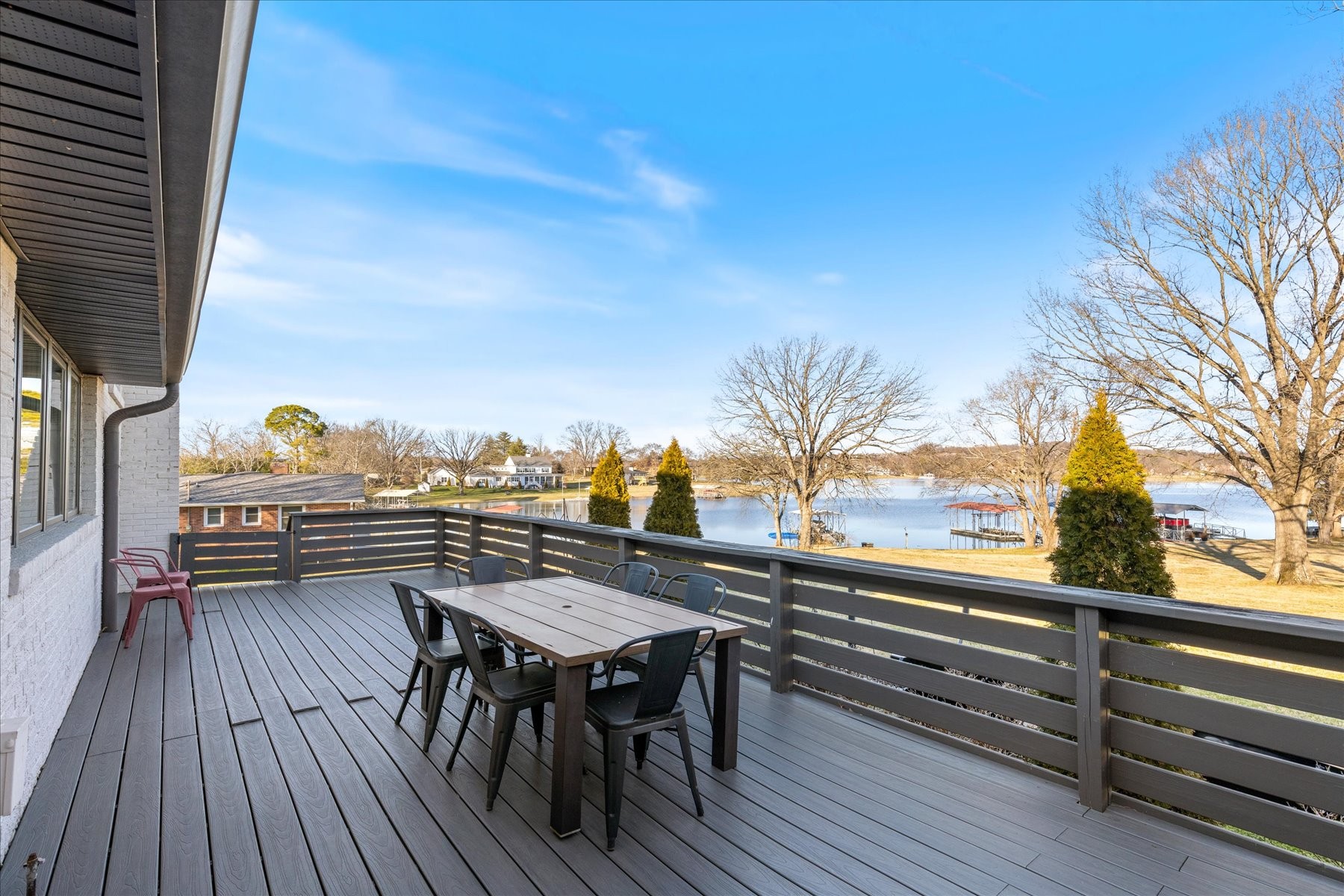 Immerse yourself in lakeside living with this fully furnished dream home! Featuring four bedrooms and three bathrooms, the house exudes warmth and charm. Two living rooms offer distinct spaces for fun – one with a foosball table, the other with a shuffleboard table. The master suite provides a serene escape. The modern kitchen, complete with a wine cooler and gas stove, is a culinary haven with abundant counter space and natural light. Garage and driveway parking ensure convenience. Smart TVs in living rooms and master suite, along with a full-size washer/dryer, add practicality. Beyond the features, this home invites a lifestyle of joy and connection. Picture gatherings on the lakeside deck, creating memories against the backdrop of stunning sunsets. It’s not just a house; it’s a canvas for life’s cherished moments. Ready to turn this fully furnished lake home into your personal haven?
