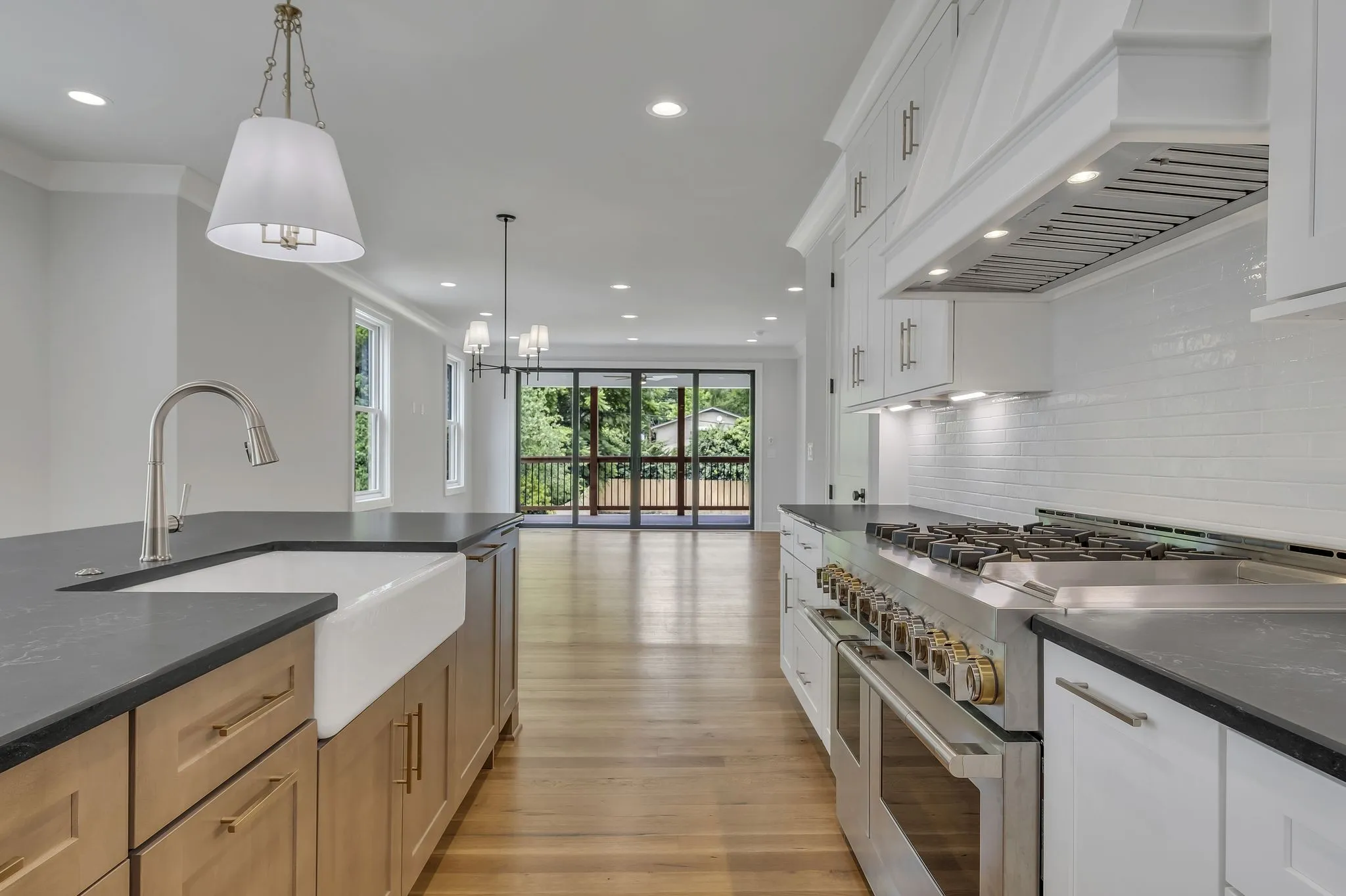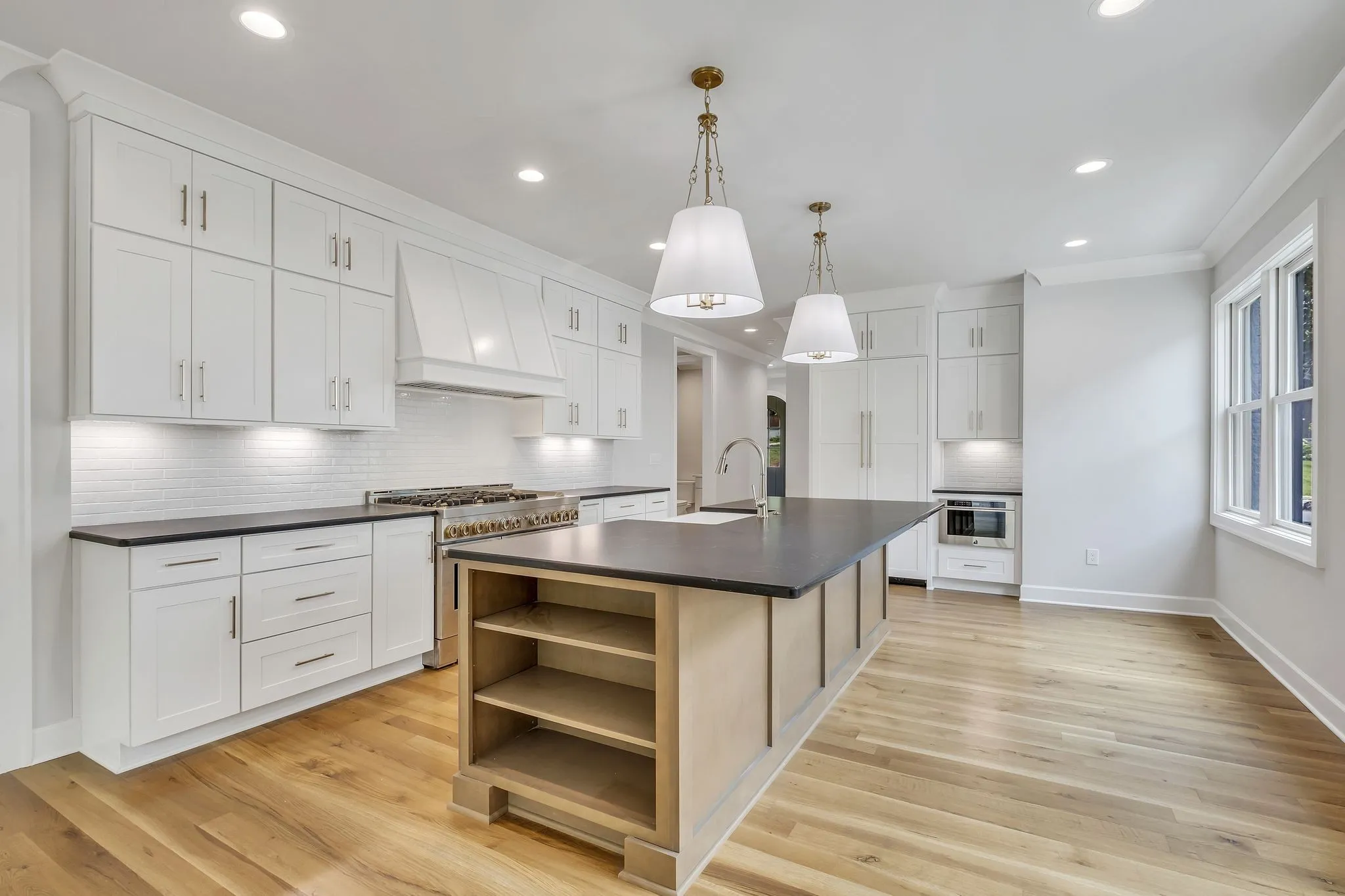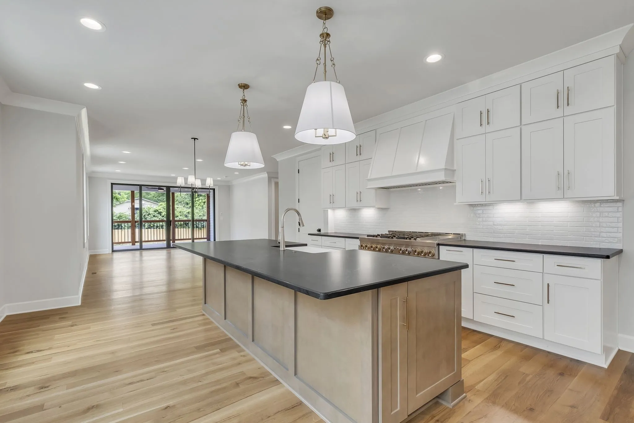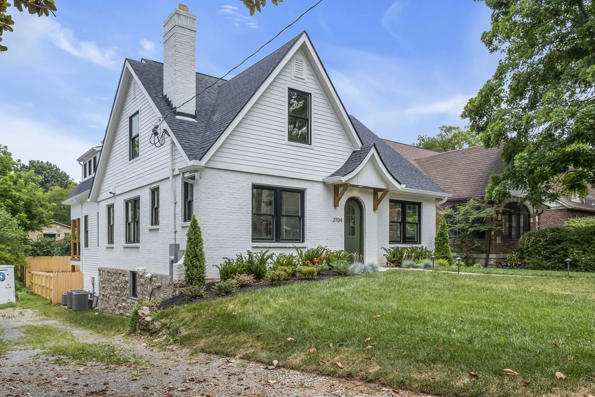 Charming Tudor Totally Renovated to the Studs and Expanded. This Home has Character. Open Floor Plan with Hardwood Floors. Chef’s Kitchen with Oversized Island Open to Dining and Great Room with Slider Doors to Covered Porch. Primary Suite on Main with Luxe Bath and 2 Large Walk-In Closets. Second Ensuite Bedroom on Main Level. 3 Bedrooms, 2 Baths Up and Large Rec Room with Beverage Center. Terrace Level with Den and Exercise/Office/Flex Space. 2 Car Garage with Storage. Oversized Rear Concrete Parking Area with Decorative Inlay, Bridge Over Small Creek to Large Private Fully Fenced Back Yard. Minutes to Excellent Schools and Colleges, Green Hills Shopping and Dining, and West End Avenue.
