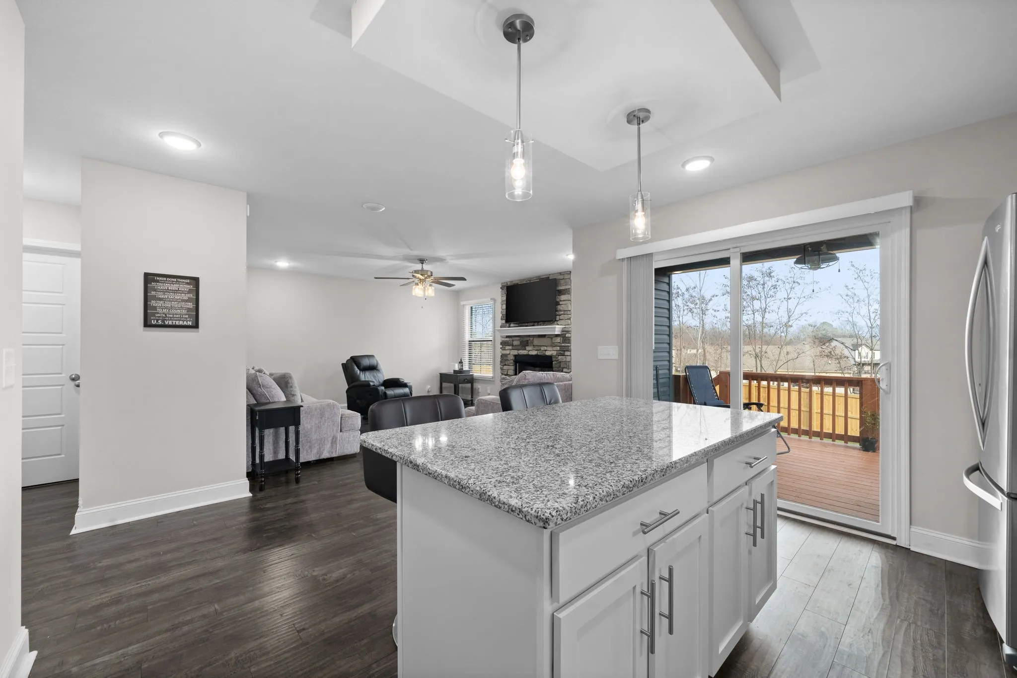 Upgrades! Upgrades! Upgrades! Don’t miss this stunning well-maintained modern 3 bedroom home in the middle of Clarksville! Custom touches throughout the home: stainless steel farmhouse sink in the kitchen, 3 door upgraded fridge, concrete coated front porch and garage floor, and brand new privacy fence. Nest thermostats keep your home running efficiently! Carpet has just been removed from the bedrooms and continuous flooring has been seamlessly installed. Master bathroom has a huge spa-like tiled shower and master closet is enormous.