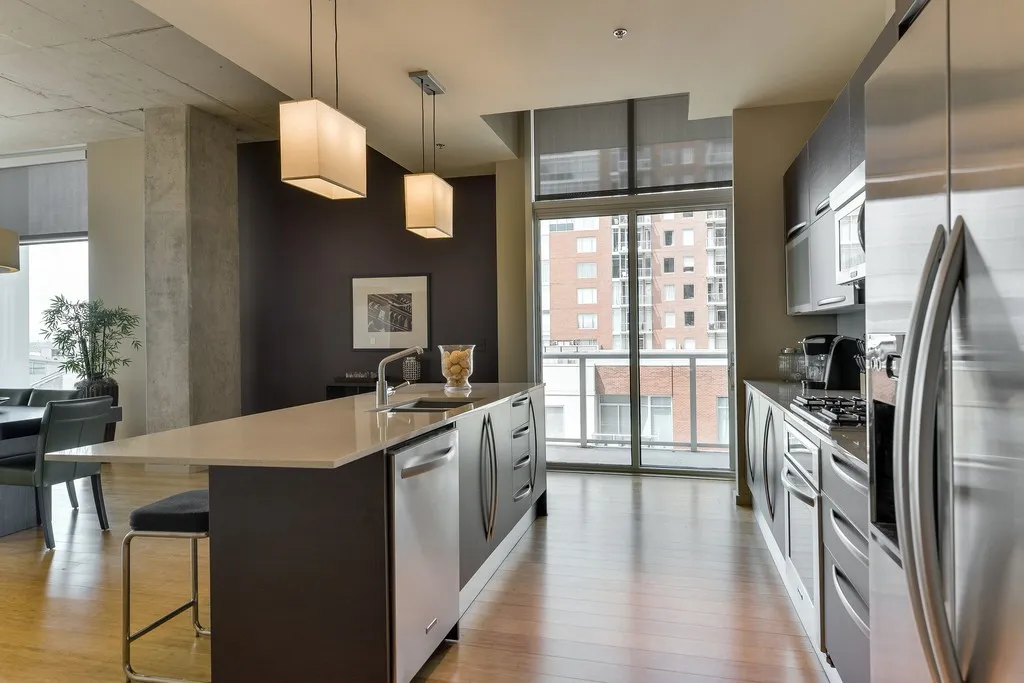 Great location in the heart of the Gulch. Close to Amazon headquarters, downtown, Vanderbilt, St. Thomas Hospital and more! Great designer appointed corner suite in the Gulch! Great view of the Gulch, terrace and large patio, just a few doors from the Pool and Resident Lounge! 2 parking spots, Italian cabinetry and large closet. Pets case by case with $300 fee. Apply on company website. Application fee $40 per adult