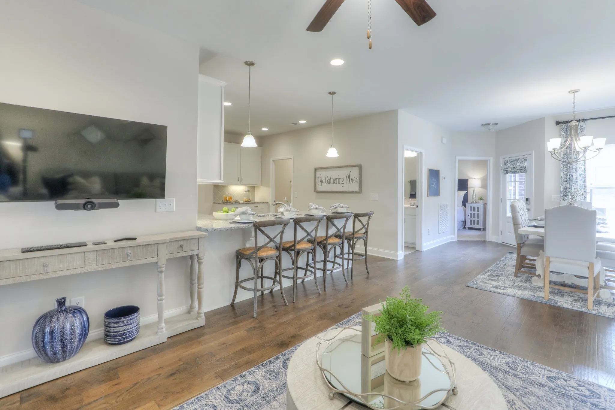 Save big on the BRAND NEW home you want NOW! This month only,4.99% FHA and VA fixed 30-year interest rates OR $15,000 paid closing costs, with preferred lender and title, terms and conditions apply, subject to credit approval. The popular Waverleigh Courtyard Cottage has inviting sunroom. 3 beds, 3 baths, arched openings, White cabinets, carpet stairs, hardwood in main areas, Open Kitchen With Eat-On Bar, looking into the open dining room and great room. Spacious kitchen with ample countertop and cabinets, with corner pantry. Oversized laundry room. Private, Gated Courtyard for outdoor enjoyment. This home will complete in February 2024. Designer finishes – this home has them all – quartz countertops, white cabinets, pendant lights, tile backsplash. New Construction, resort-style community, close to everything! Maintenance-free, and enjoy the resort-style amenities in the community. Peace of Mind with our 1 – 2 and 10 Year Warranty included w/home purchase.