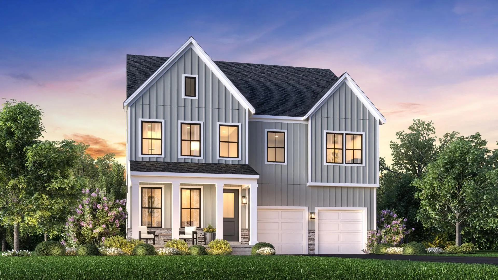 Choose your homesite. Choose your elevation. The expertly crafted Donegal boasts a seamless, open-concept floor plan that complements modern living with luxury touches. A charming foyer and flex room lead into the impressive great room, central to a casual dining area and the stunning kitchen that features an oversized center island with breakfast bar, sizable pantry, and plenty of counter and cabinet space. The primary bedroom suite is secluded off the great room, complete with dual walk-in closets and a serene primary bath complete with separate vanities, a luxe glass enclosed shower, linen storage, and a private water closet. Adjacent to a versatile loft on the second floor are the secondary bedrooms, one with a private bath, and two with walk-in closets that share a hall bath with dual-sink vanity. The community model home is open 7 days a week. Photos and/or renderings are for representational purposes and floorplans may vary in elevation and size.