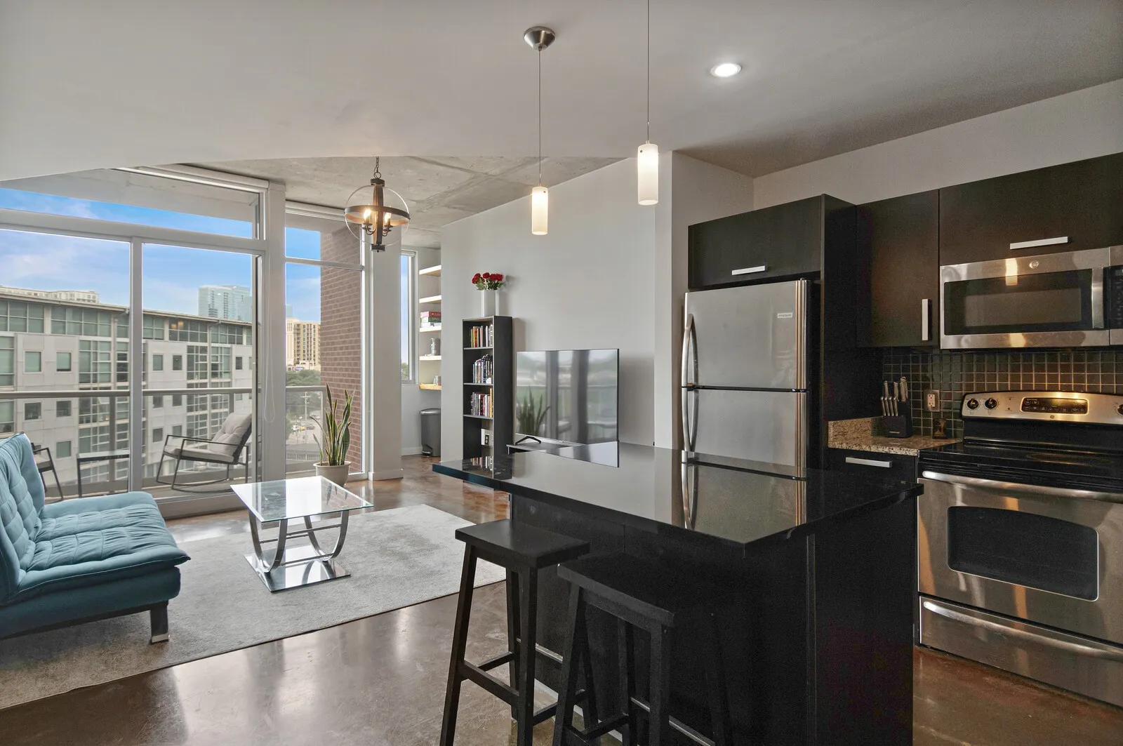 1-bedroom, 1-bathroom, GULCH-facing unit for RENT starting OCTOBER 1, 2023. A new refrigerator and disposal have been installed in the kitchen. The living room is adorned with floor-to-ceiling windows, allowing natural light to flood the space. The open-concept layout creates a seamless flow between the living, dining, and kitchen. The comfortable bedroom is a cozy sanctuary for relaxation. In-unit washer and dryer are included. Step outside to your private balcony, a perfect spot to unwind over the city. This property is part of the ICON offering an array of amenities, including 2 refreshing pools. The full building is undergoing a refresh complete with new paint. Enjoy the perks of urban living with direct access to the Gulch and downtown Nashville.
