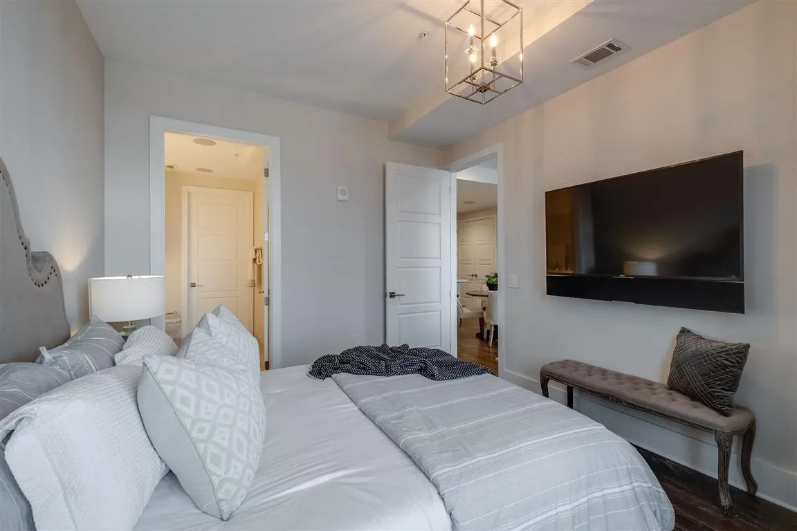 Concession of $3000. $1500 each off first two months rent. Live in the highly sought after City Lights! With Views to die for!!! 2BR/2BA offers luxury amenities including concierge service, state of the art fitness & yoga room, pool, and outdoor living spaces overlooking downtown Nashville. A rooftop lounge and dog park. Unit 511 boasts a beautiful modern entertainer’s kitchen, mounted TV’s, stylish lighting, walk in closets, Automated Lutron Window shades, two assigned garage parking spaces and a balcony. Pets okay