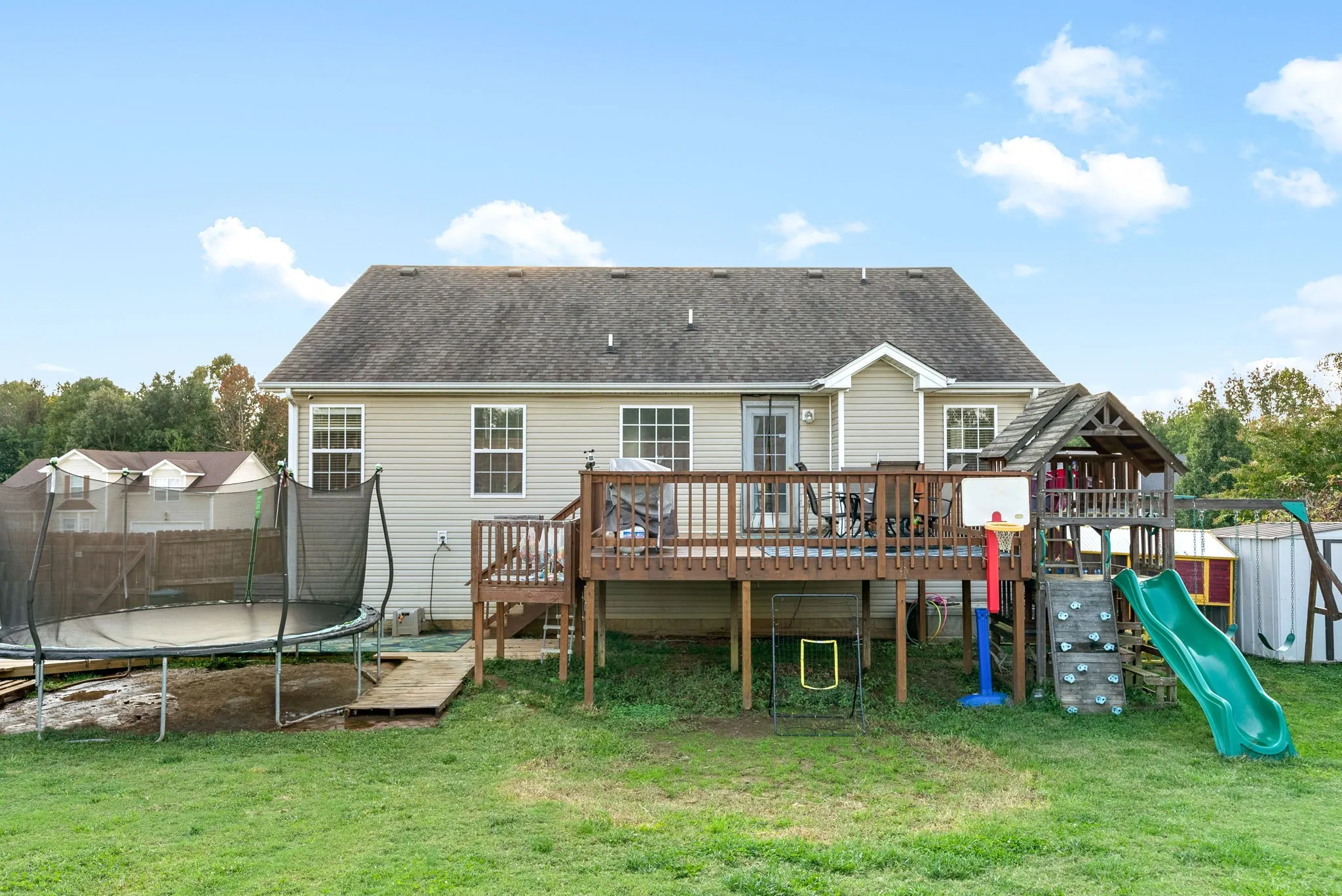 SELLER WILL PROVIDE A CARPET CREDIT WITH ACCEPTABLE OFFER! Estimate from Quality Floor Covering on hand. COUNTY TAXES ONLY! This home is sure to meet all of your needs. This beauty features a huge fenced in backyard and a large deck perfect for hosting cookouts and outdoor events. Tall ceilings. Bedrooms upstairs and down. This home has ample space and storage. The location is convenient to the up and coming downtown Clarksville, Fort Campbell, shopping, and dining. Less than and hour to Land Between The Lakes National Park. SELLER WILL PROVIDE A CARPET CREDIT WITH ACCEPTABLE OFFER!