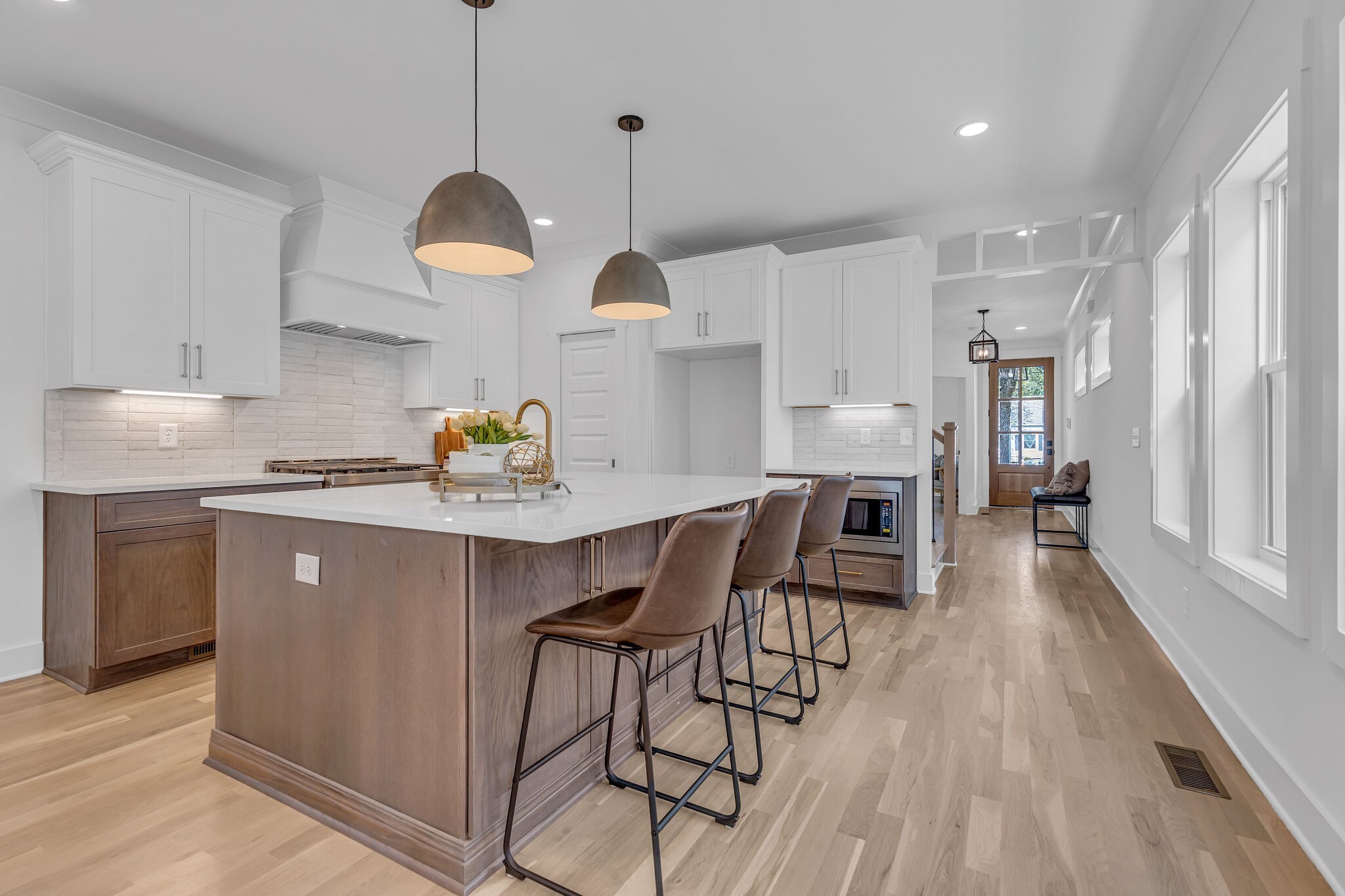 Captivating new construction in East Nashville! This exquisite 4-bedroom, 3-bath home boasts a breathtaking open-concept layout that seamlessly blends style and functionality. Gleaming hardwood floors span the entire residence, creating a warm and inviting ambiance. Enjoy cozy evenings by the gas fireplace, and delight in the elegant quartz counters and gas range in the kitchen. The walk-in pantry offers ample storage, while coffered ceilings add a touch of sophistication to the living spaces. Retreat to the primary bedroom w/ vaulted ceilings, providing a serene haven. Outside, a 2-car parking pad and a fenced-in yard offer convenience and privacy. Plus, revel in the ease of being just steps away from East Nashville’s finest restaurants, making All Hardwood Floors, quartz counter tops, 36″ gas range and hood vent.