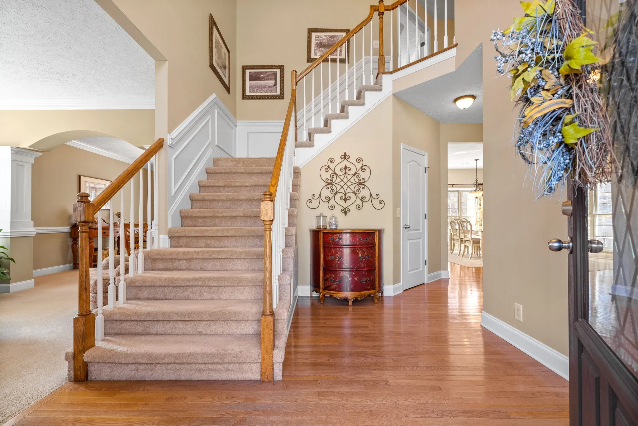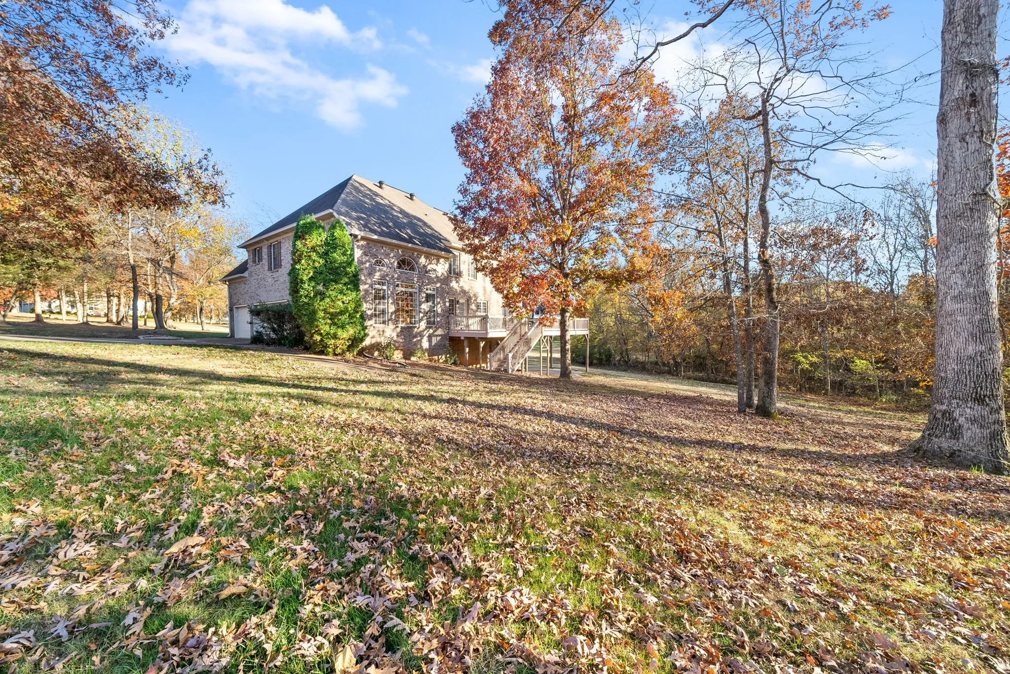 +"PublicRemarks": "Exceptional ALL Brick, Custom-Built Home nestled on a beautifully wooded 1+ acre corner lot on Eastland Green Golf Course! Easy Access to I-24 (Exit 11 or Exit 19) for commuters to Nashville or Hopkinsville. Lovely 2-story entry foyer, main floor guest suite w/private bath, Open kitchen & family room with vaulted ceiling & gas log FP. Kitchen features an island, pantry, lots of beautiful white cabinets with granite counters, formal living & dining rooms and beautiful 'real' hardwood flooring, plus tons up upgraded crown molding & trim. Upstairs boasts 4 large bedrooms with a spectacular primary suite w/sitting area featuring a gas log FP & built-in bookcases, plus a flex room for office/workroom/playroom...you decide. All Bedrooms have private bath. 3-car garage on main level, plus huge 4th car (12x30) in basement. The basement has a wonderful rec room (great for watching football/entertaining), kitchen, workout area, 5th full bath, plus tons of storage. HUGE oversized deck and No HOA."