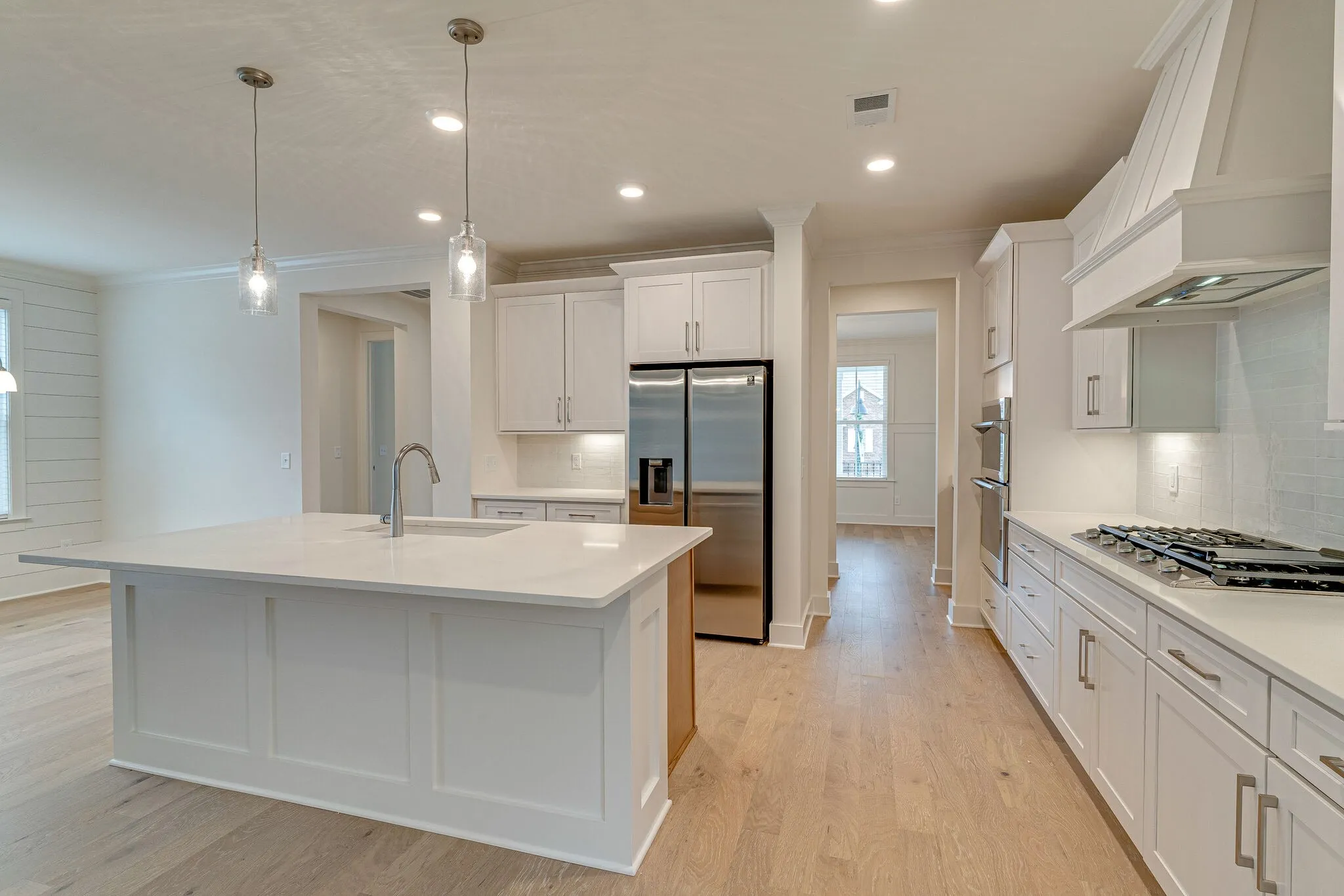 One Story Living! Guest space upstairs with 4th bedroom, bath and bonus room. Huge storage. Formal dining room, butlers pantry, 8′ interior doors, custom shelving, upgrade appliances, 2 brick fireplaces, Primary bedroom has huge bathroom with large tiled shower, freestanding tub, separate vanities and freestanding tub. The finishes are beautiful in this home. Blinds and refrigerator are included. Check out the photos.