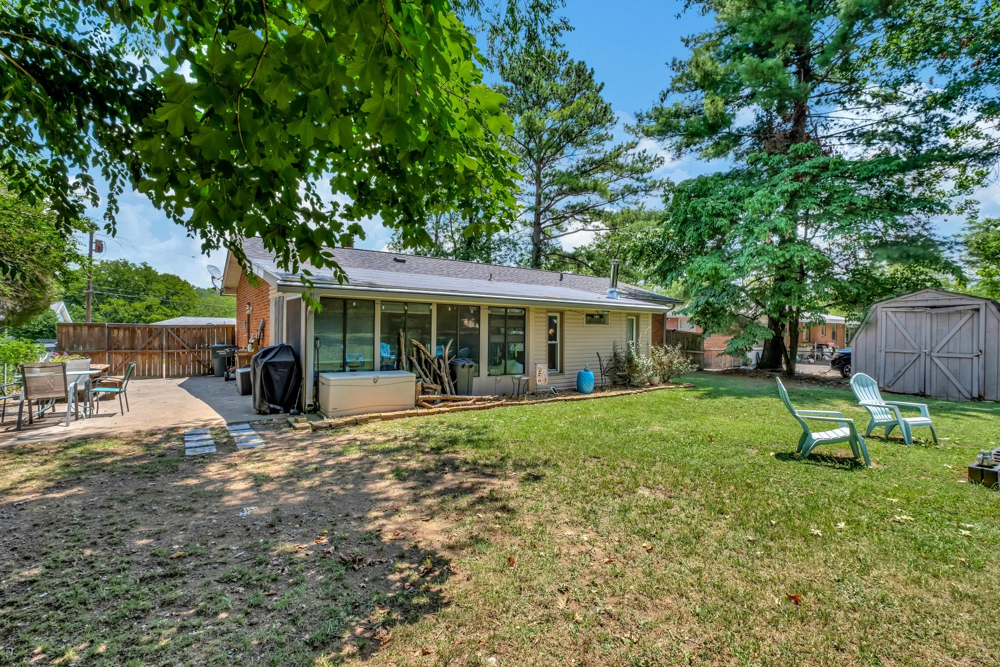 Price adjustment and $5,000 towards Buyer’s Closing Cost! Updated charmer in the popular city of Hermitage just East of downtown Nashville! Best of both worlds, quaint neighborhood but close to local shopping, restaurants, Old Hickory Lake and the airport. Natural wood floors, wood-burning fireplace, built-in diningroom cradenza and office bookshelves and desk. Additional heated and cooled sunroom and rec area . All bathrooms updated. Kitchen floor updated. New roof in 2020, new HCAC, water heater and electrical 2023. All kitchen appliances new as in last 2 years. Back yard is fully-fenced with an established garden, mature trees and addtional shed for storage.