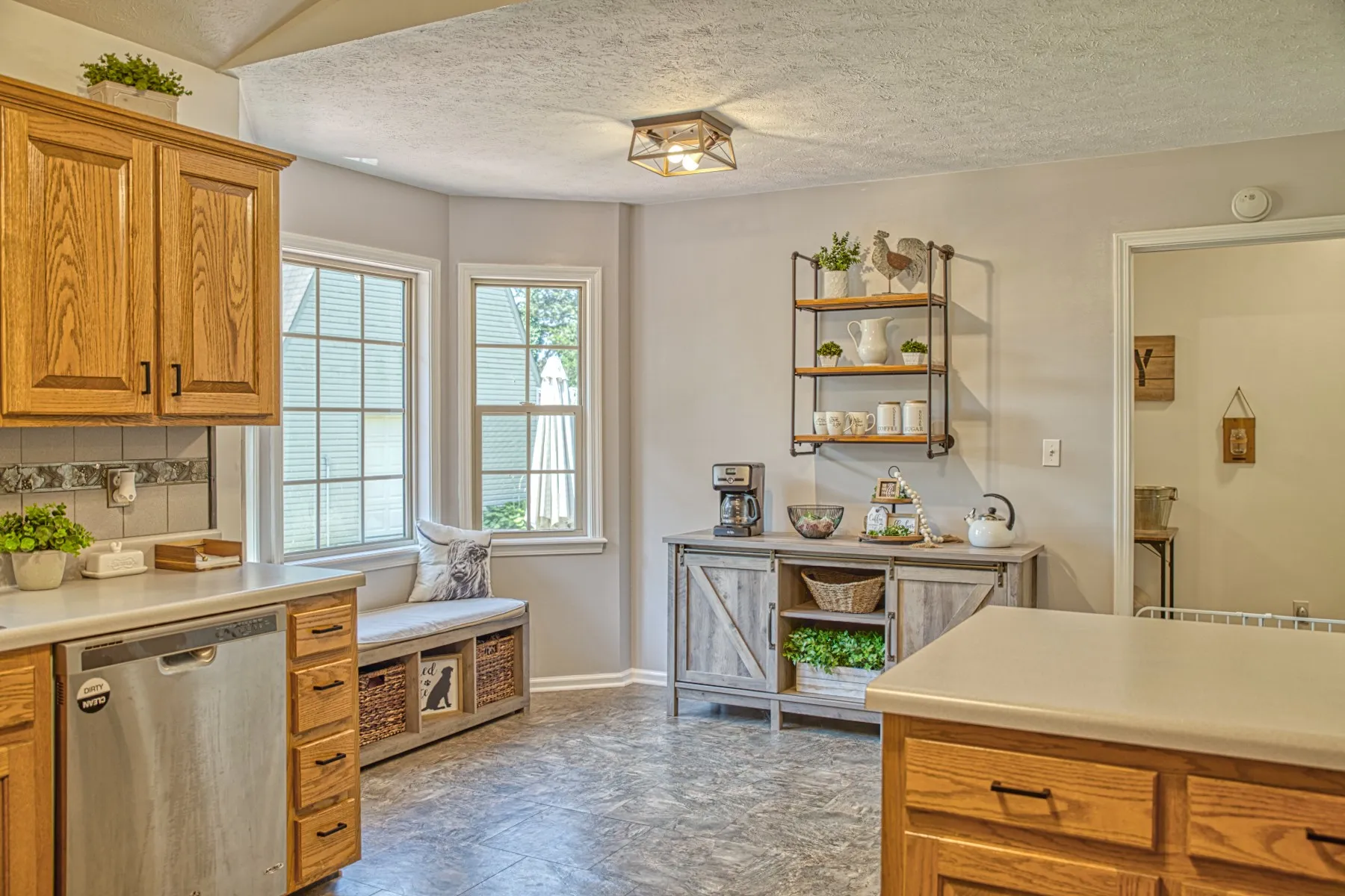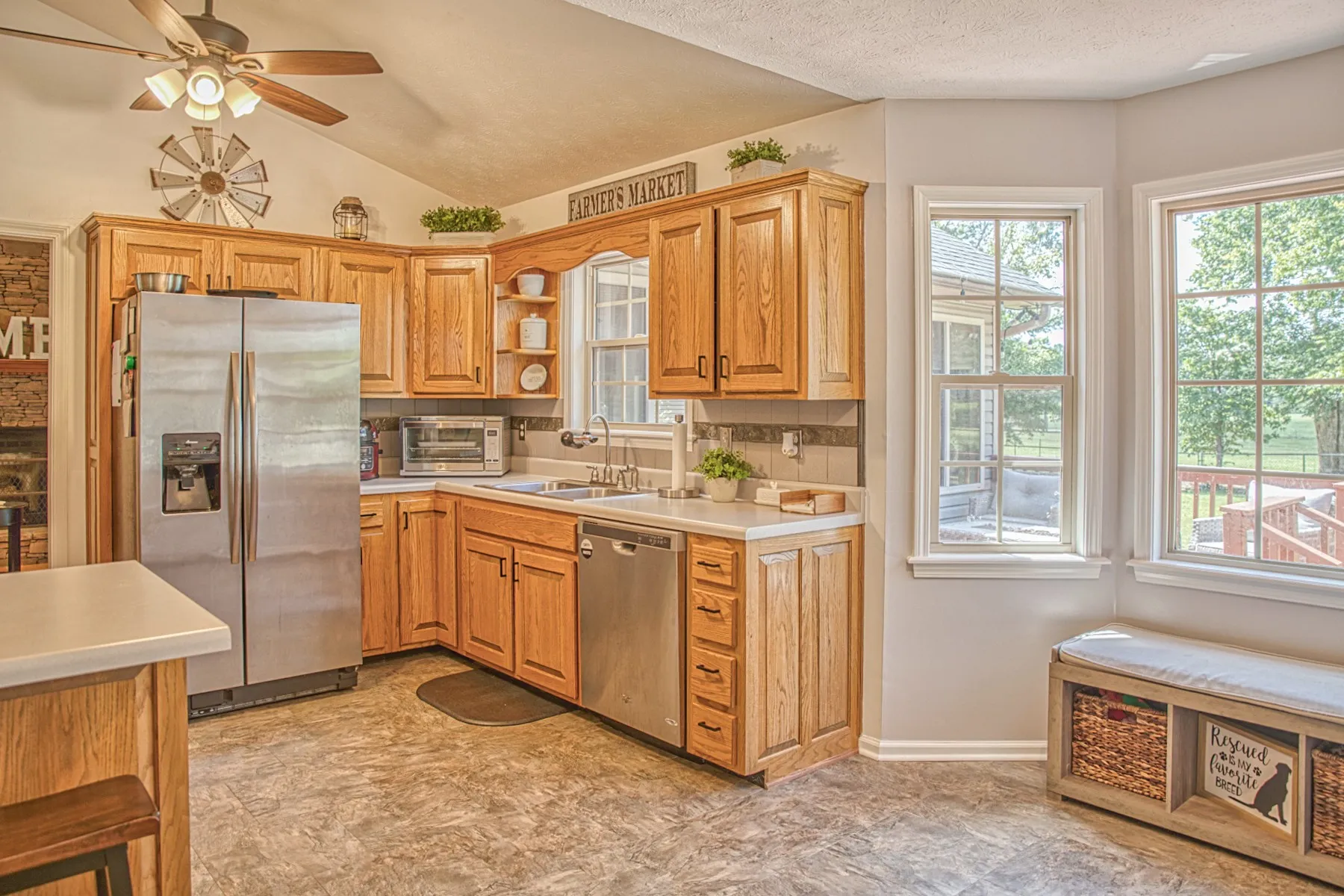 Experience the ultimate combination of convenience & serenity with this charming 3BR, 2BA brick home with 1954 sq. ft. Nestled in a quiet neighborhood, yet easily accessible to Hwy 111 & I-40, this home offers the perfect blend of comfort & connectivity. Enjoy vaulted ceilings, pretty hardwood floors, & a beautiful, stacked stone gas fireplace in the family room, perfect for cozy nights in. The formal dining room & eat-in kitchen provide ample space for entertaining, while the primary bath with walk-in tile shower & spacious walk-in closet offers a luxurious retreat. Step outside onto the deck or patio & enjoy the peaceful farmland views of the fenced backyard, complete with a 15×17 sunroom that you can enjoy all year long. Additional features include an attached garage + a detached garage with upstairs storage, flex space or workshop, making this home the perfect choice for those seeking a tranquil oasis with all the amenities. New roof, water heater 2022. Come & make it yours today!