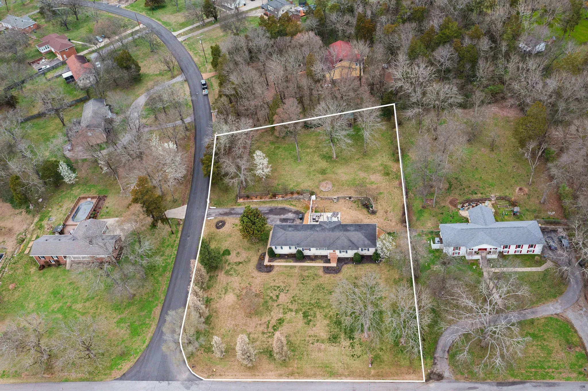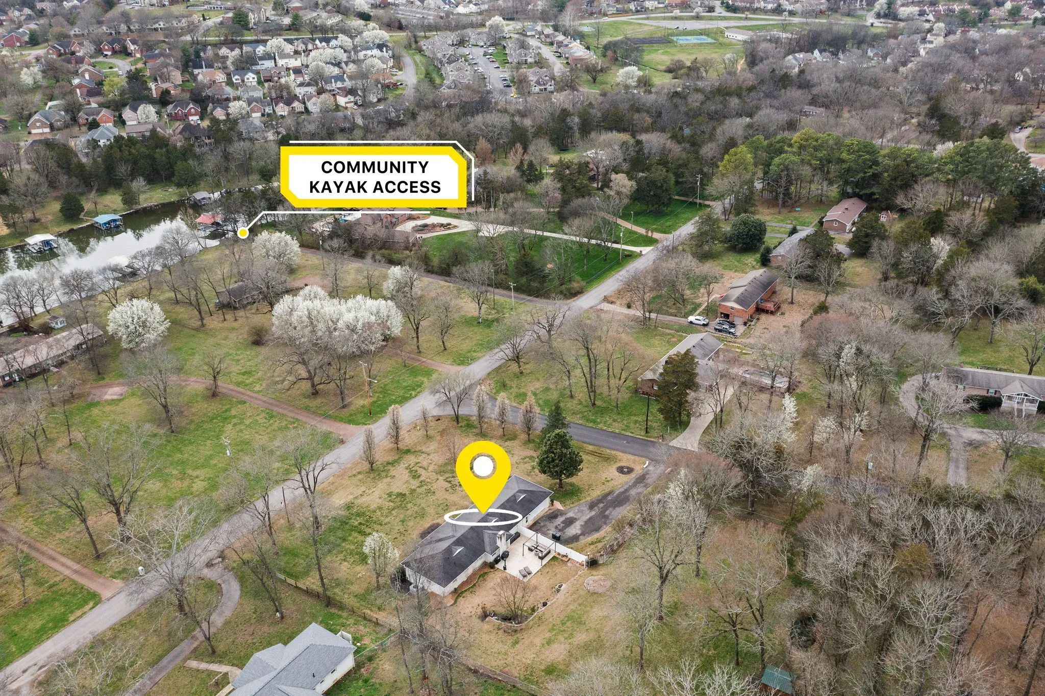 Welcome to Lake Club Estates! This all brick, one level home features 4 bedrooms, 2 bathrooms, and sits on over 1 acre with mature trees. This property is conveniently located across the street from Old Hickory Lake, with lake views and a short walk to the private lake access. Bring your kayak, paddleboard, fishing rod, or take a scenic walk along the river bank! This home boasts hardwood floors in the bedrooms, tile in the kitchen and den, carpet in the living/dining. Enjoy a spacious eat-in kitchen w/ custom hardwood cabinets/built ins, granite countertops and island w/outlet, double ovens and induction cooktop. Don’t forget to check out the Bunn Coffee Maker (water line hooked up … hot coffee pot on demand!) Plenty of storage with the extra closets, two separate living areas, fenced in back yard, shed, and a spacious insulated garage with a work bench. Step out back onto the extra large patio which is perfect for entertaining. New HVAC 12/2023. Don’t miss this hidden gem!